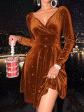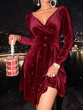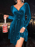 Glamourous Grace with Surplice Neck Velvet A-line Dress