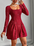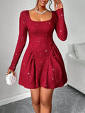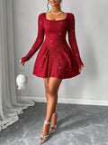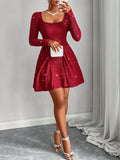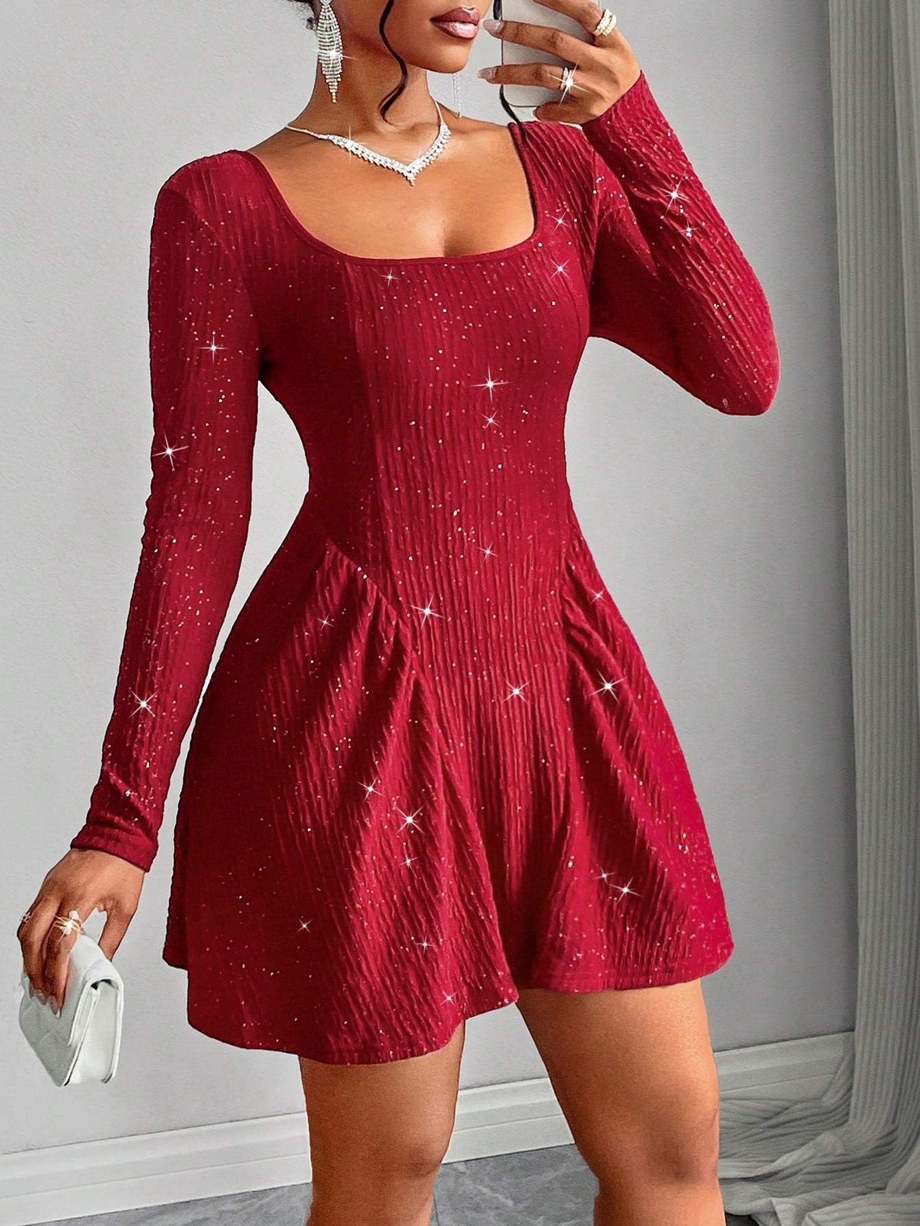 Glittering Glamour: Square Collar Backless Swing Dress for Date Night