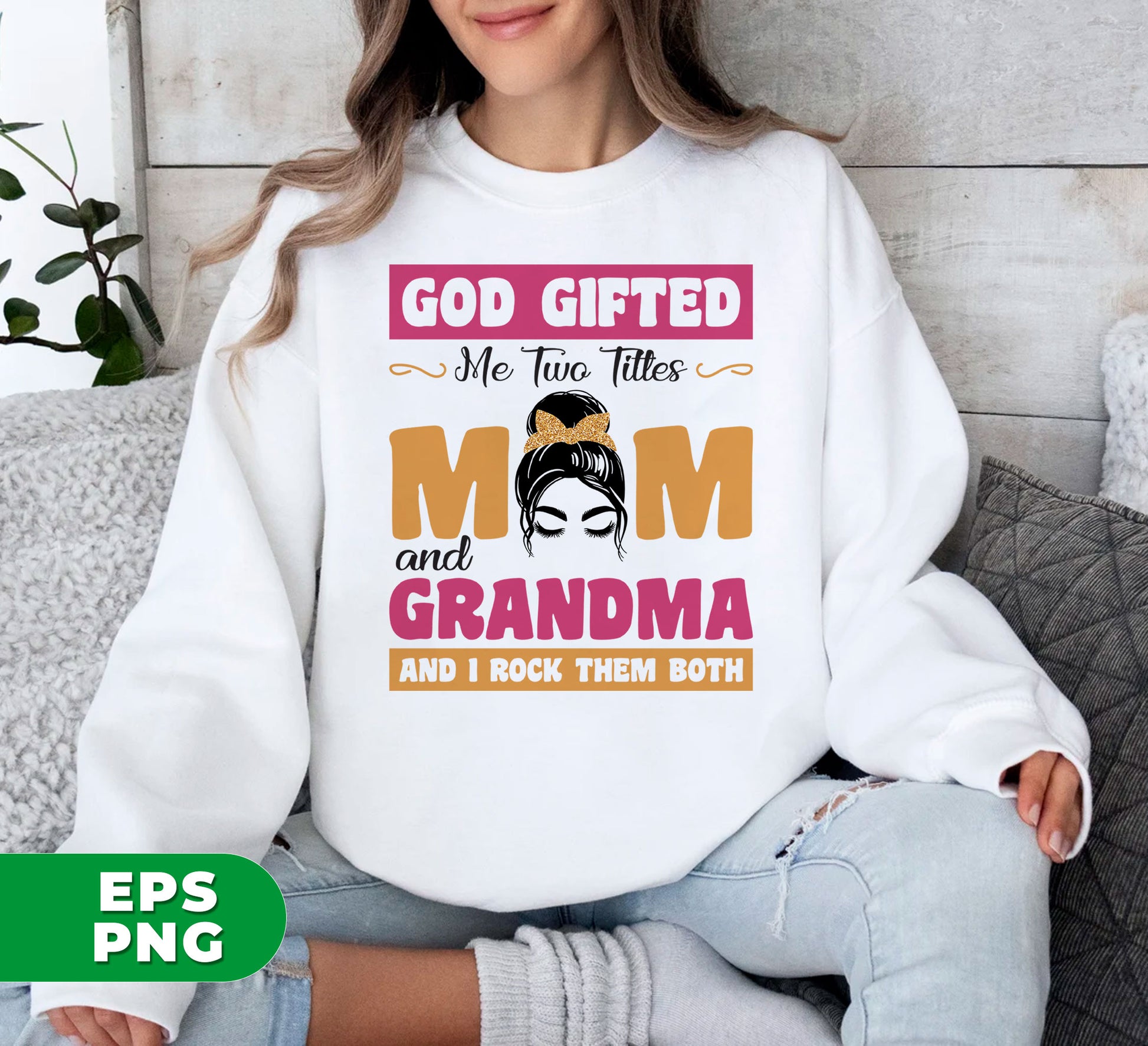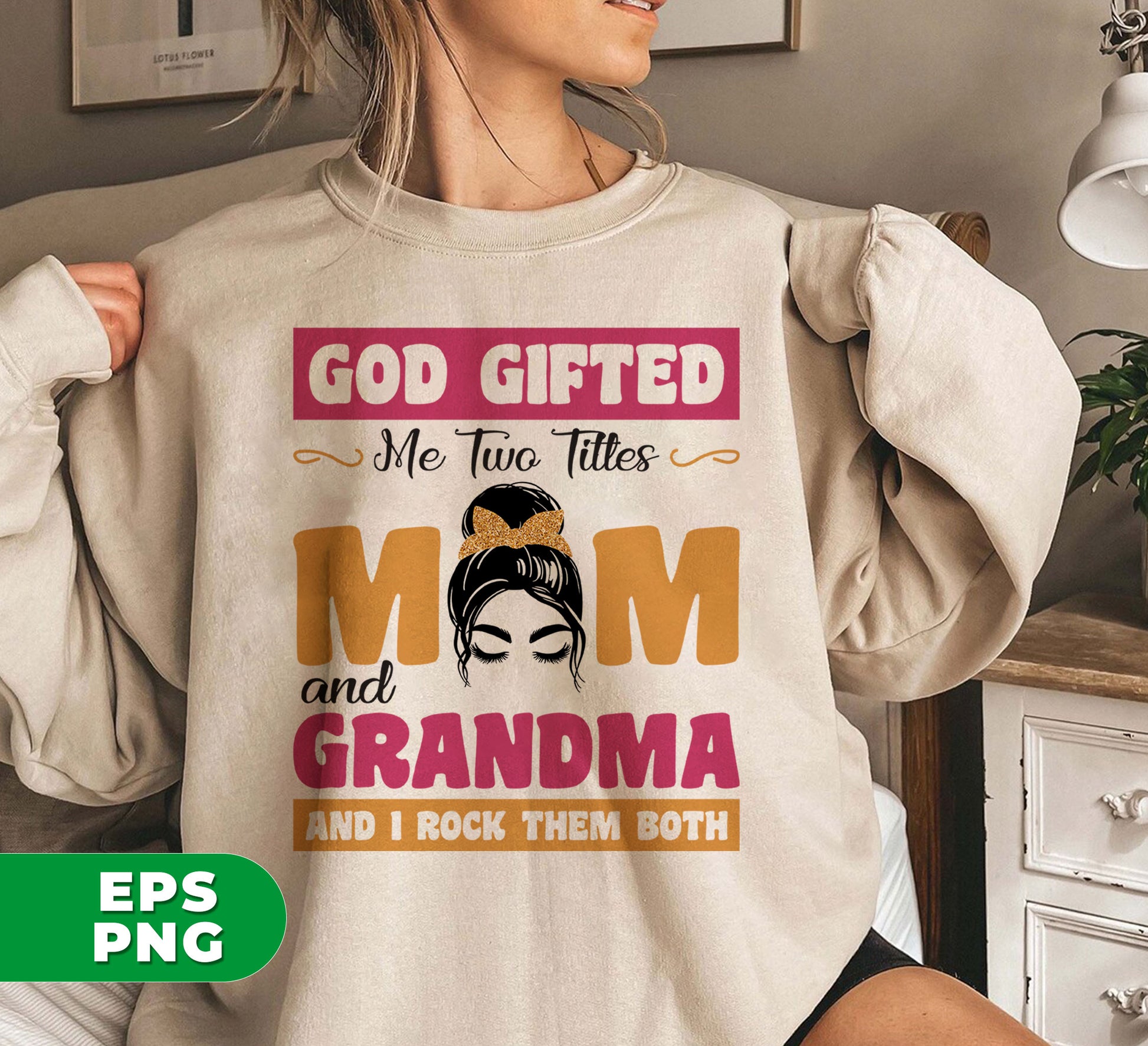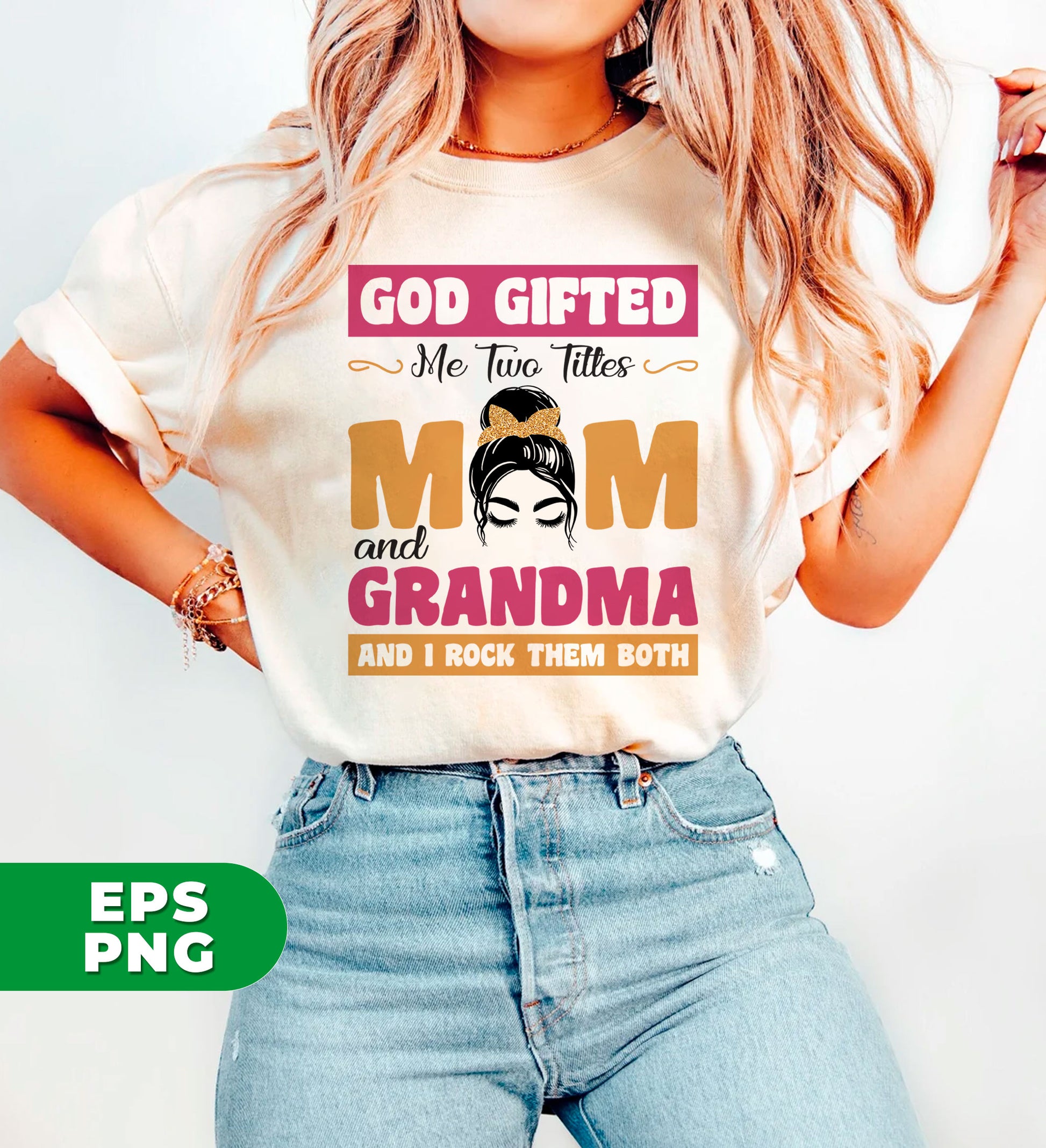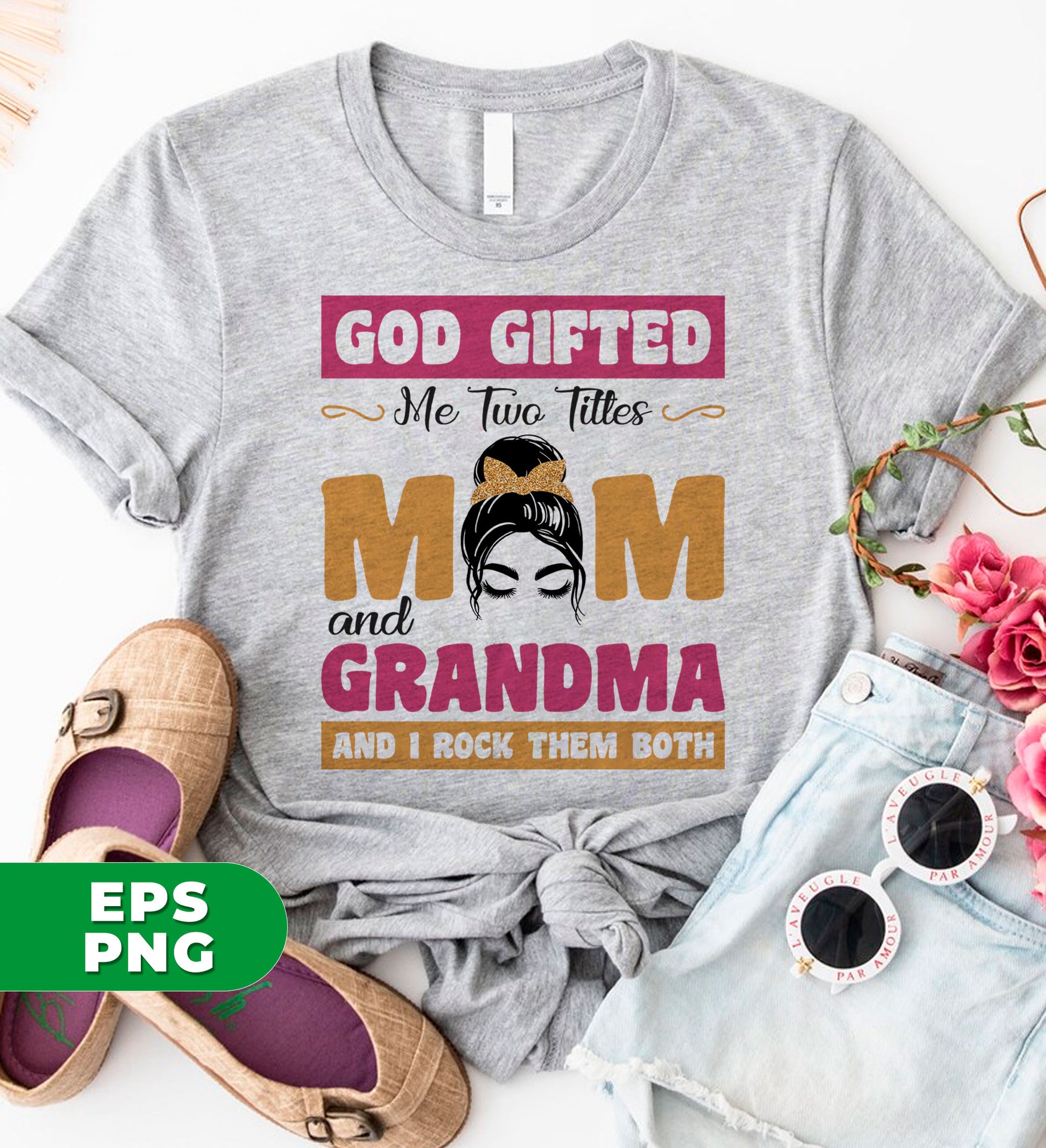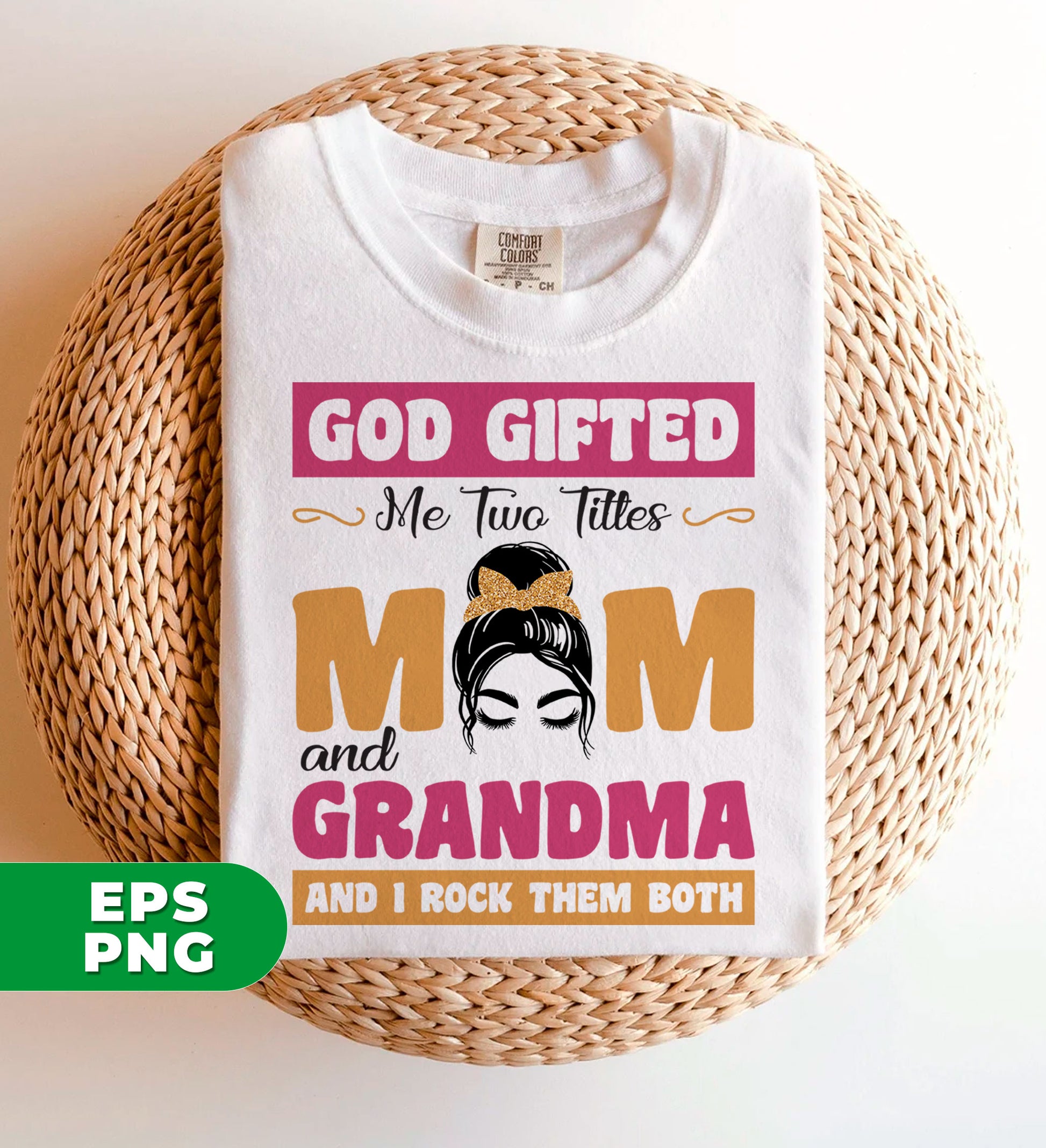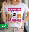 God Gifted Me Two Titles, Mom And Grandma, And I Rock Them Both, Digital Files, Png Sublimation