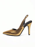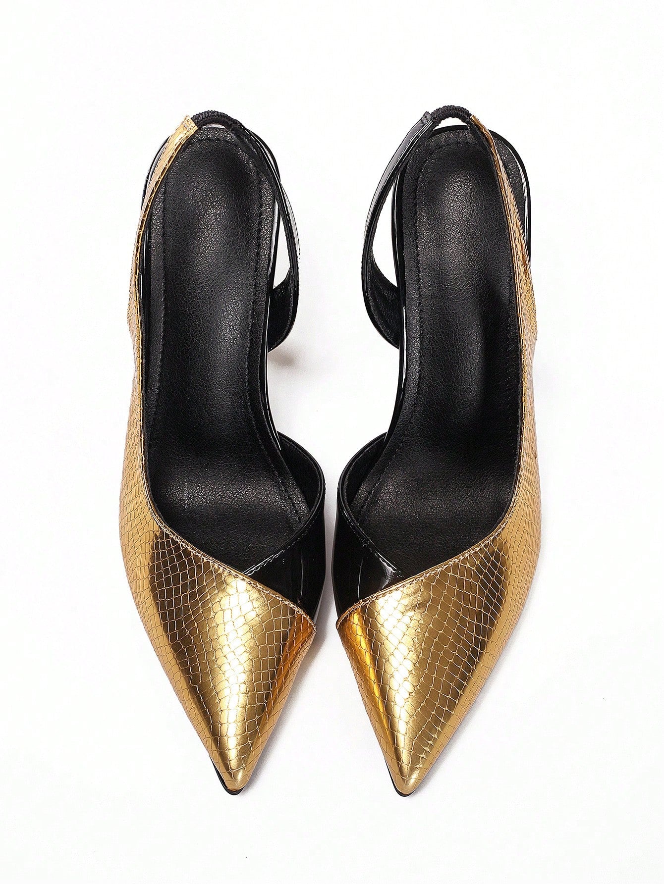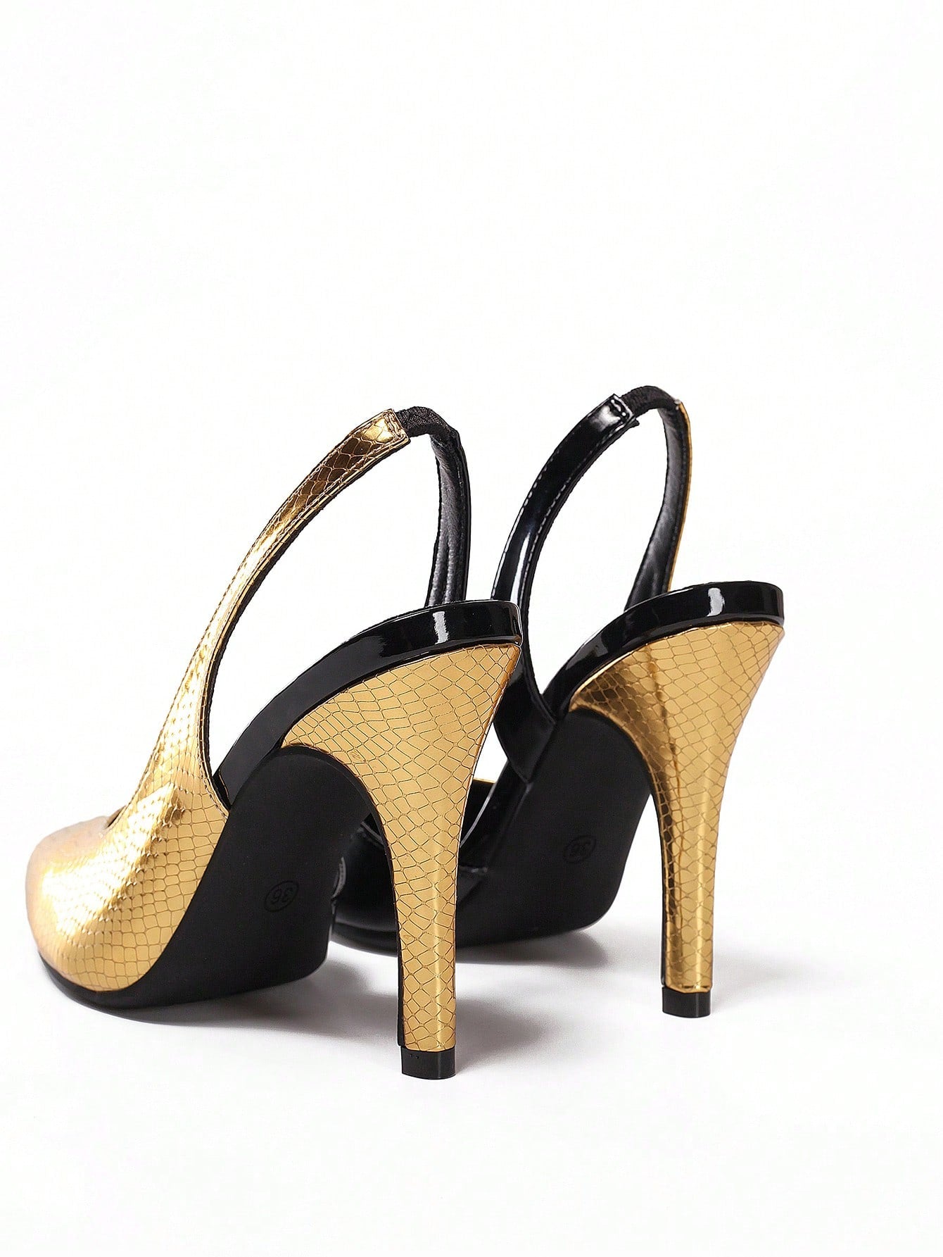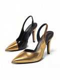 Golden Glamour: Elegant Color Block Stiletto Sandals for Parties and Formal Occasions
