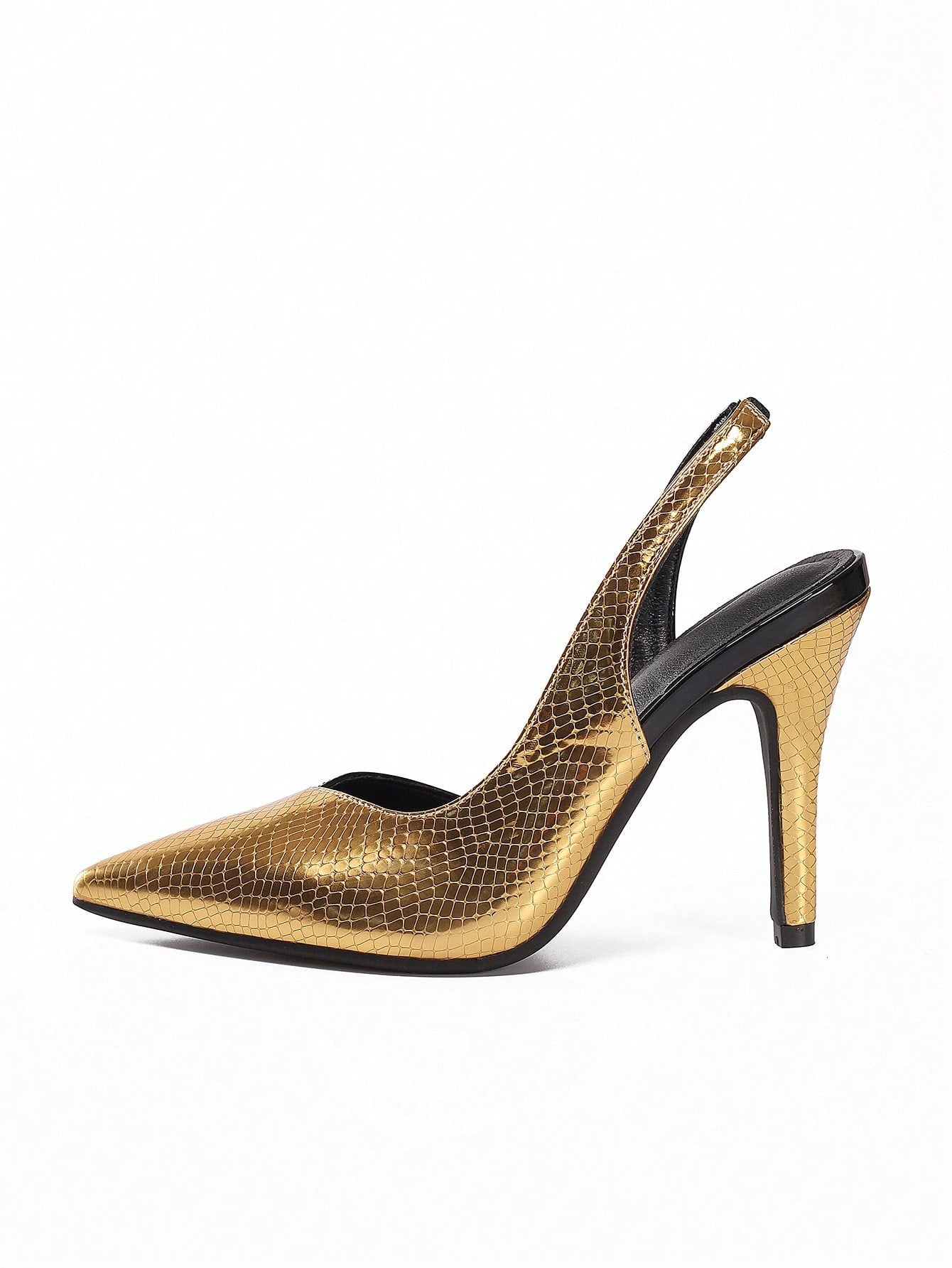 Sandals. These color block heels are perfect for parties and formal occasions, providing both fashion and functionality. The sleek design and striking colors make a statement, while the stiletto heel adds height and elegance. Step out in style and confidence with Golden Glamour."