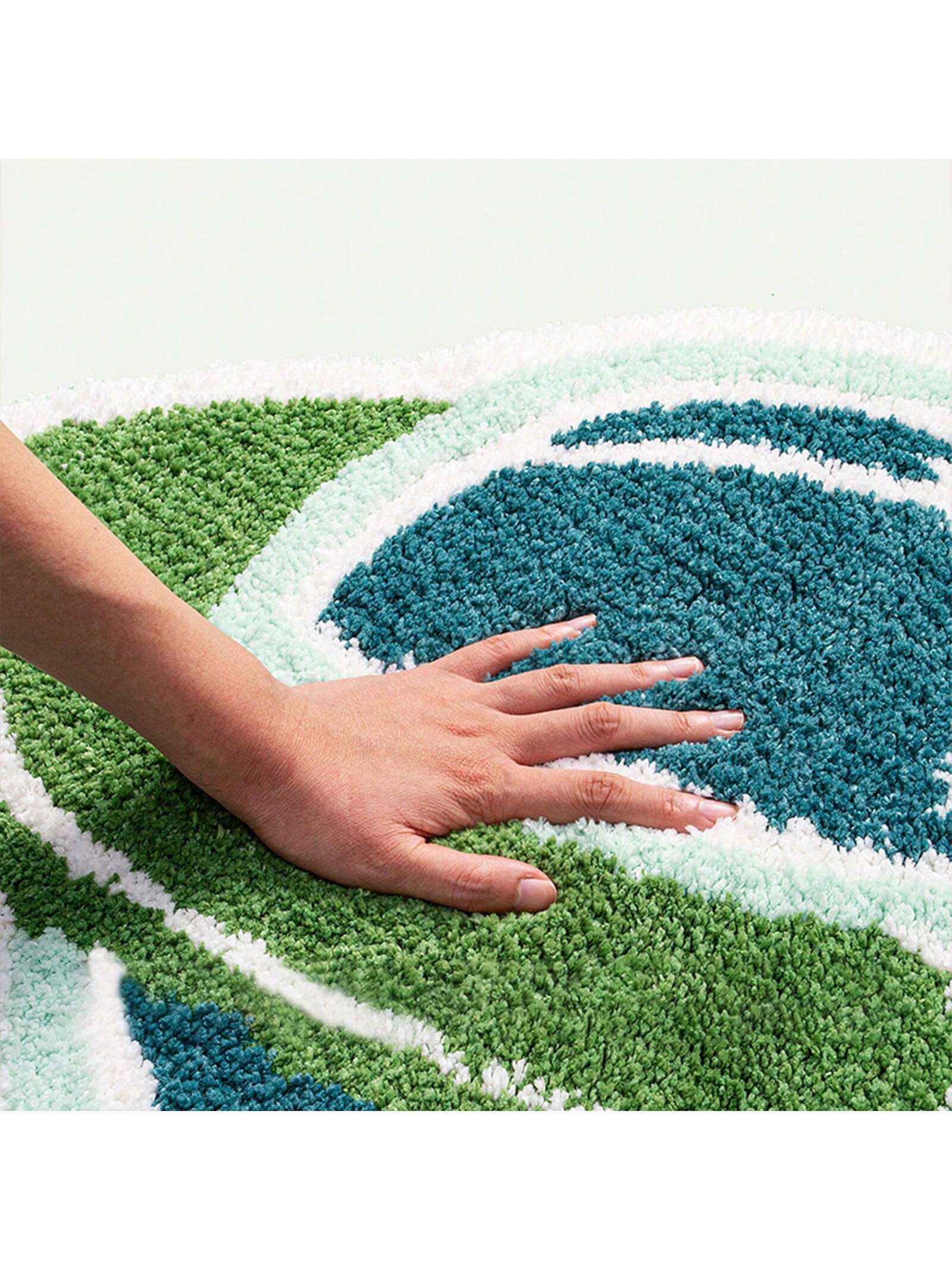 This soft, plush bath mat features a playful green alien invasion design that will add a fun touch to any bathroom. Made of super absorbent materials, it will keep your floors dry and safe. Upgrade your bathroom experience with this unique and functional rug.