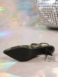 Step out in style this summer with our Green Camouflage Rhinestone Decor High Heel Sandals. These elegant mules are designed specifically for plus size women, providing both comfort and fashion. The rhinestone detailing adds a touch of glamour, while the high heel elevates any outfit. Perfect for all your summer occasions.