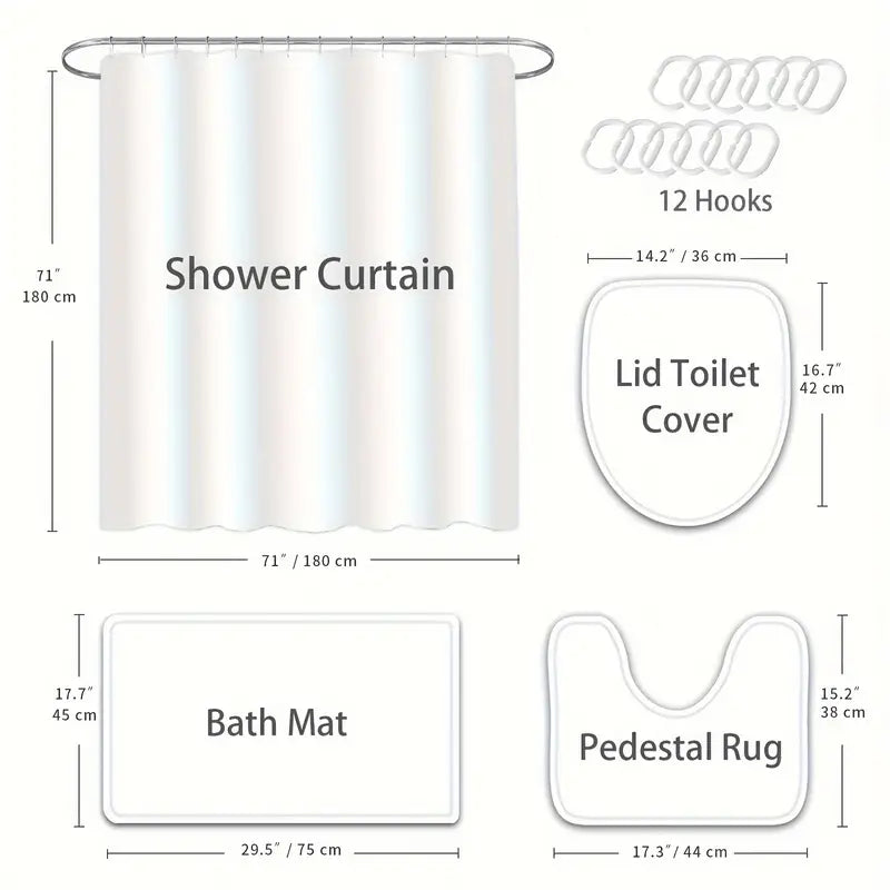 Upgrade your bathroom with the Green Clover Leaf Pattern Shower Curtain Set. Made with a waterproof material and equipped with 12 hooks, this shower curtain not only adds a touch of design with its clover leaf pattern, but also ensures a hassle-free and dry shower experience.
