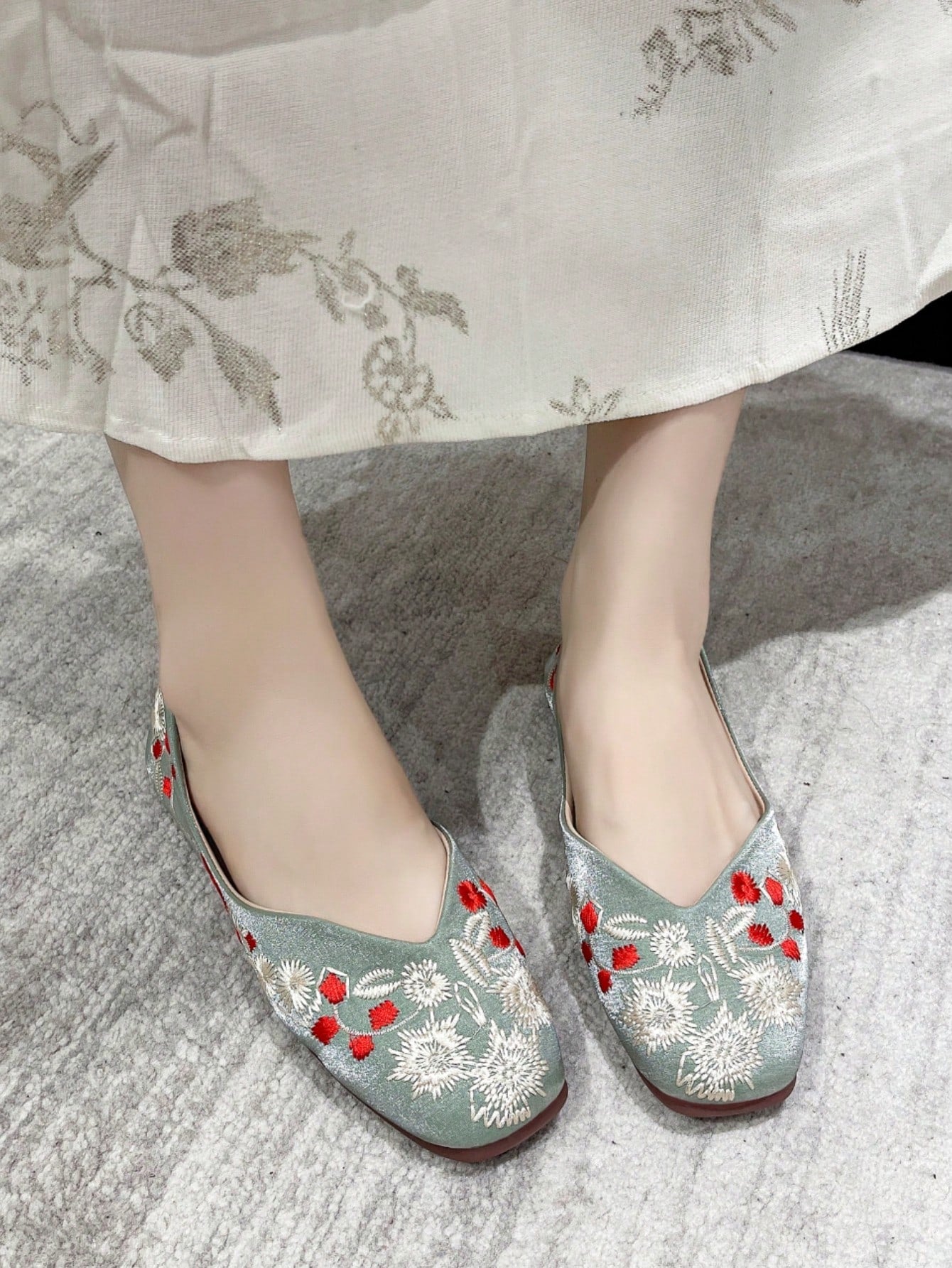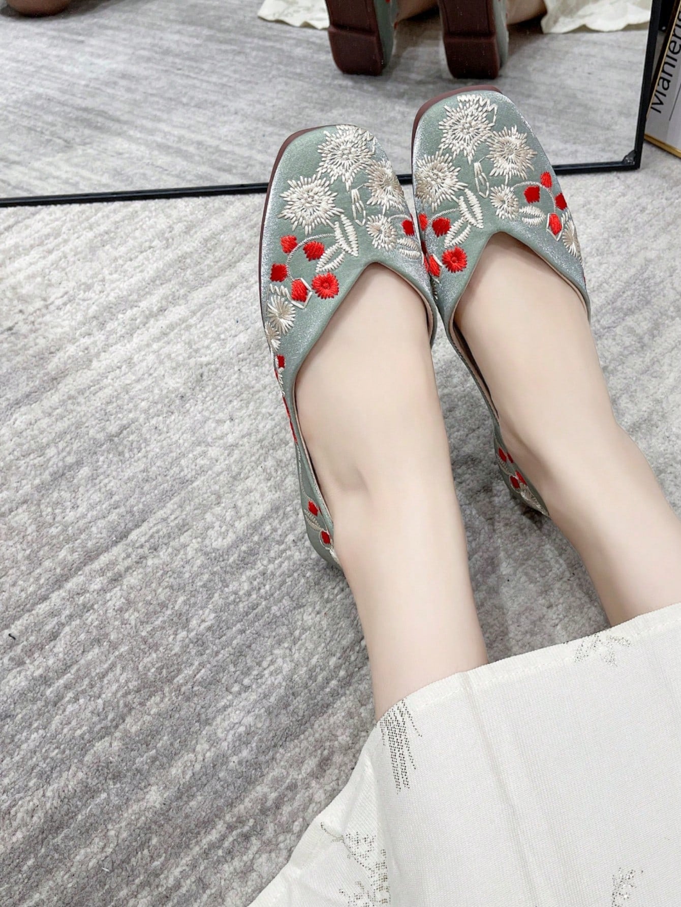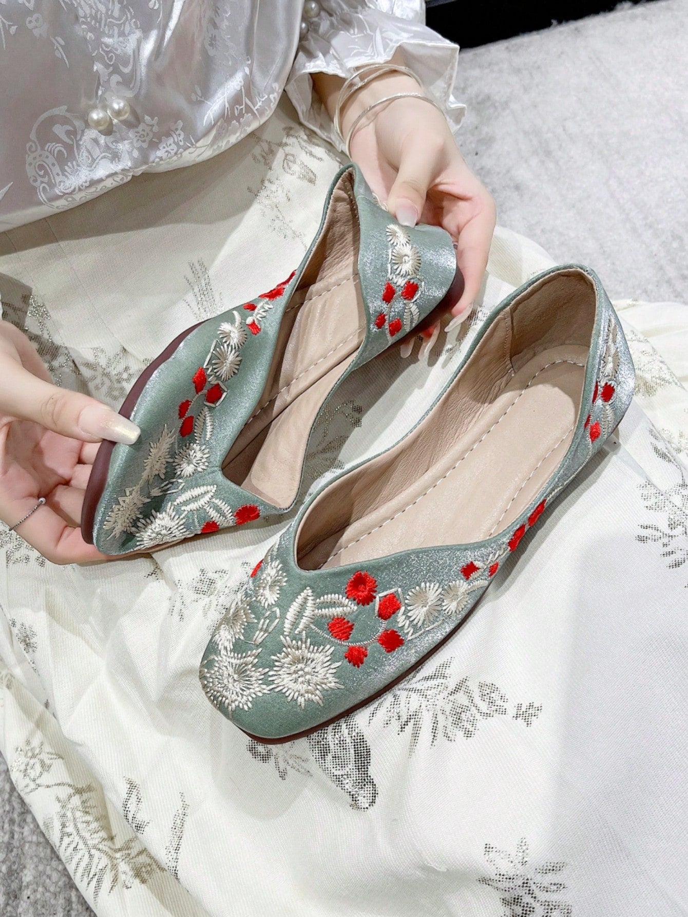 Green Garden Embroidered Slip-On Flats: Retro Pumps for Comfort and Style