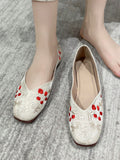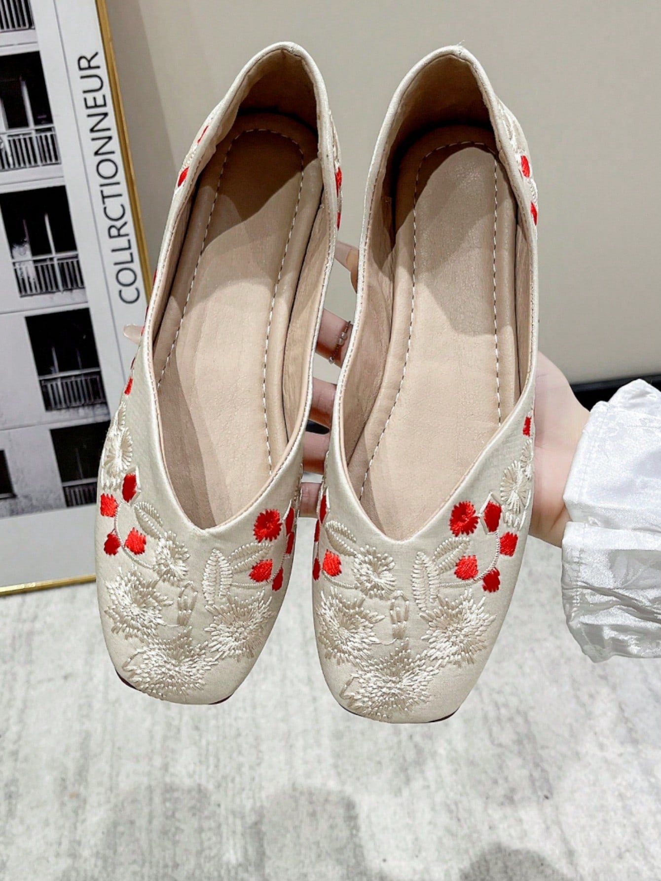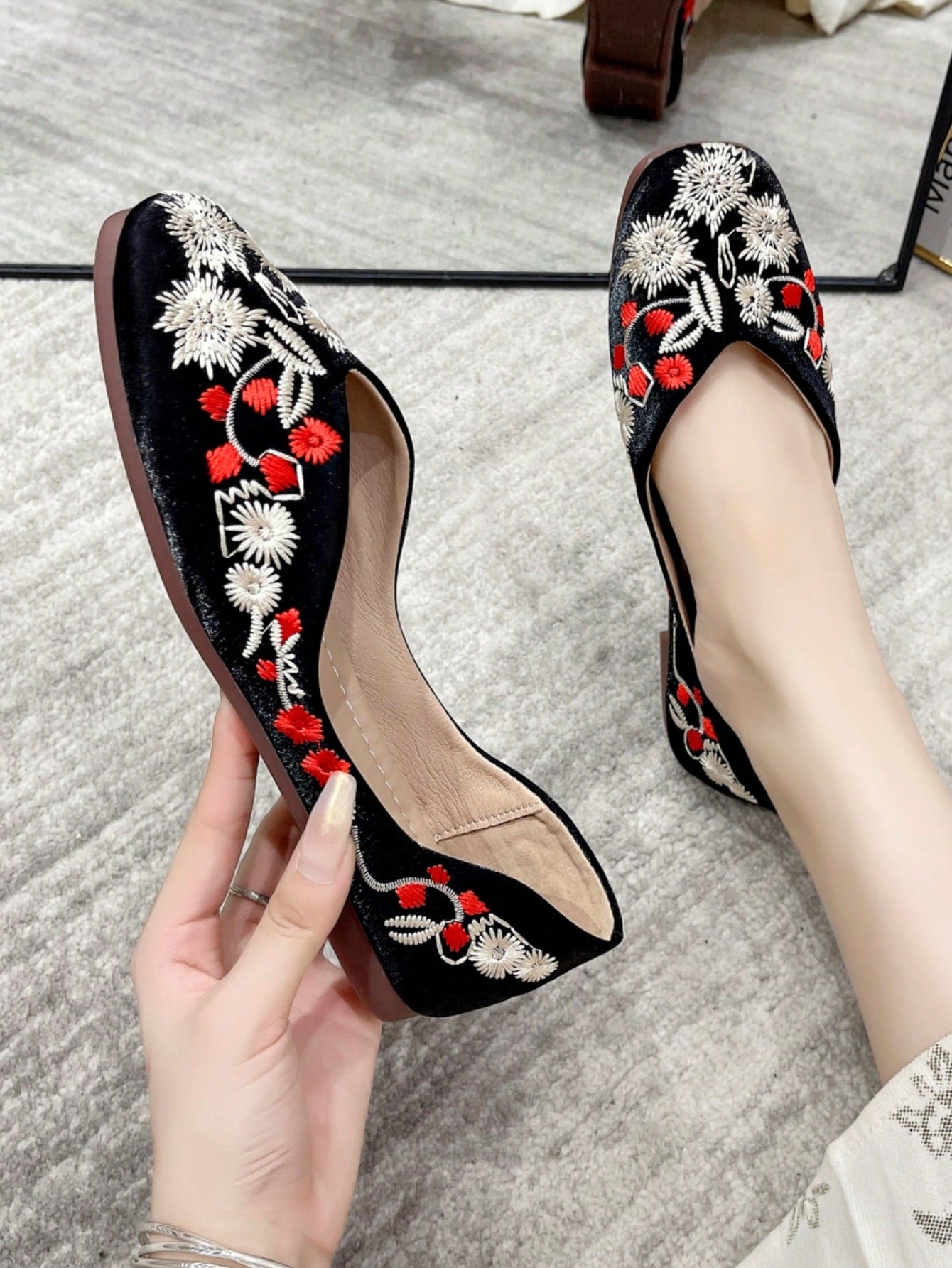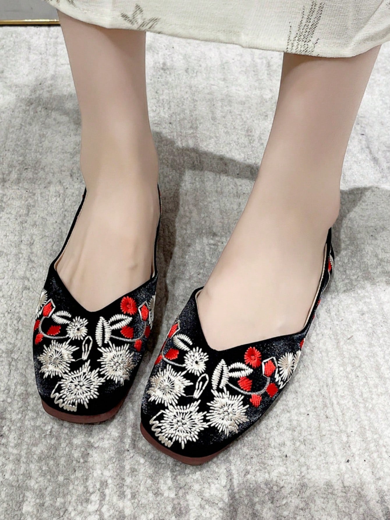 Green Garden Embroidered Slip-On Flats: Retro Pumps for Comfort and Style