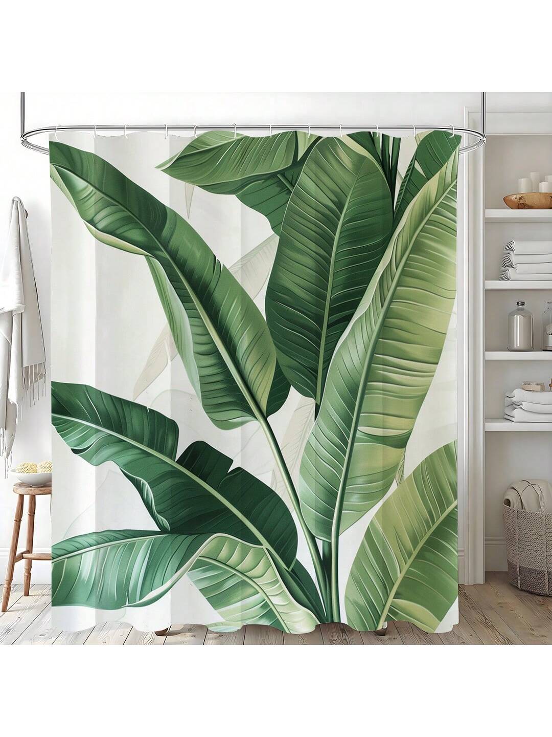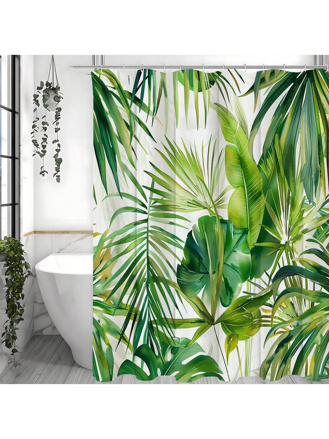 Upgrade your bathroom with our Green Leaf Print Waterproof Shower Curtain. Made with high quality materials, this stylish curtain adds a refreshing touch to your morning routine. The vibrant green leaf print is both waterproof and durable, keeping your bathroom dry and looking new. Comes with hooks for easy installation.