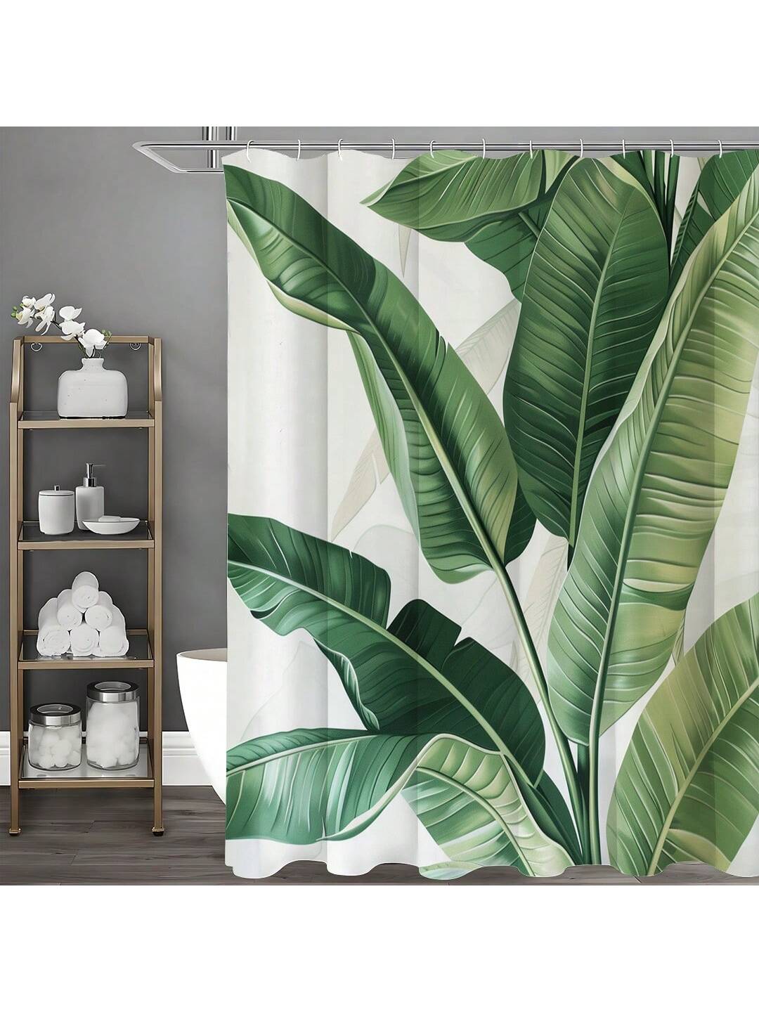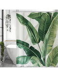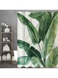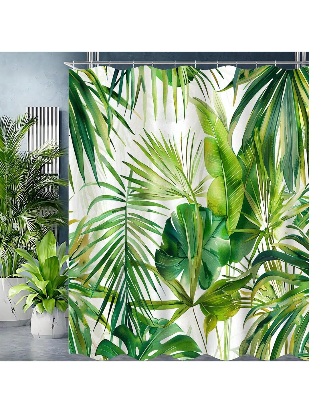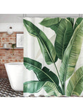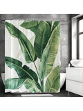 Green Leaf Print Waterproof Shower Curtain with Hooks - Stylish Bathroom Decor for a Refreshed Look