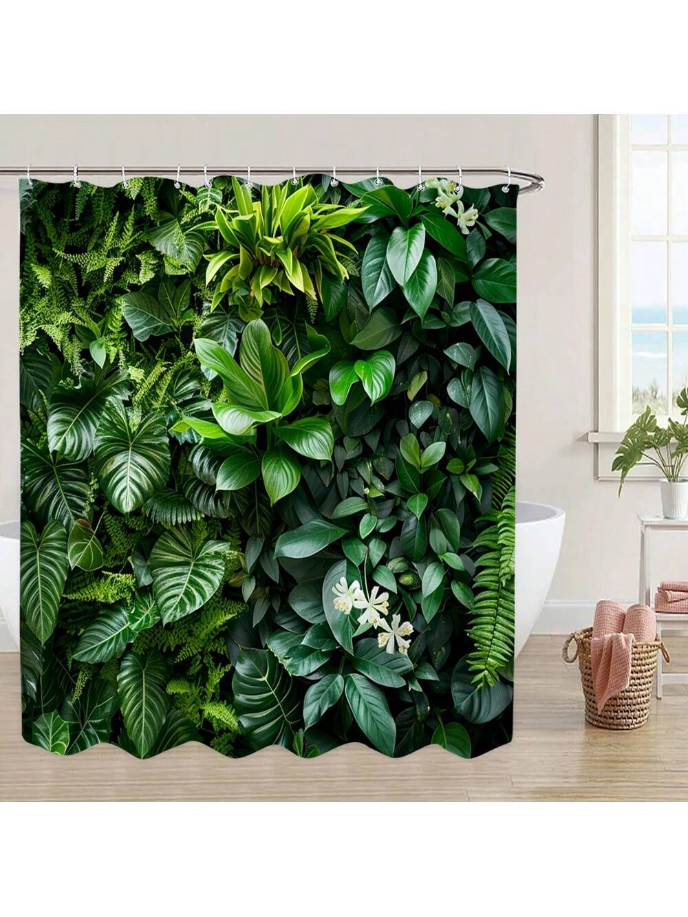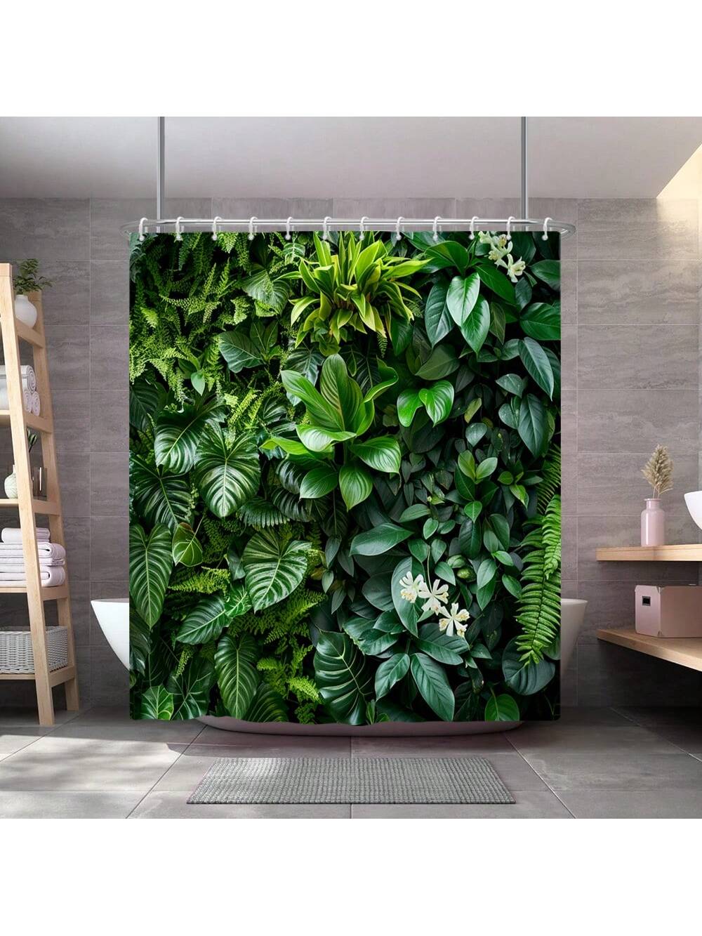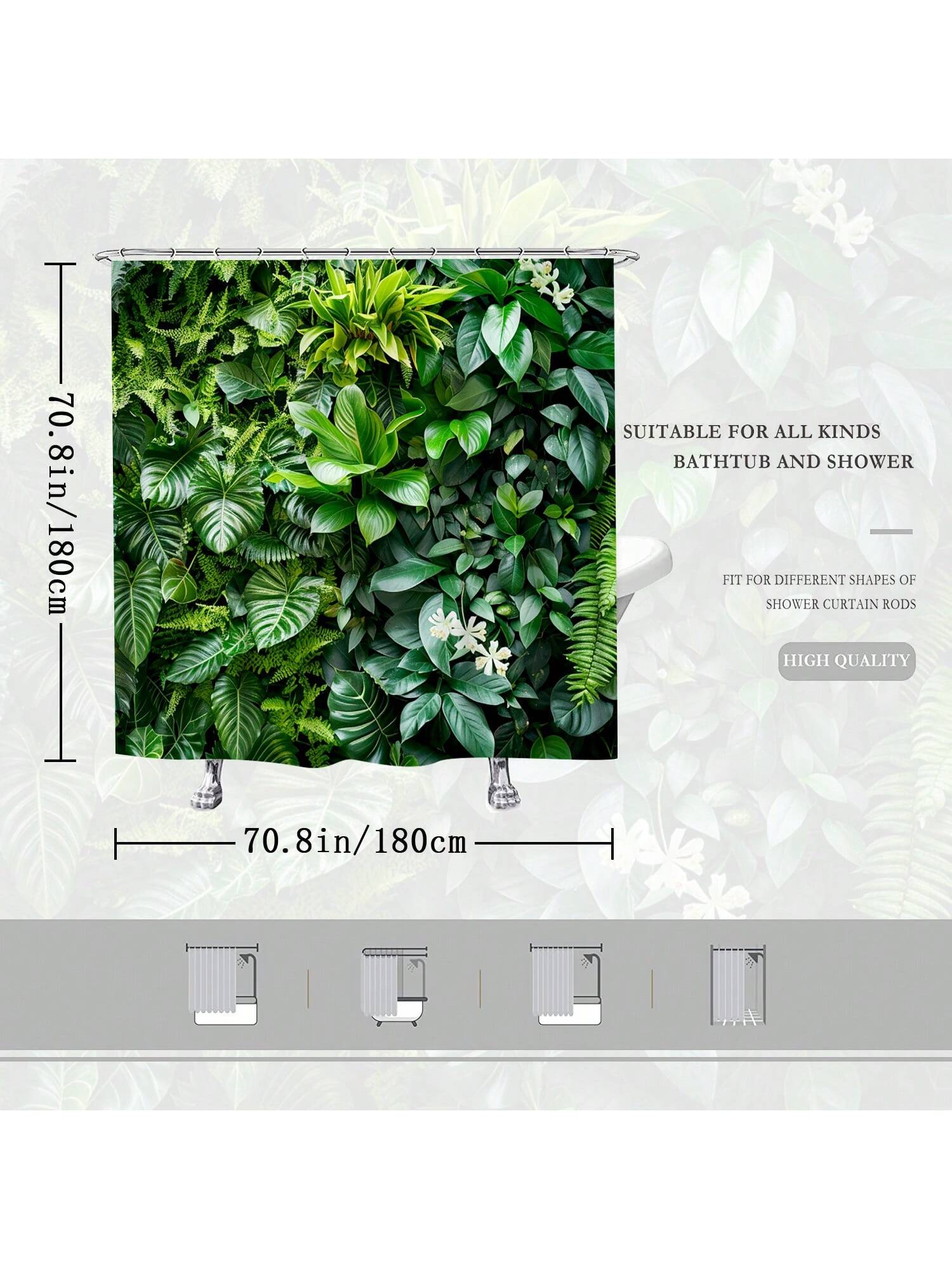 This shower curtain features a modern, minimalist design of green tropical plants, adding a touch of nature to your bathroom. Made with high-quality materials, it is both functional and stylish. Upgrade your shower experience with this elegant and refreshing addition.