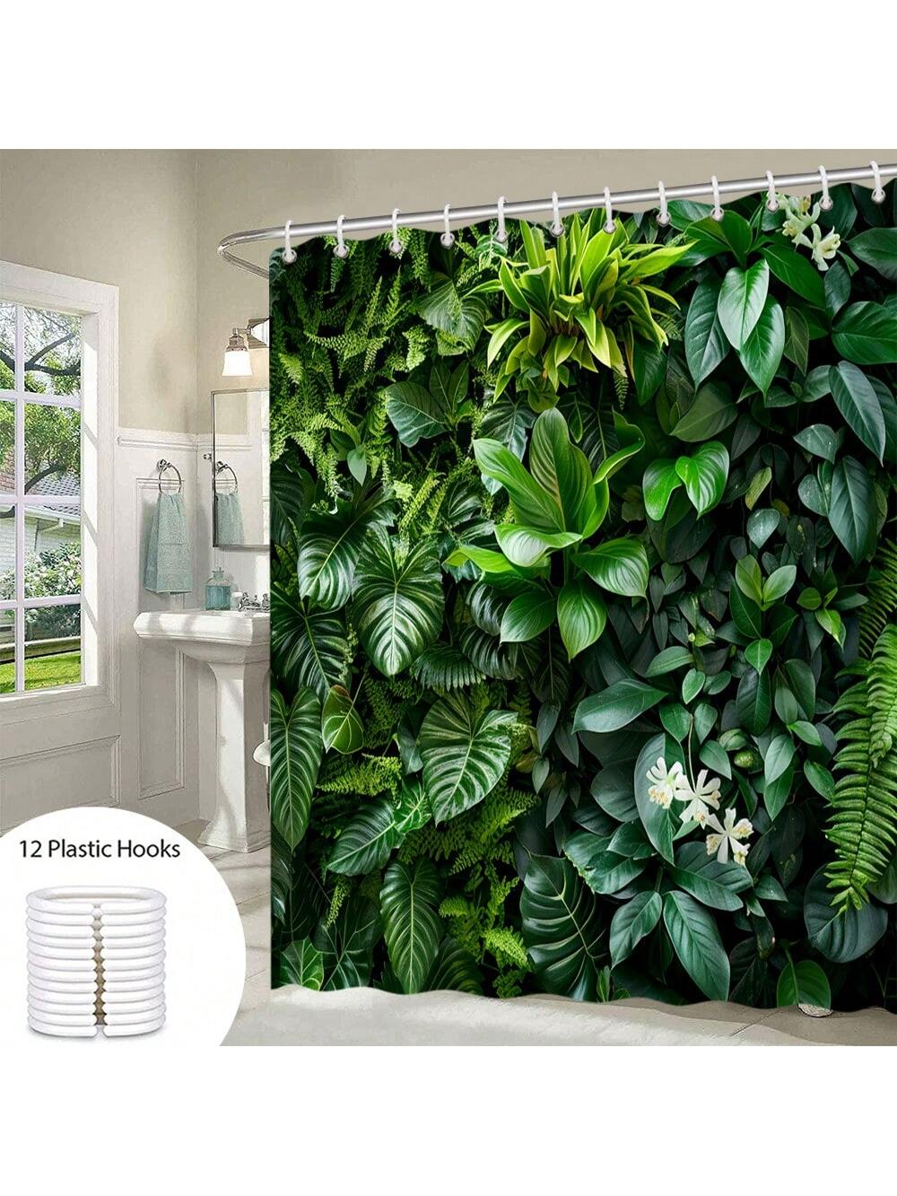 Green Leaf Tropical Plants Shower Curtain - Modern Minimalist Style