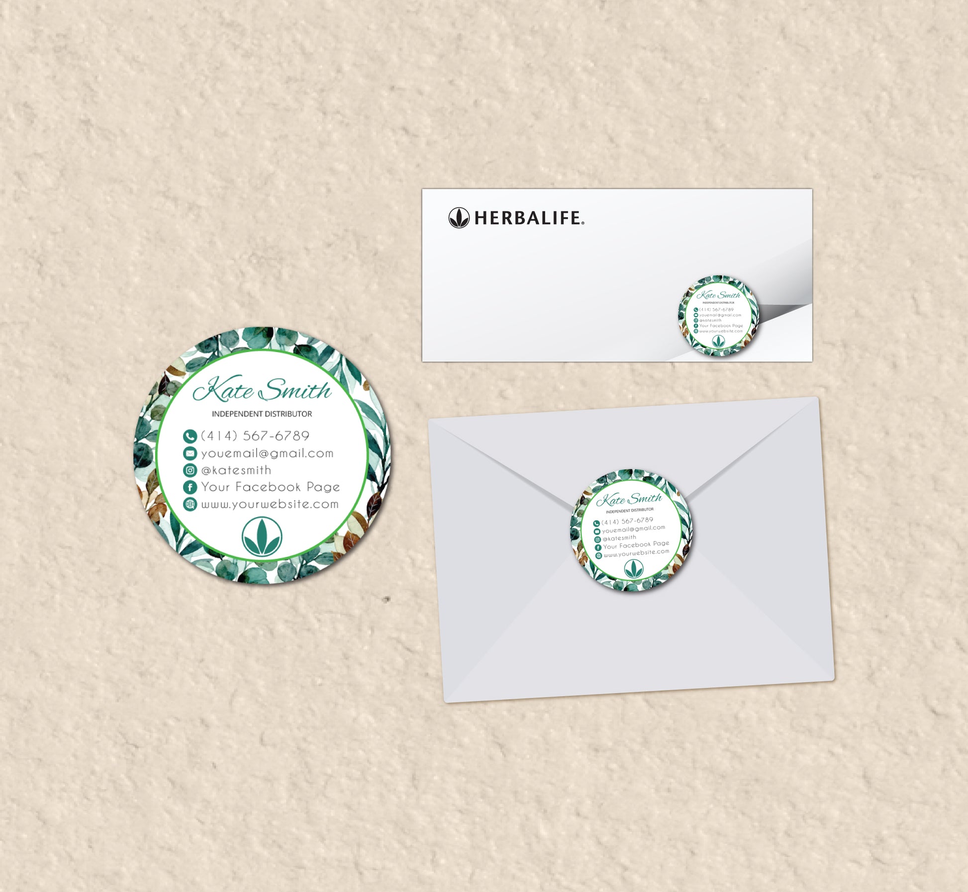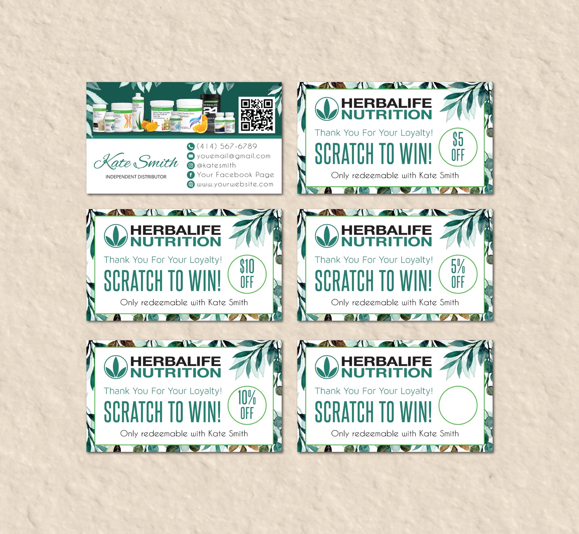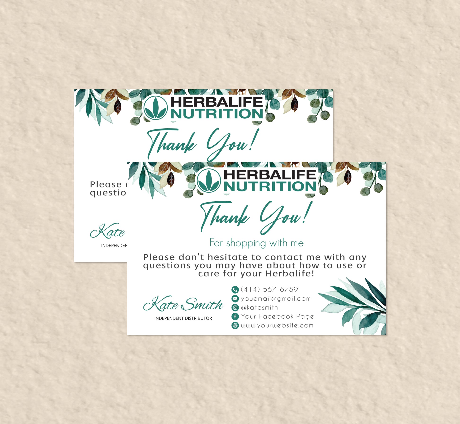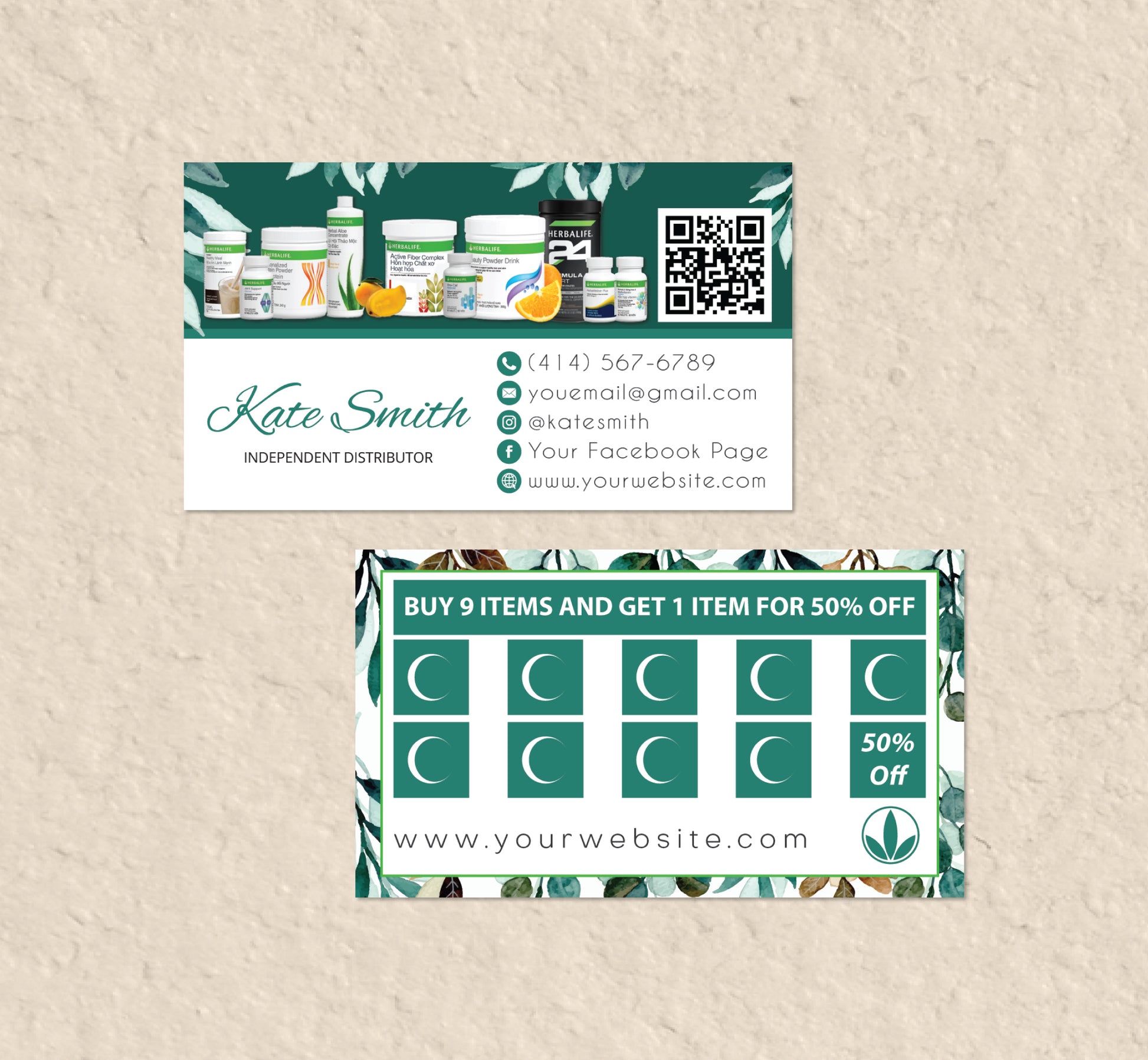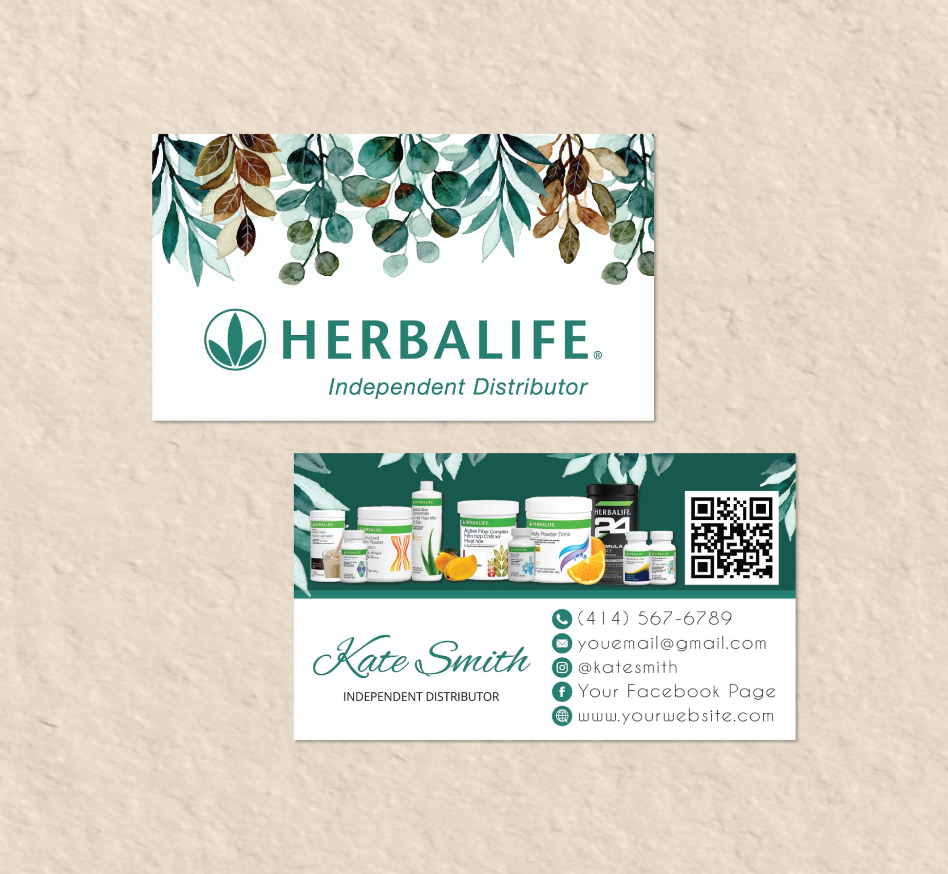 Green Leaves Style Herbalife Marketing Bundle, Personalized Herbalife Business Cards HE08.
