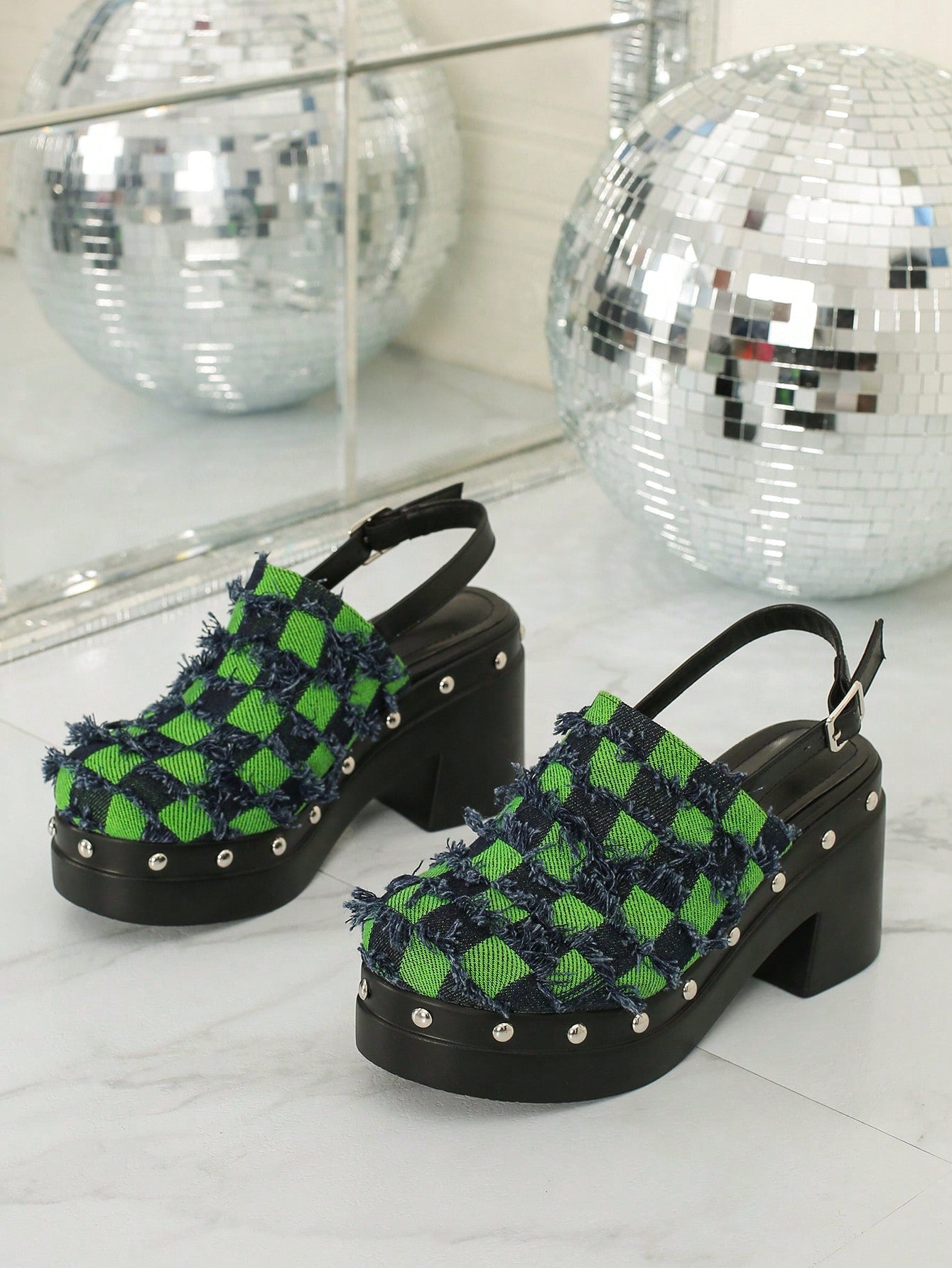 Green Rivet Detail Chunky Heel Slippers: Ideal for Parties & Banquets