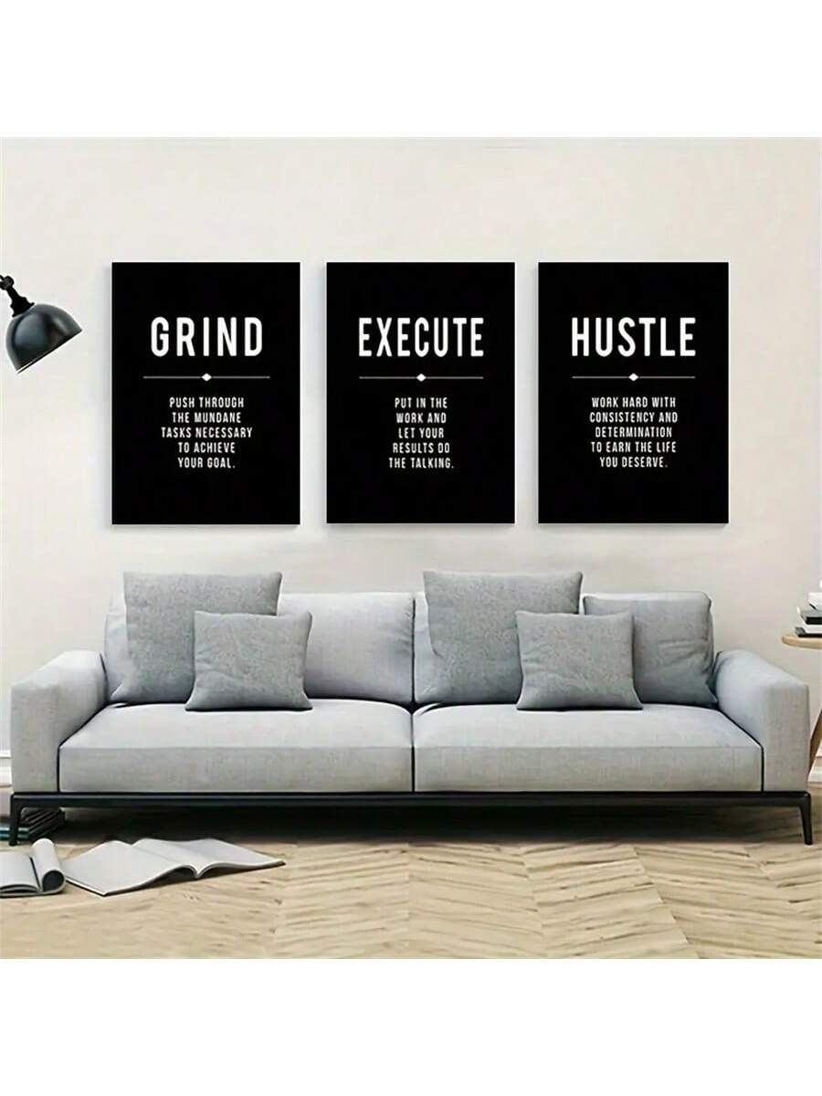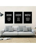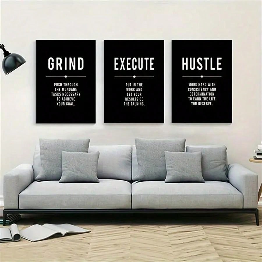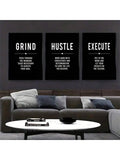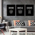 Grind and Hustle Motivational Canvas Poster Set: Modern Art Decor for Bedroom Walls