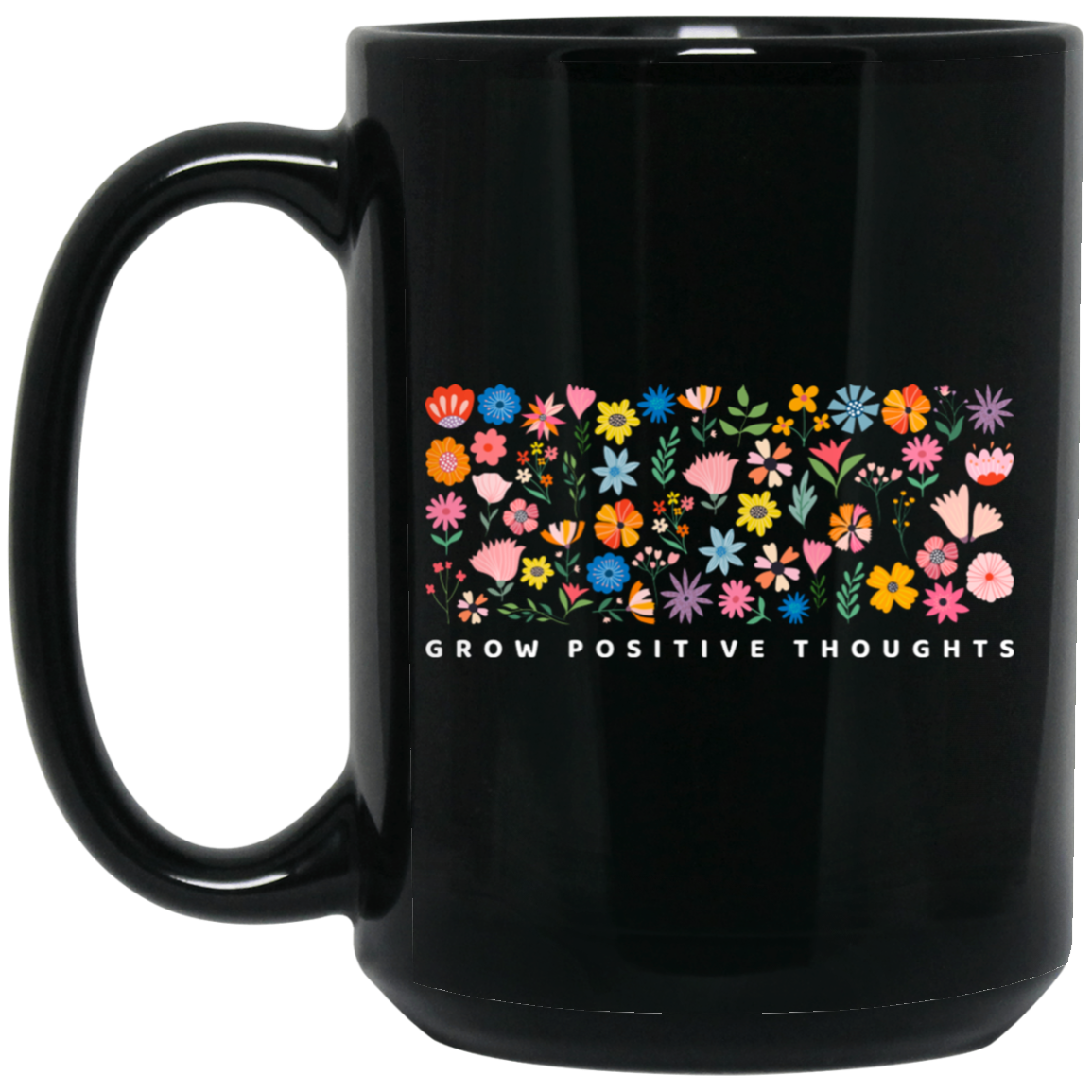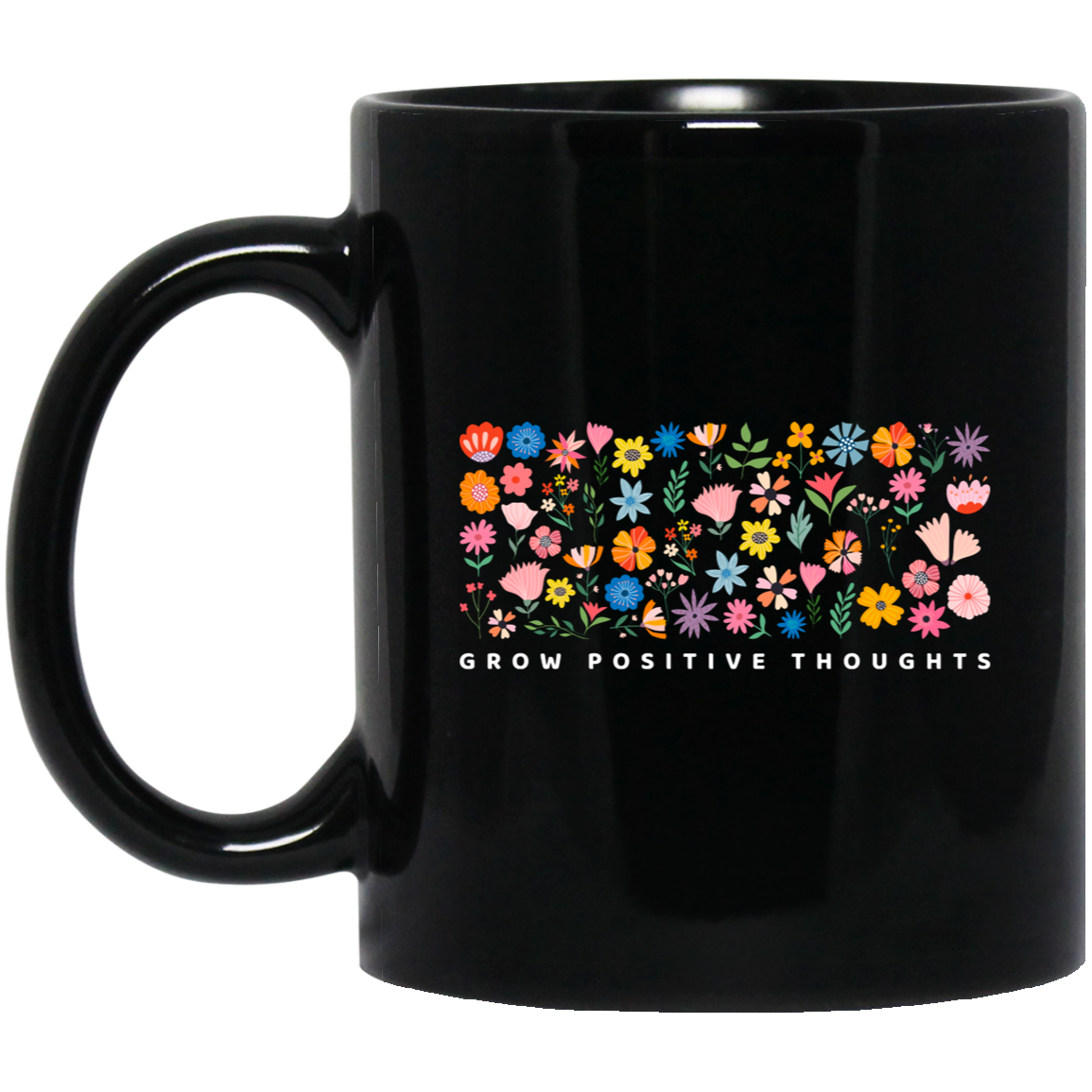Grow Positive Thoughts, Flowers Bundle, Colorful Flowers Black Mug