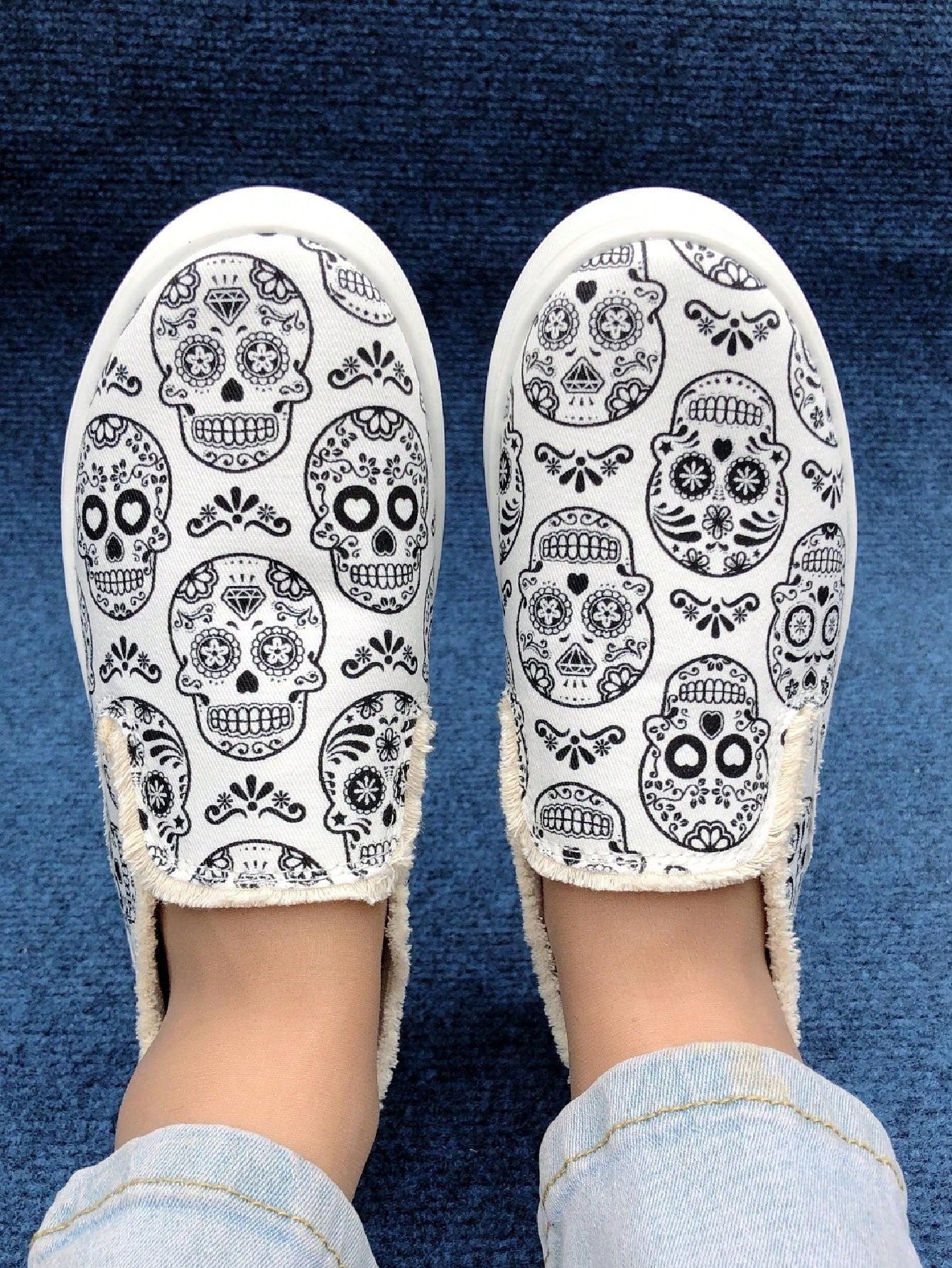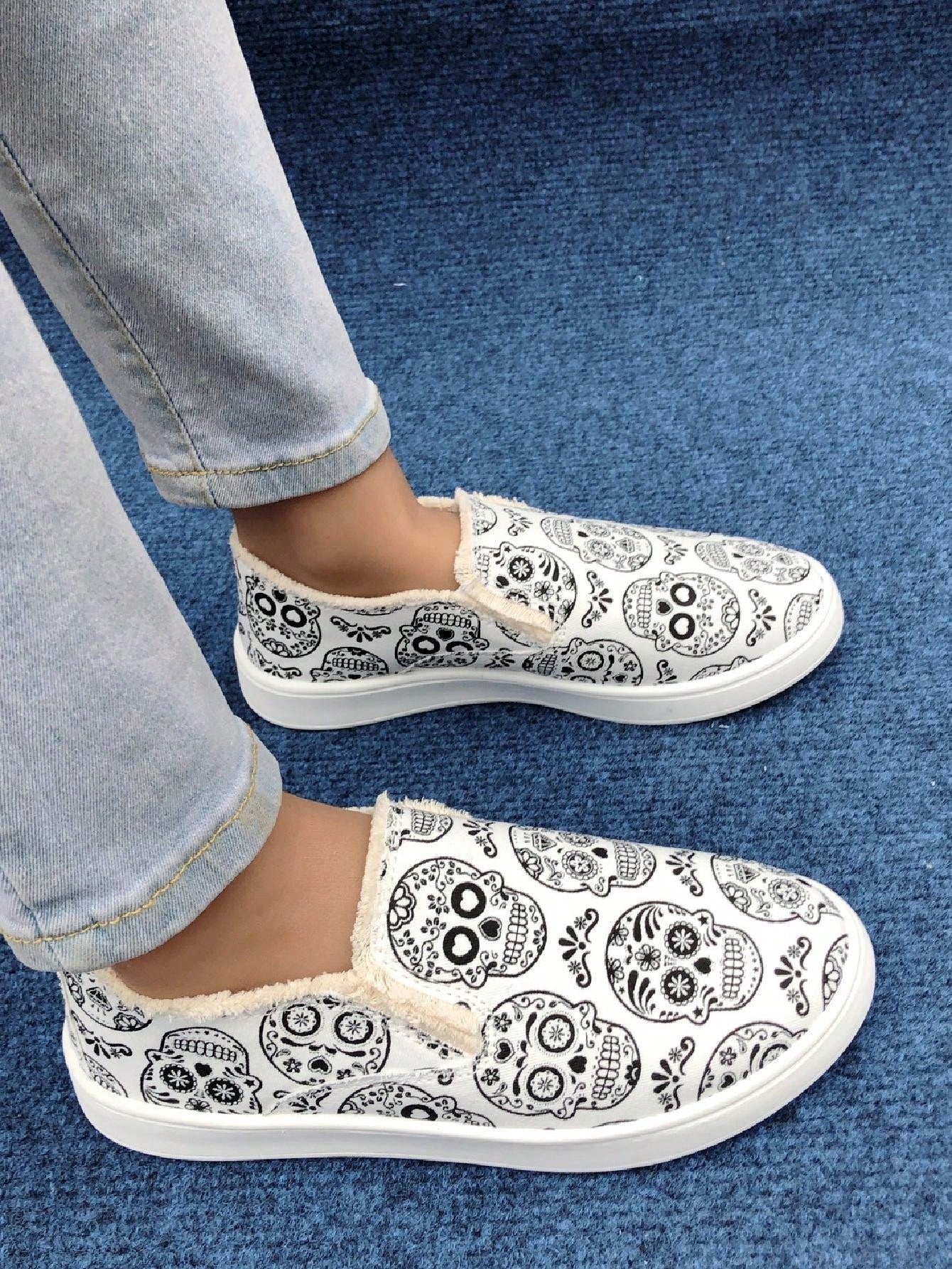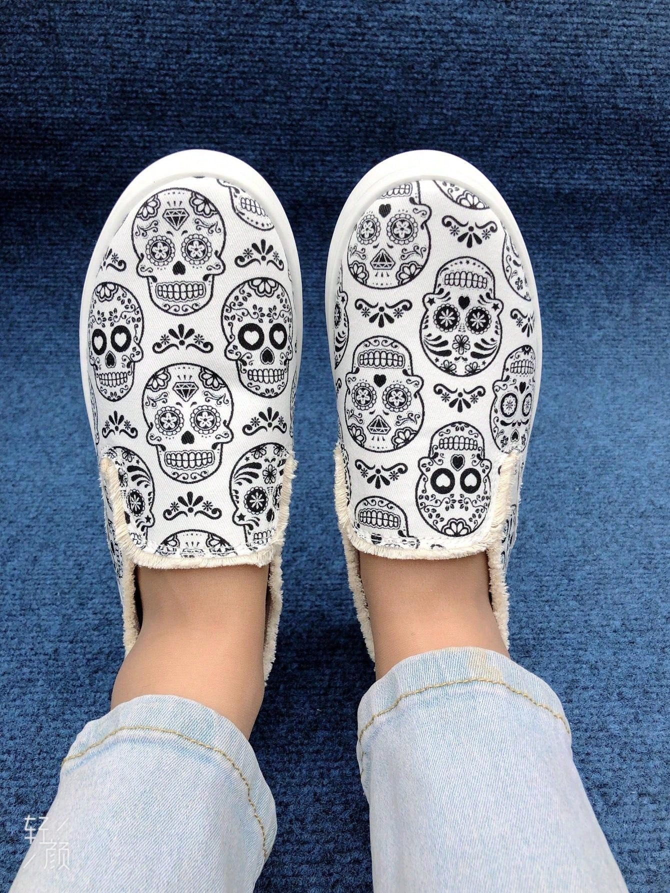 Halloween Printed Slip-On Flat Sneakers: Comfortable and Anti-Slip for Casual Sports