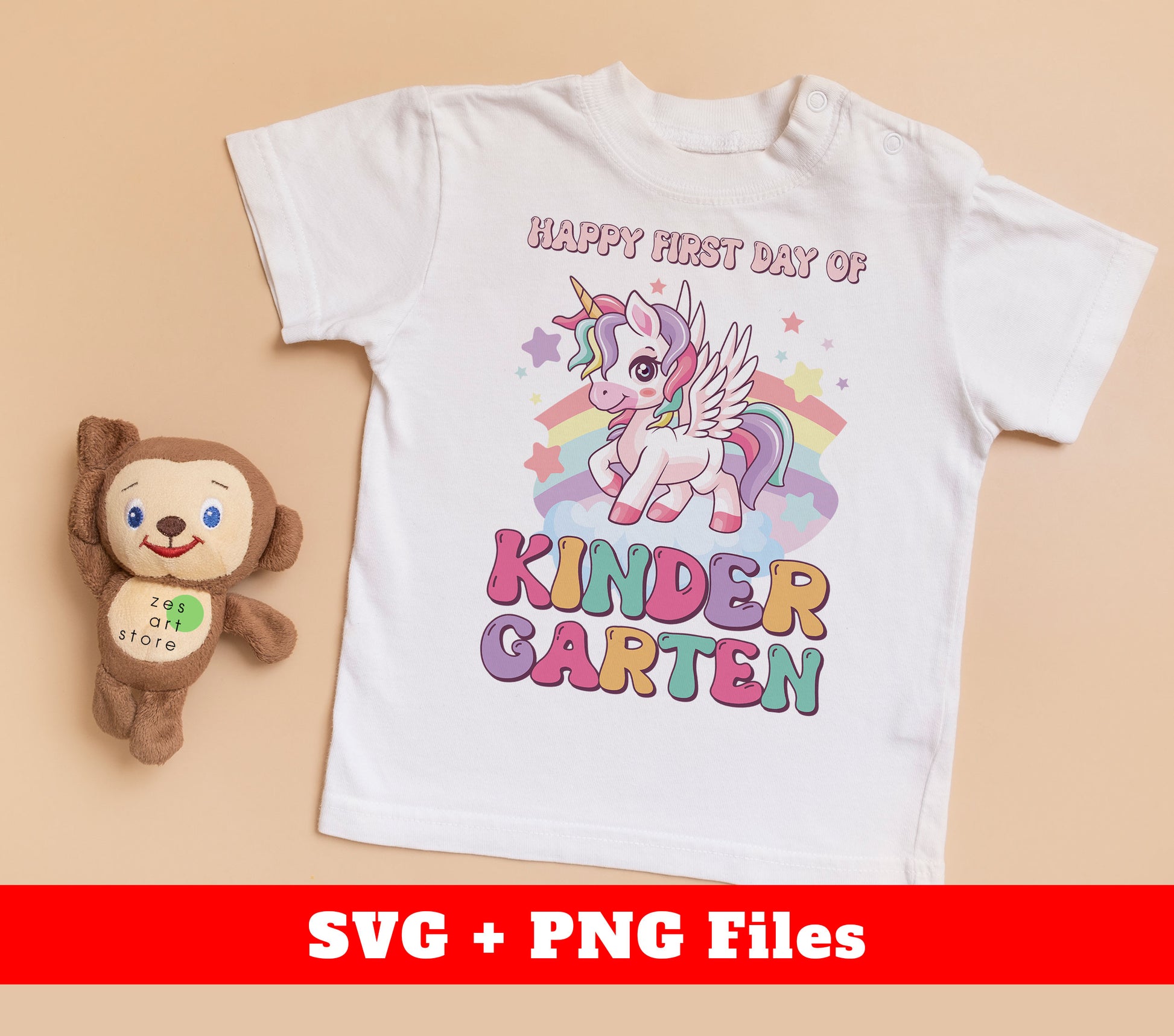 Happy First Day Of Kindergarten, Kindergarten Unicorn, Digital Files, Png Sublimation
