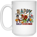 Happy Hallo-Thanks-Mas, Halloween Thanks Giving Christmas, Big Party White Mug
