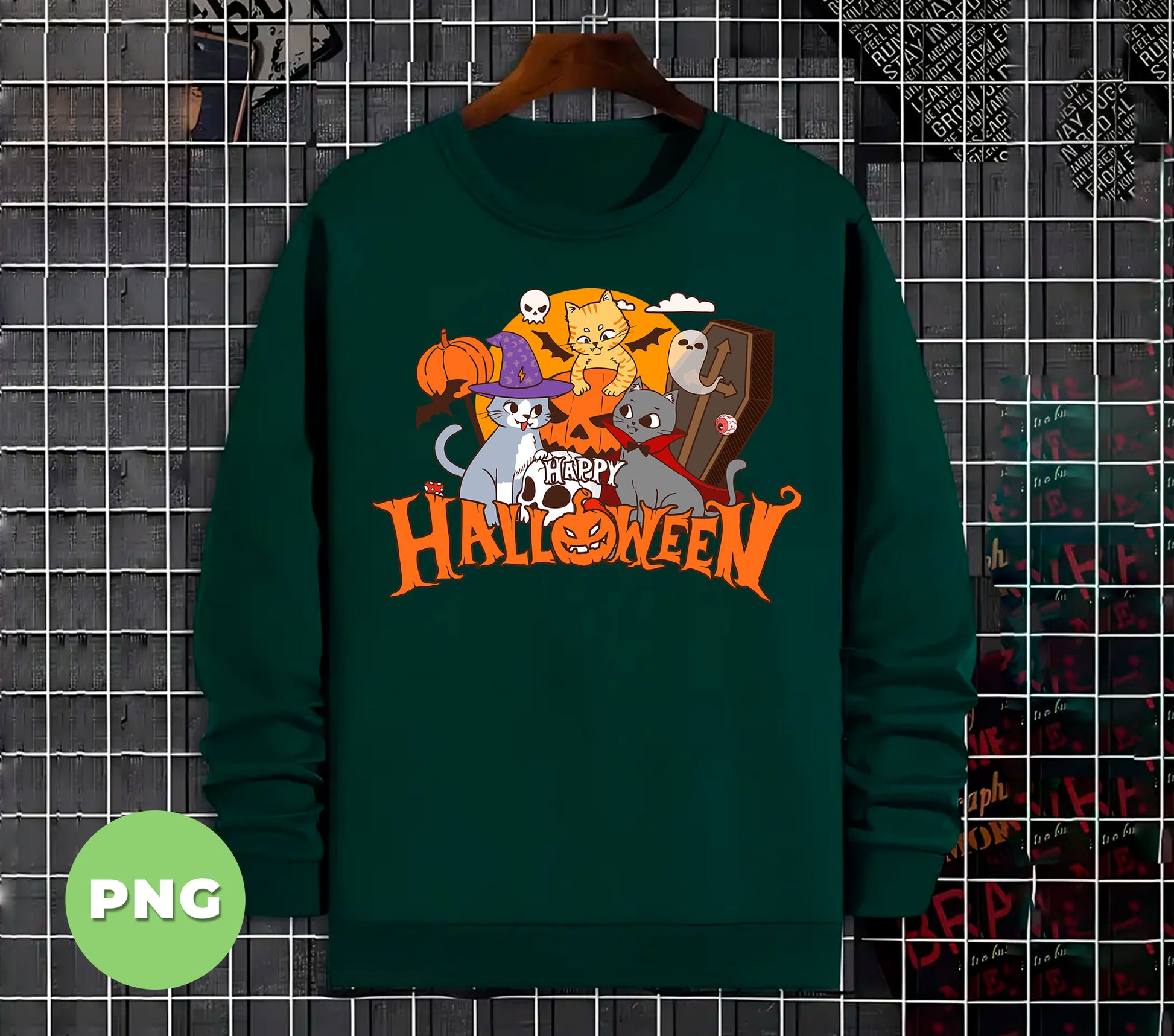 Celebrate Halloween with this playful Happy Halloween Cats PNG! Featuring a cute witch vampire cat alongside spooky pumpkin art, it’s perfect for adding a fun, festive touch to shirts and sublimation projects. Ideal for kids and cat lovers, this design brings a whimsical charm to your Halloween creations.