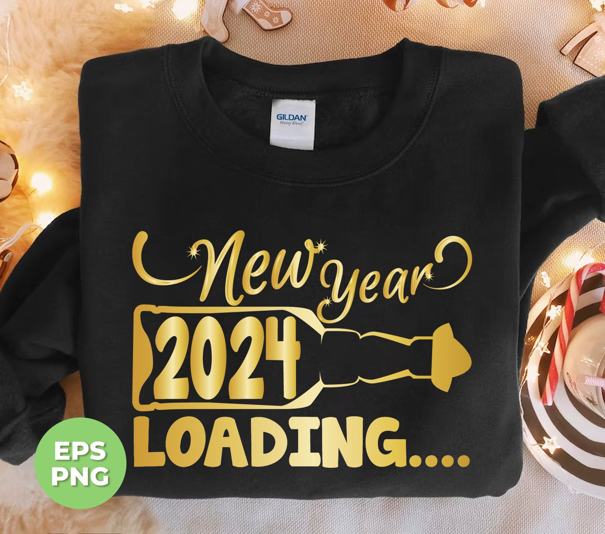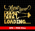 Happy New Year 2024, Loading 2024, Golden Style, Png Sublimation