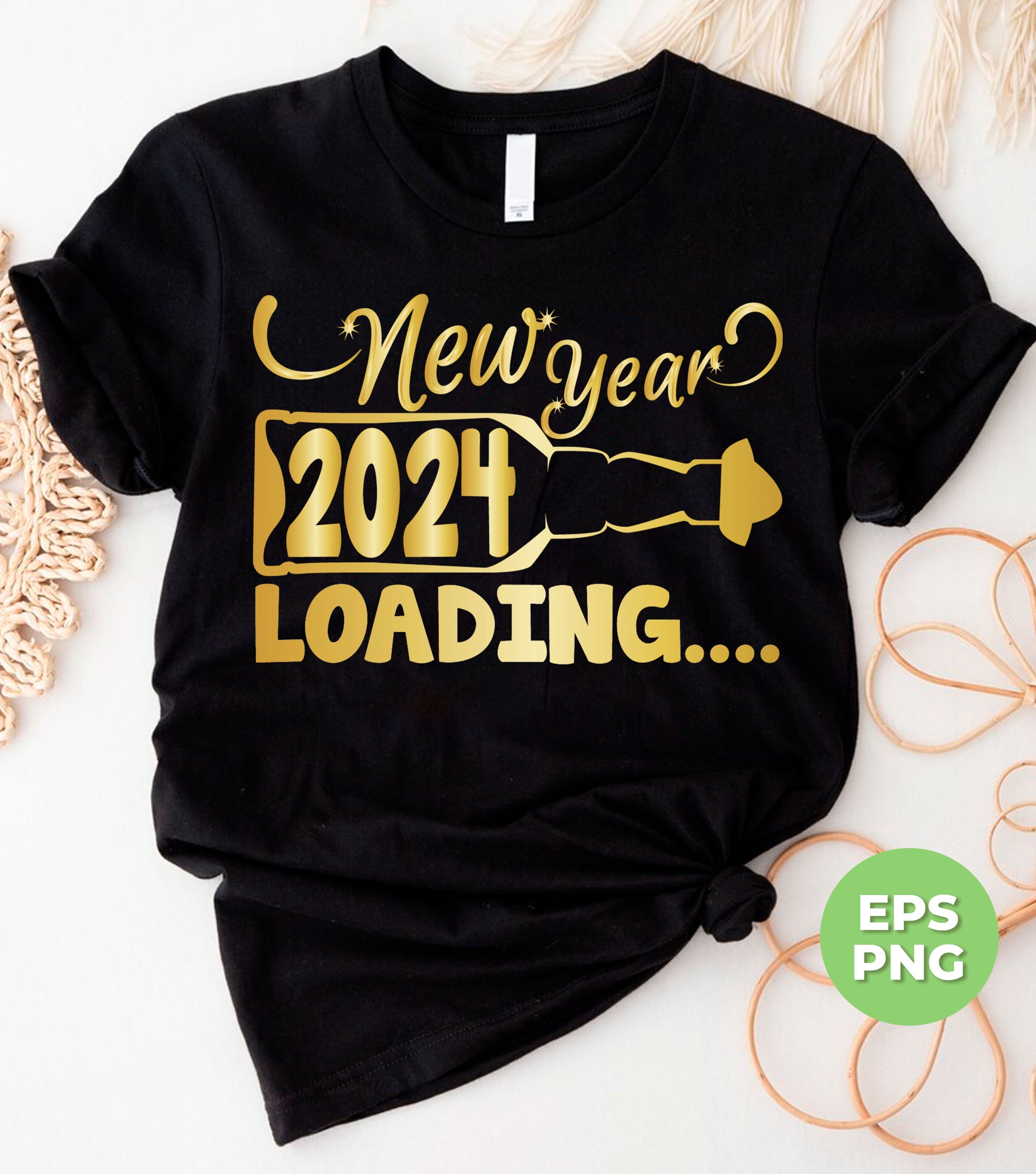 Celebrate the new year in style with our Happy New Year 2024 loading t-shirt. Featuring a sleek golden design and advanced Png sublimation technology, this shirt is perfect for any New Year's Eve celebration. Don't miss out on this limited edition shirt!