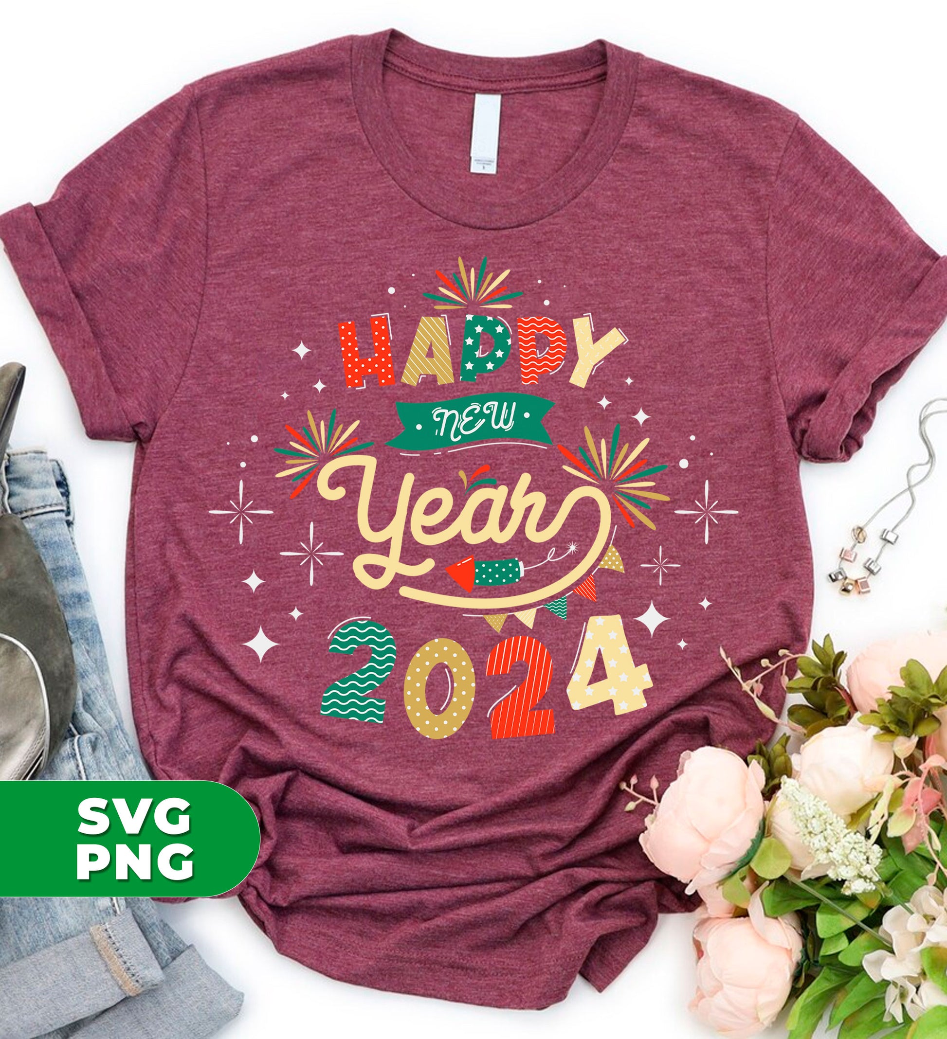 Happy New Year, 2024 New Year, New Year Fireworks, Digital Files, Png Sublimation