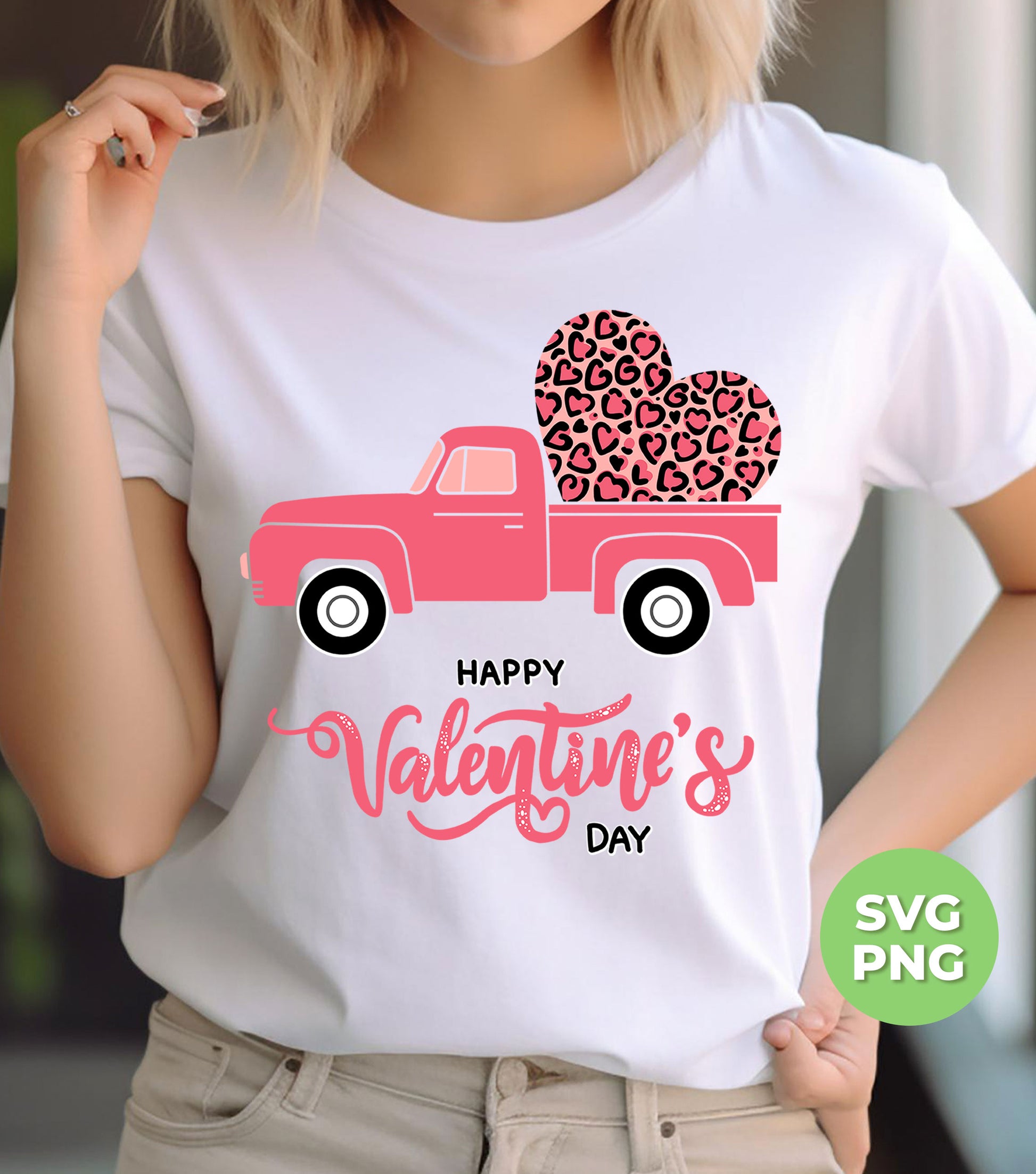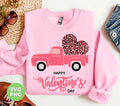 Happy Valentine's Day, Pink Truck In Valentine, Truck Bring Leopard Heart, Digital Files, Png Sublimation