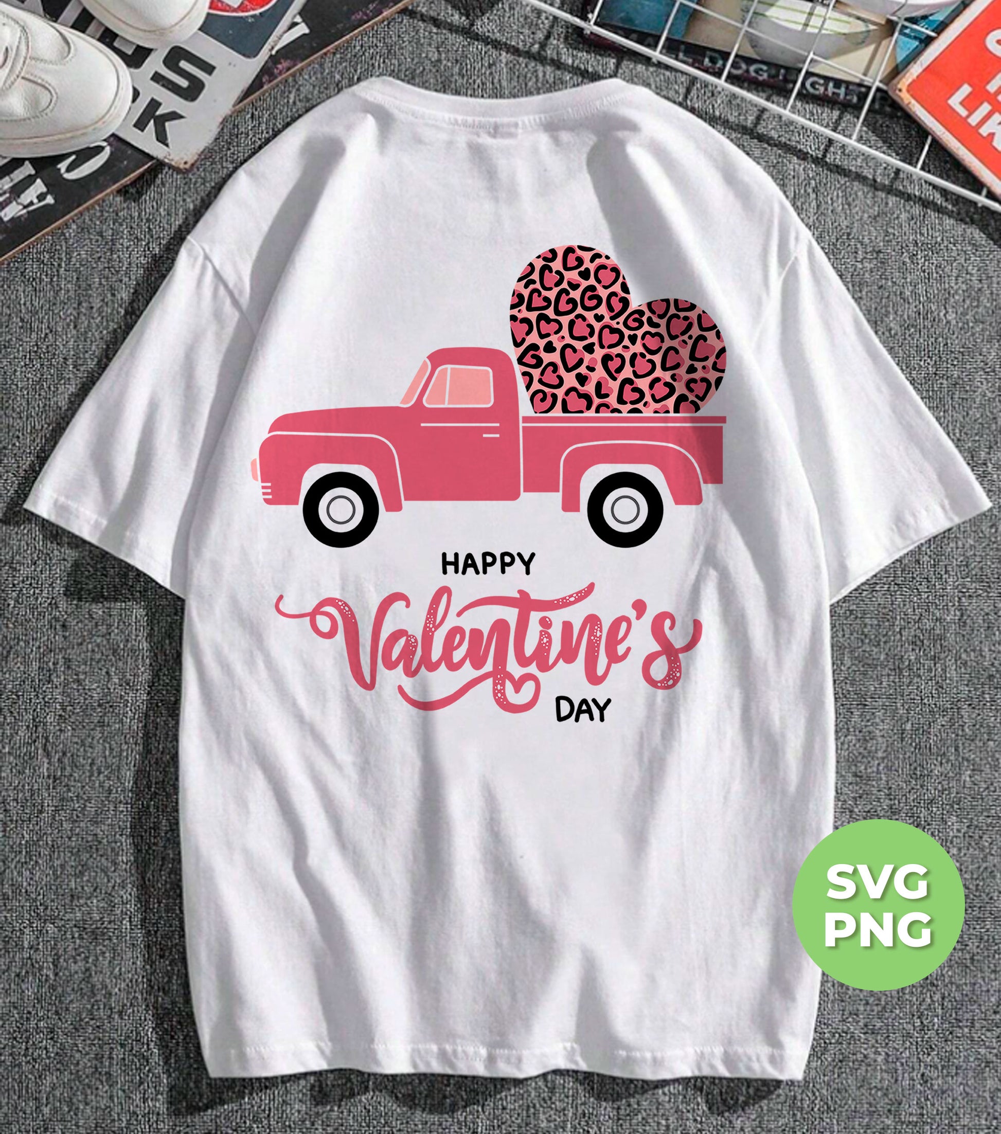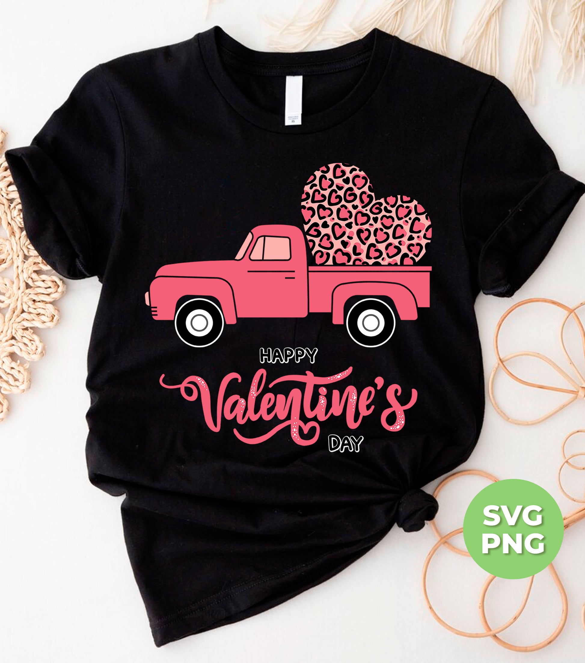 Celebrate Valentine's Day with a touch of whimsy and love with our Happy Valentine's Day Pink Truck digital file. Featuring a charming pink truck adorned with a leopard heart, this file is perfect for adding a unique and playful touch to your Valentine's Day projects. Use it for sublimation or print it out as a PNG.