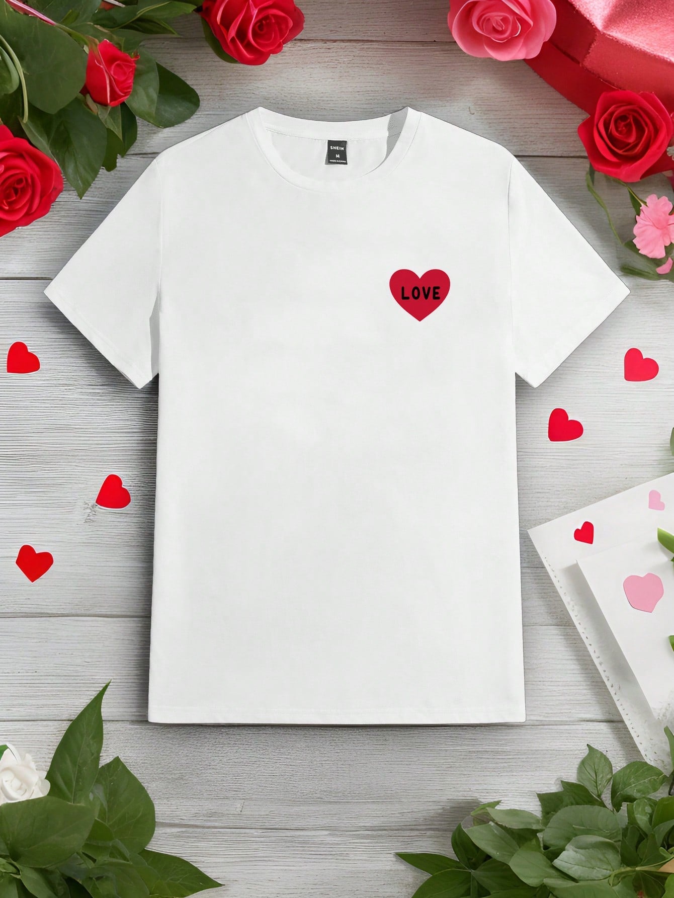 Heartfelt Style: Casual Heart Letter Print T-Shirt for Valentine's Day