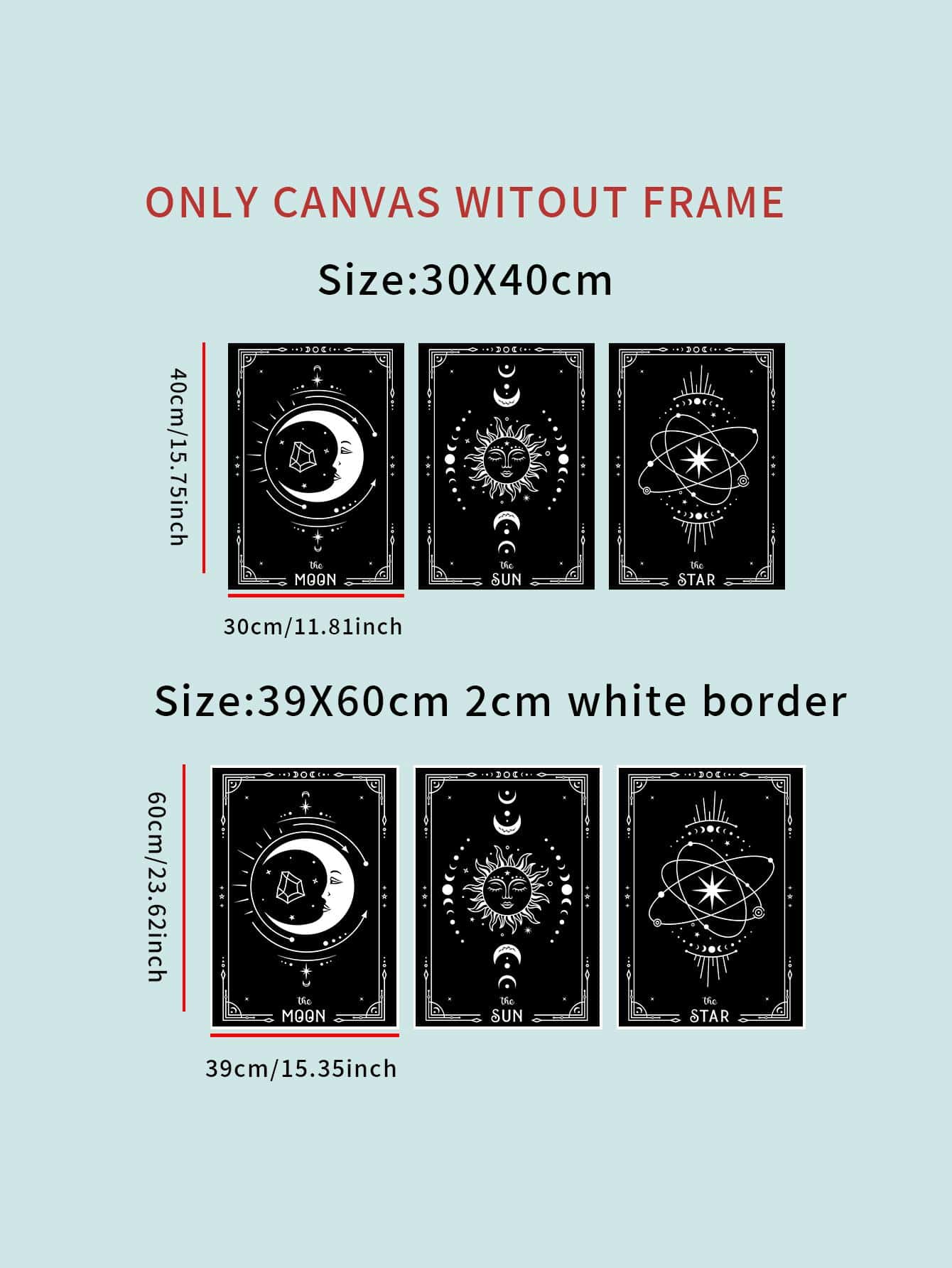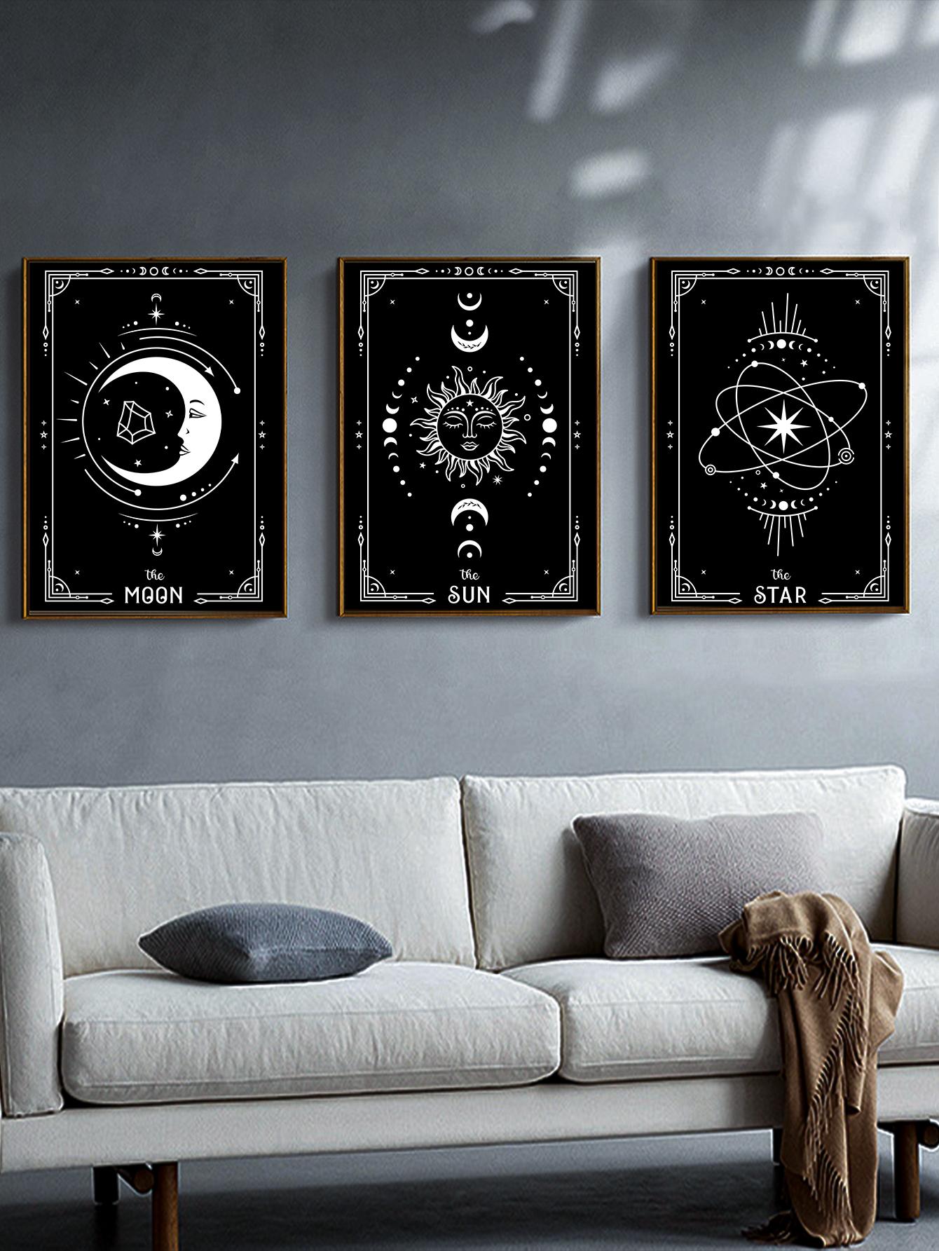 Enhance your space with the Heavenly Harmony: 3-Piece Sun and Moon Pattern Art Collection. Featuring a serene sun and moon design, these three art pieces add a touch of celestial beauty to any room. Made with high-quality materials, they are durable and long-lasting. Perfect for any art lover or spiritual individual.
