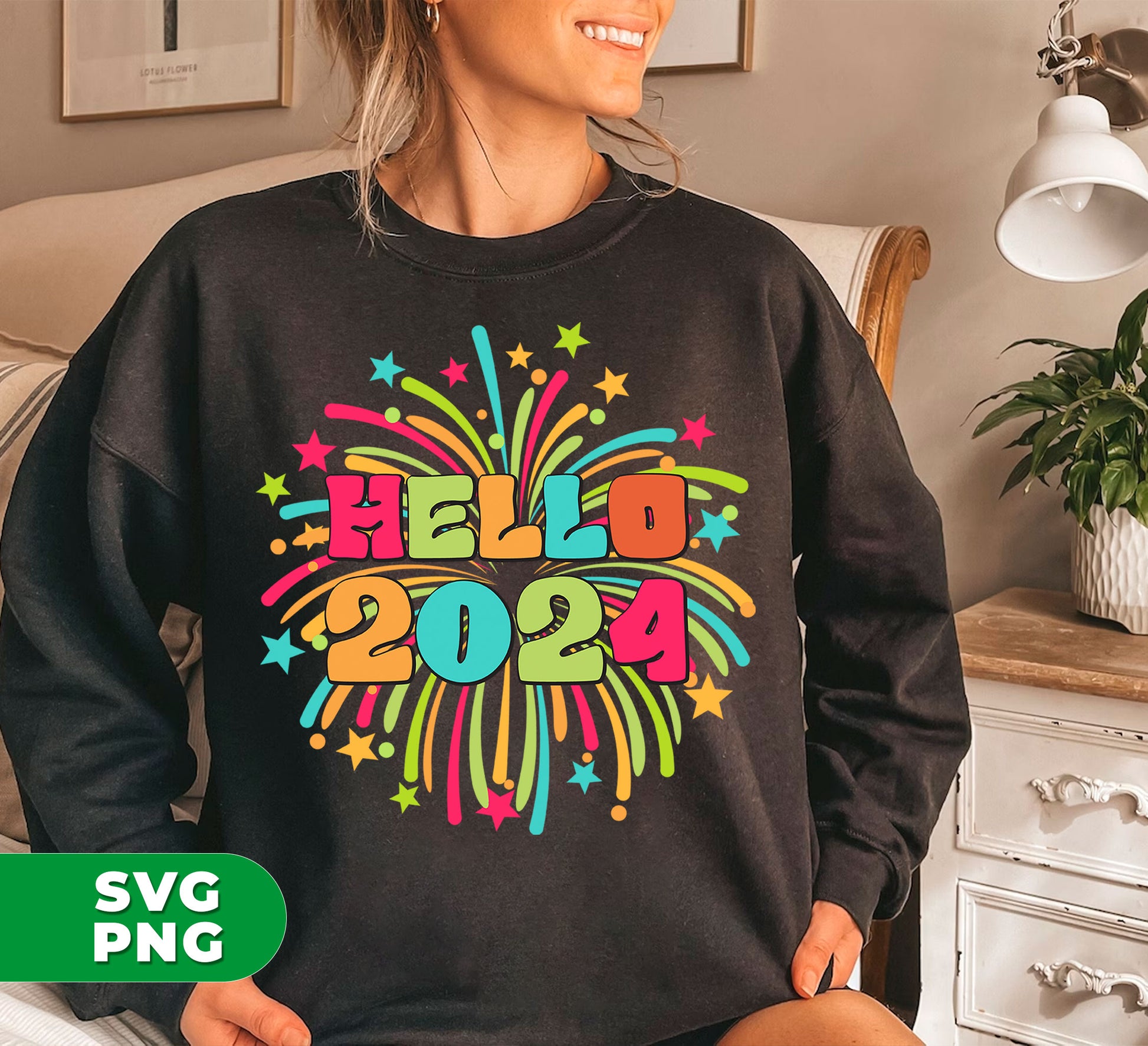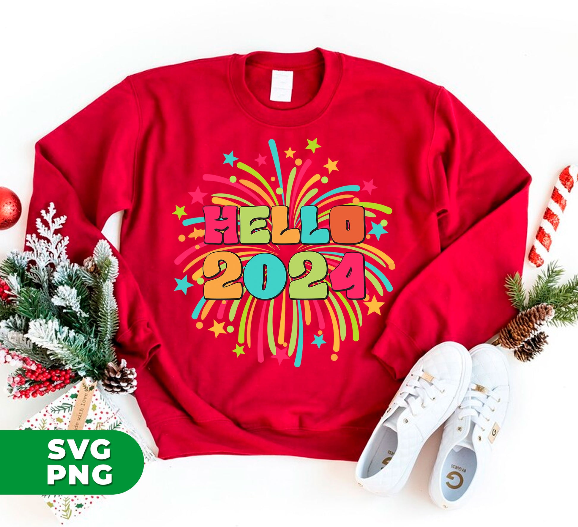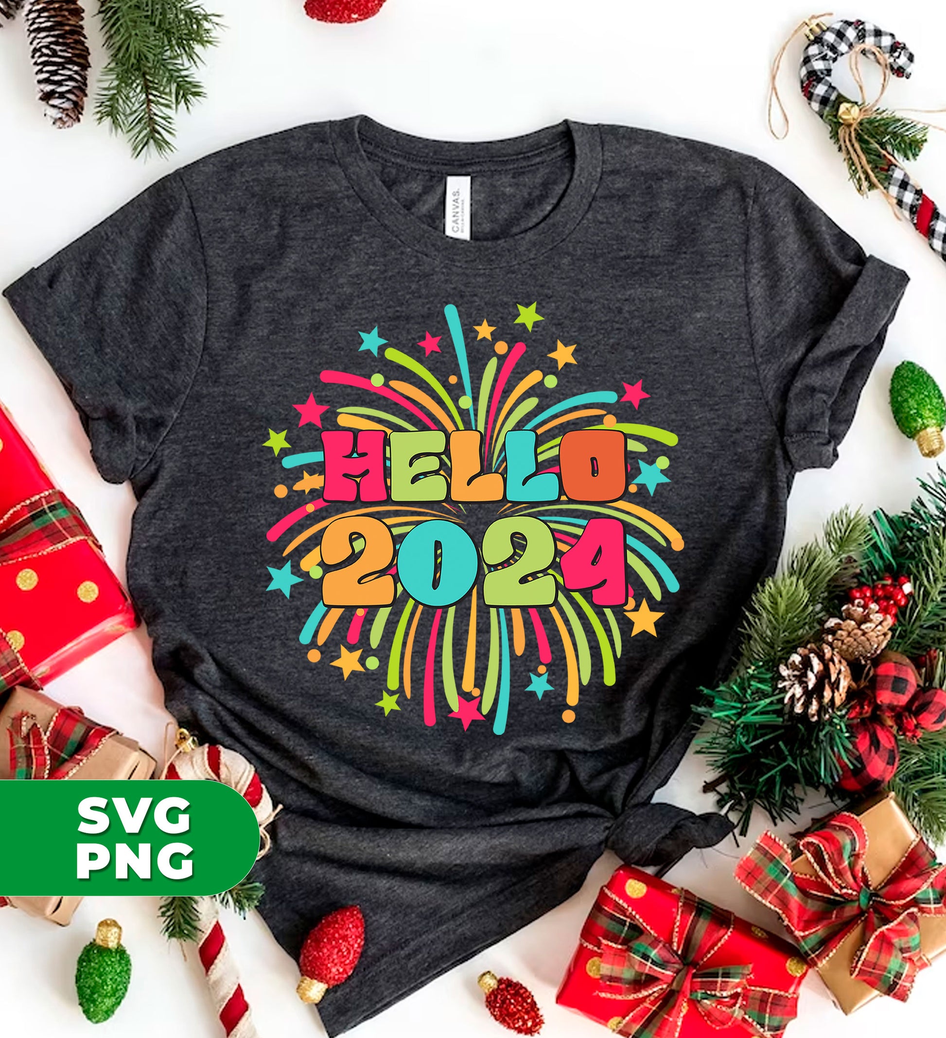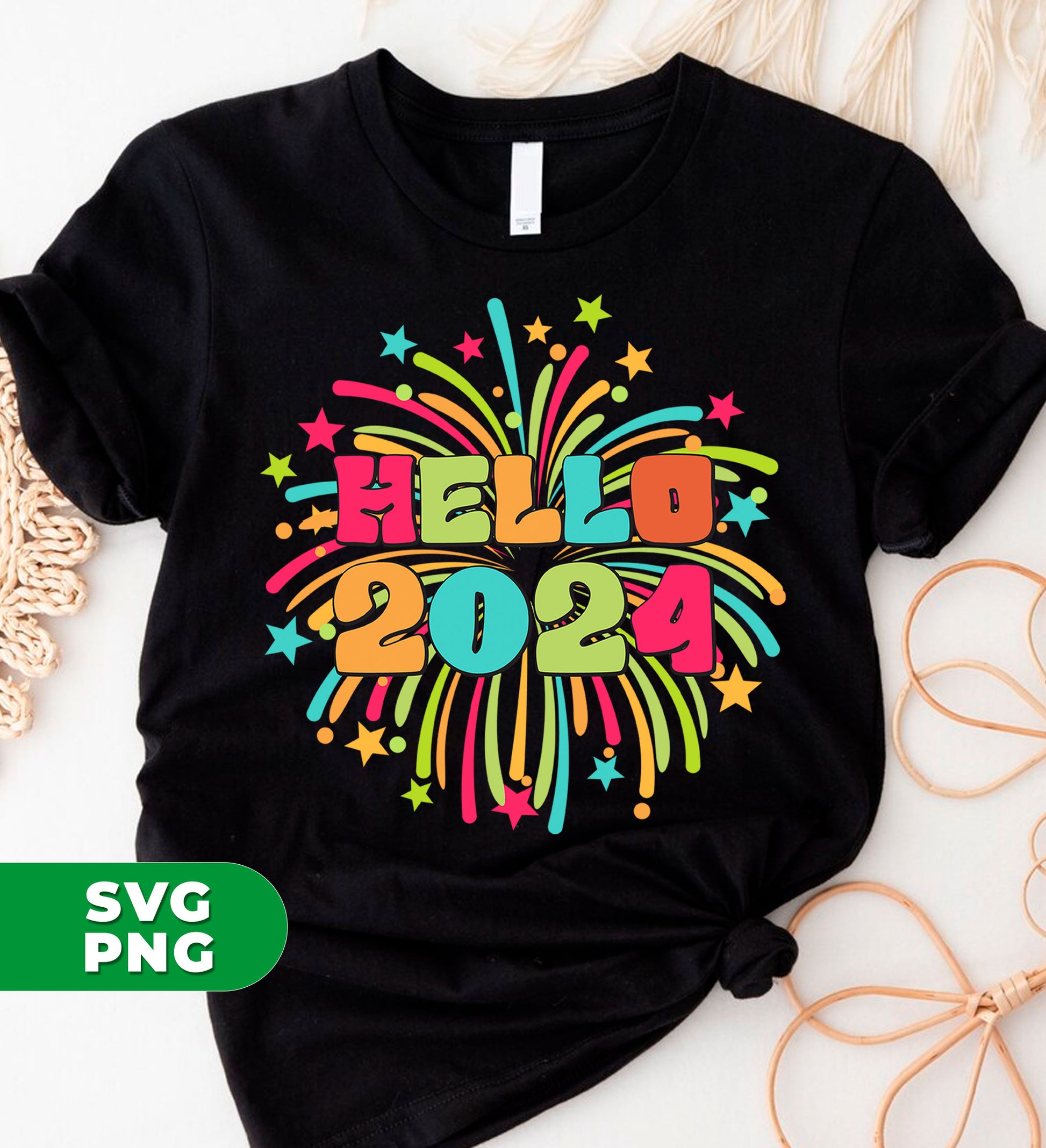 Hello 2024, Happy New Year, New Year 2024, Fireworks 2024, Digital Files, Png Sublimation
