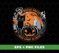 Get into the Halloween spirit with "Hocus Pocus, I Need Candy To Focus, Happy Halloween" digital files. Decorate your party invitations, t-shirts, or mugs with these playful designs. Perfect for those who love a little magic and candy!