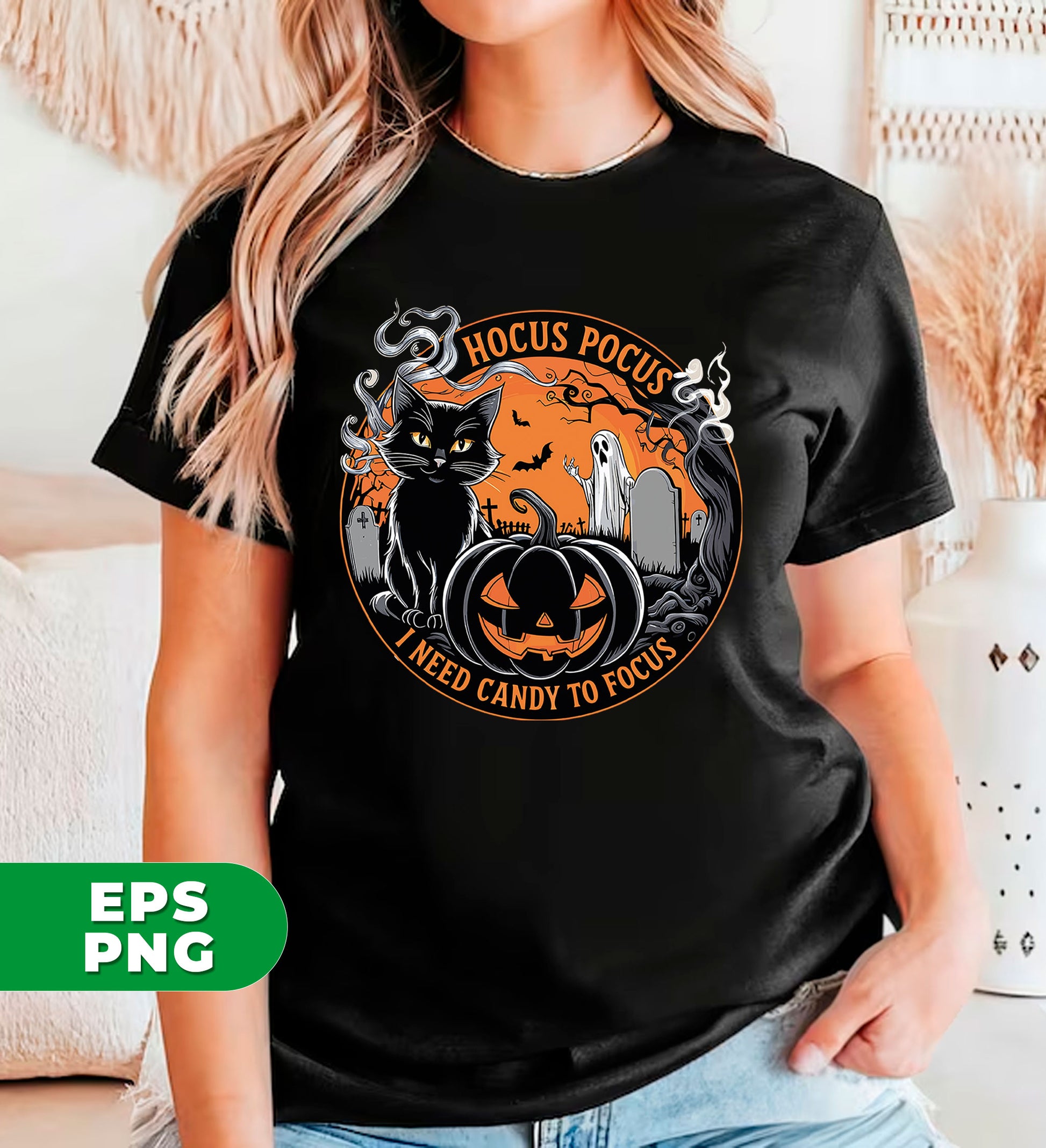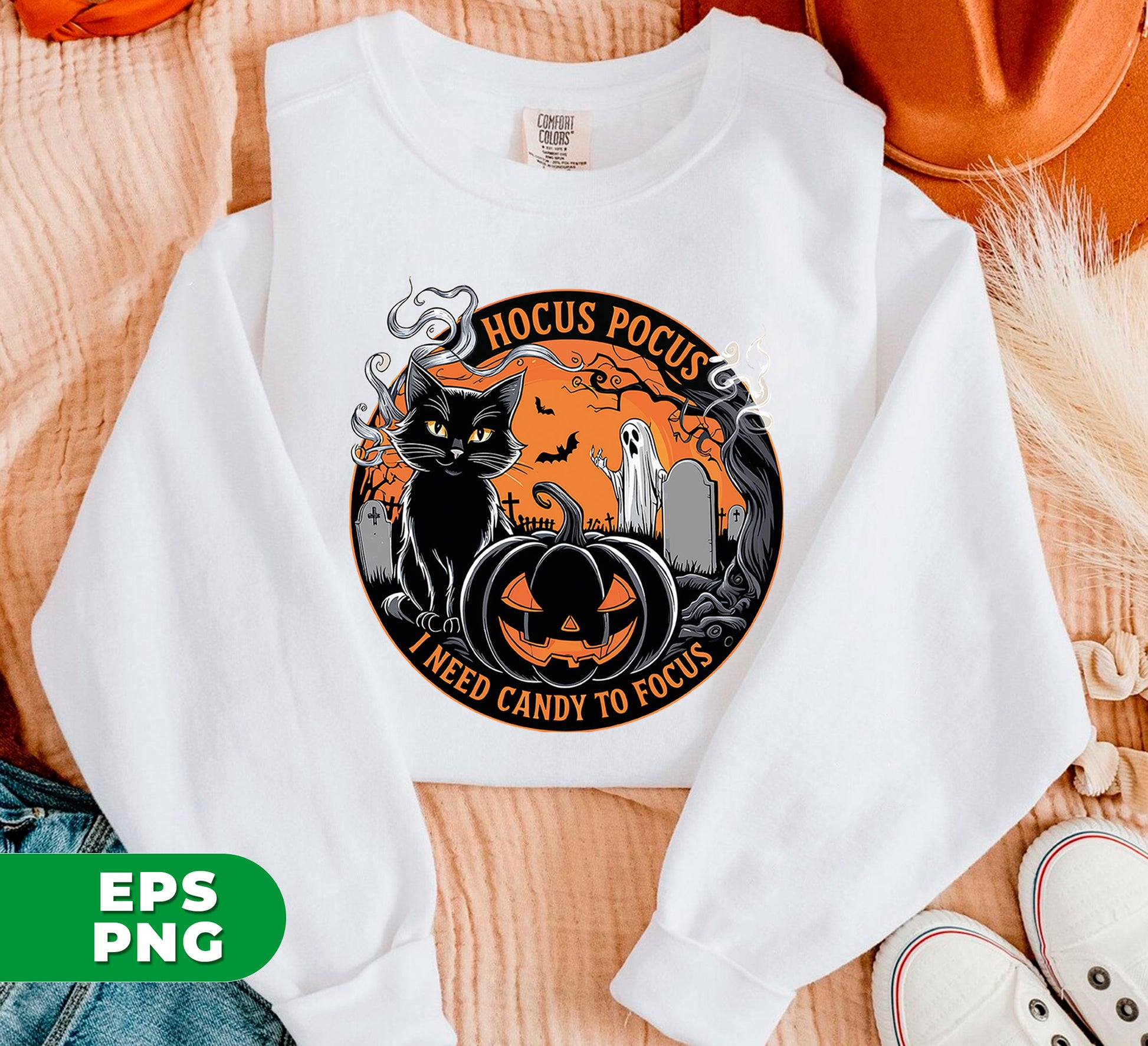 Hocus Pocus, I Need Candy To Focus, Happy Halloween, Digital Files, Png Sublimation