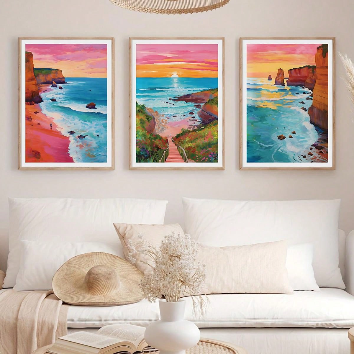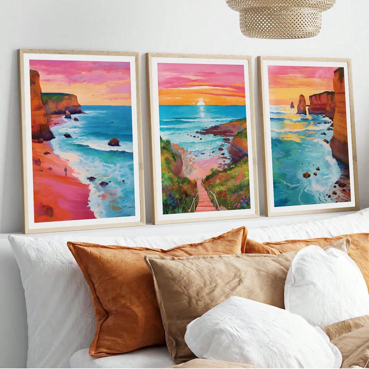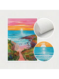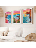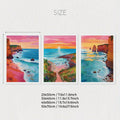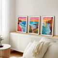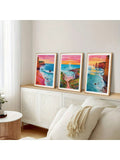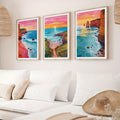 Horizon Sunrise Travel Scenery Art: 3 Piece Set of Colorful Ocean Illustrations