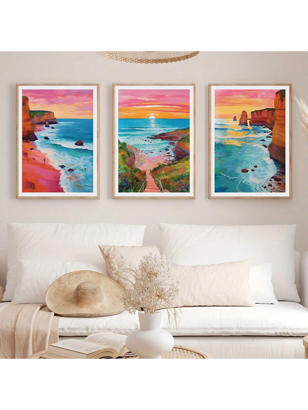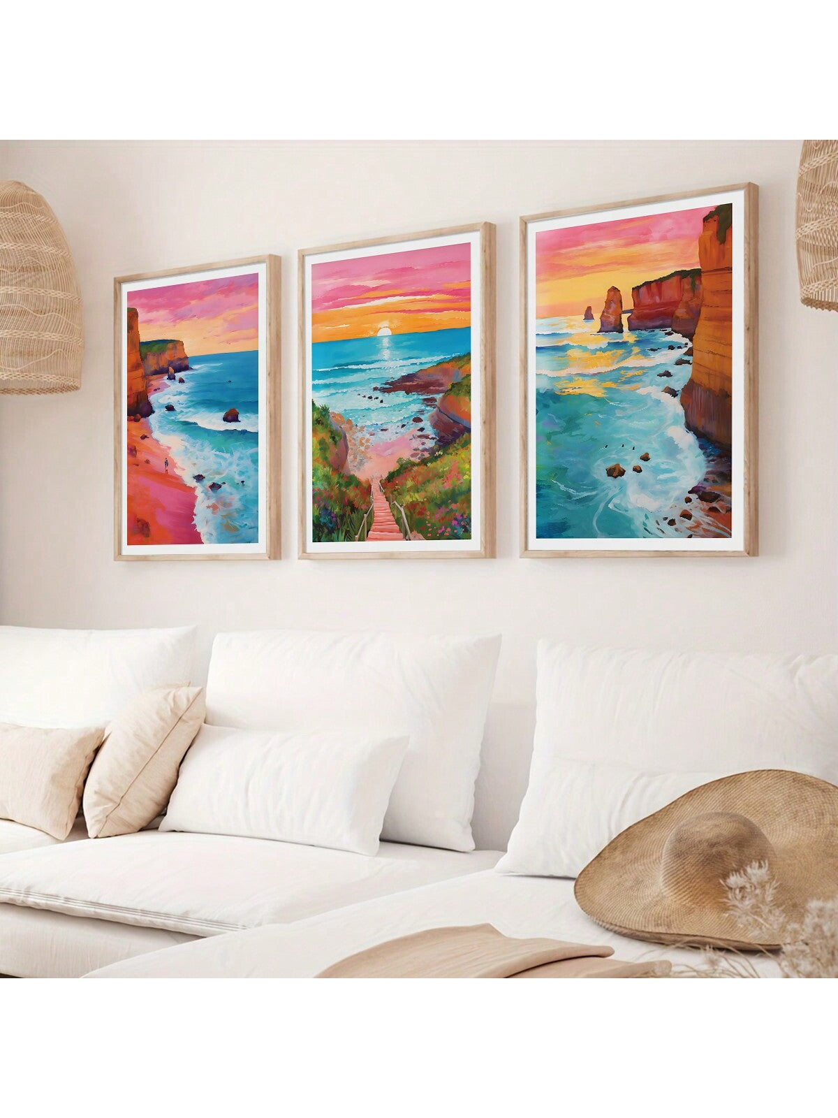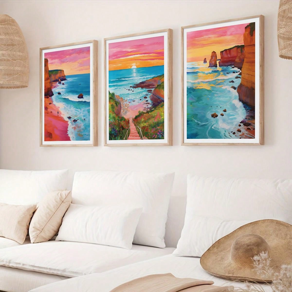 Experience the beauty of the horizon with our Horizon Sunrise Travel Scenery Art. This 3 piece set features colorful ocean illustrations that will transport you to a tranquil seaside atmosphere. Perfect for adding a touch of serenity to any room.