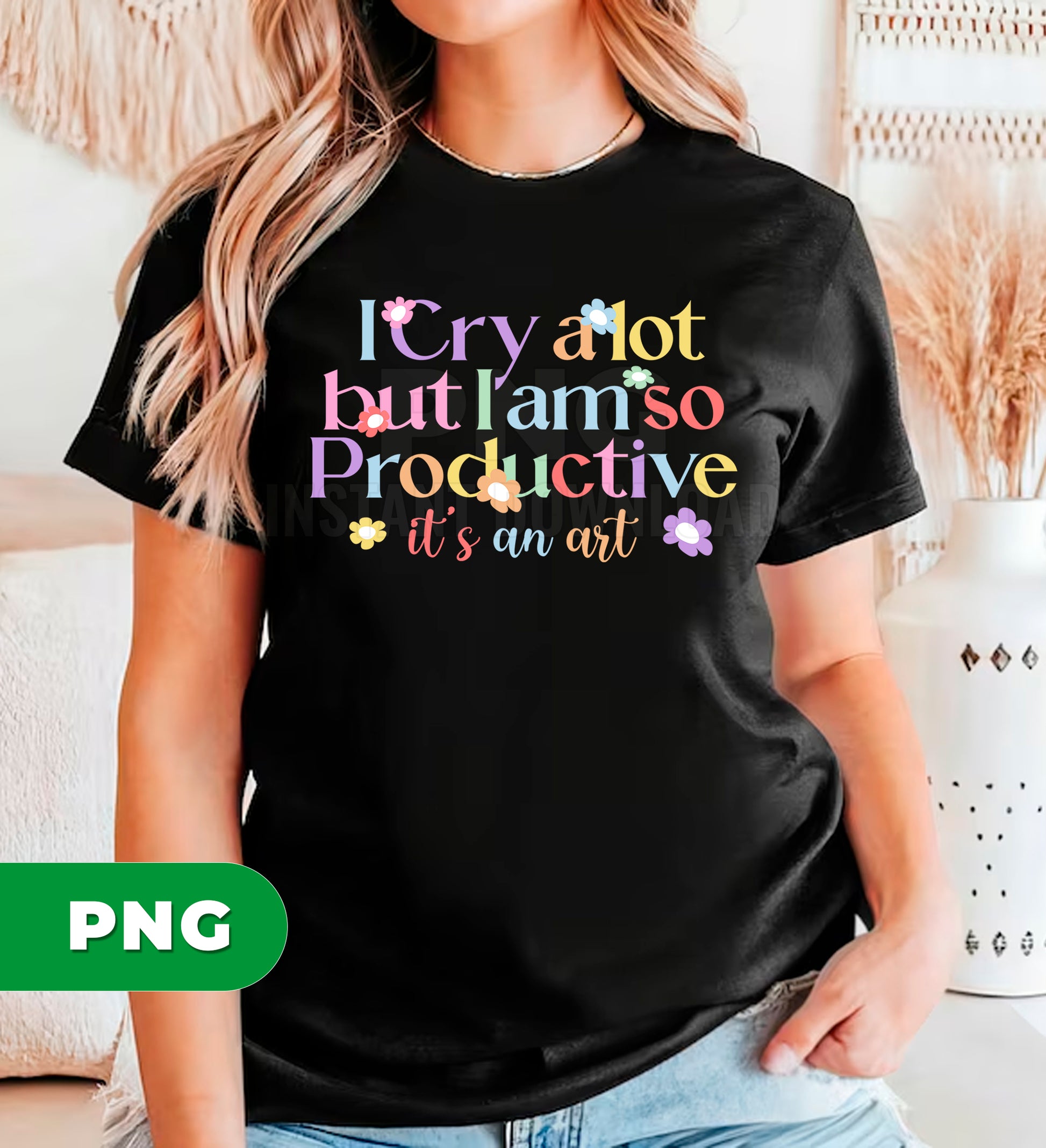 I Cry A Lot But I Am So Productive Its An Art – a hilariously honest PNG design that celebrates the beautiful chaos of getting things done. Perfect for anyone who knows that tears and productivity aren't mutually exclusive. Whether you're decorating a mug, t-shirt, or wall art, this witty graphic captures that relatable mood with humor and style. Ideal for creative professionals, hustlers, and anyone who's mastered the art of thriving while feeling all the feels. High-quality PNG file ready to customize and print.
