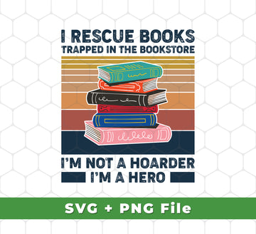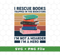 I Rescue Books Trapped In The Bookstore, I'm Not A Hoarder, I'm A Hero, Svg Files, Png Sublimation