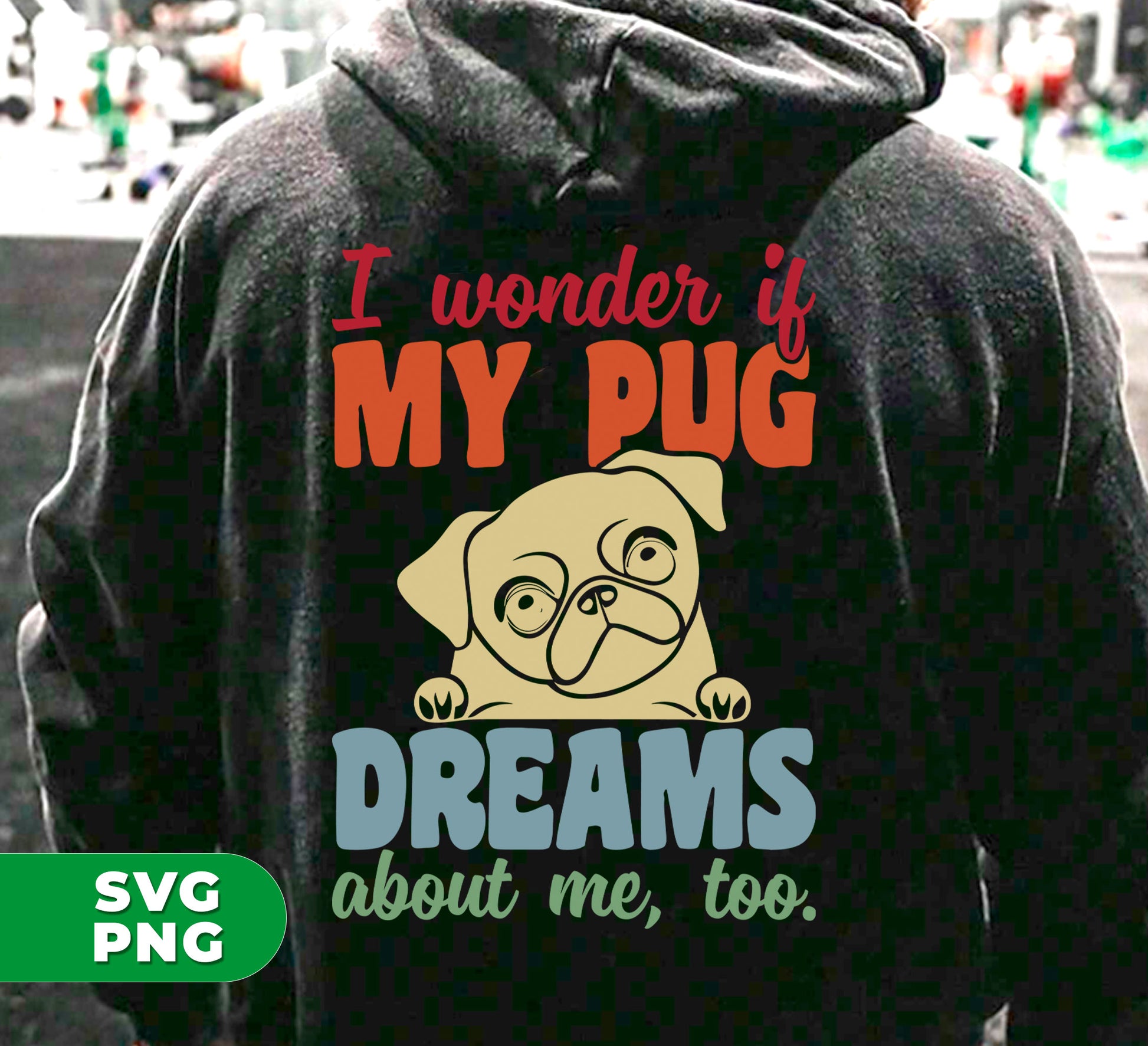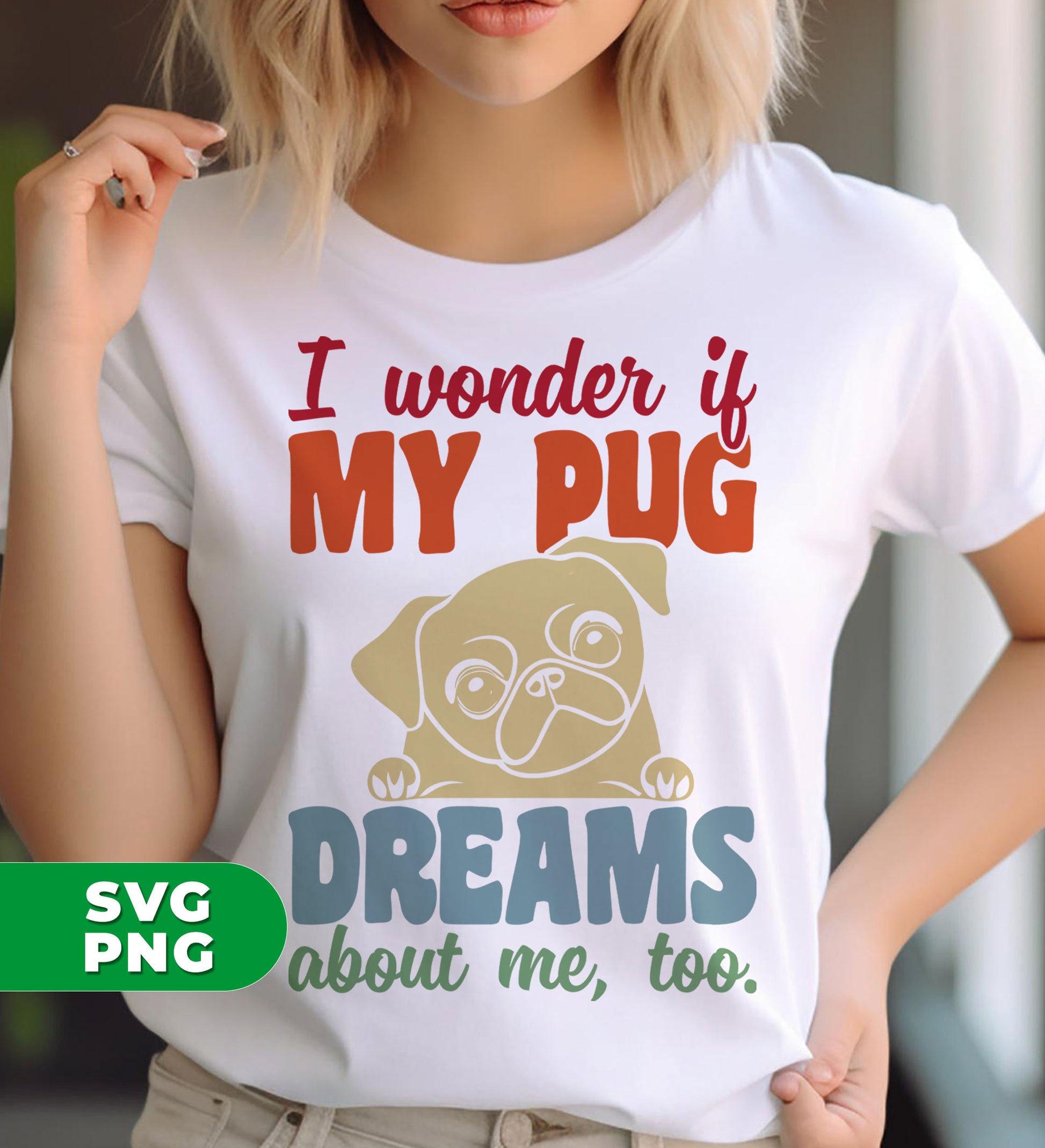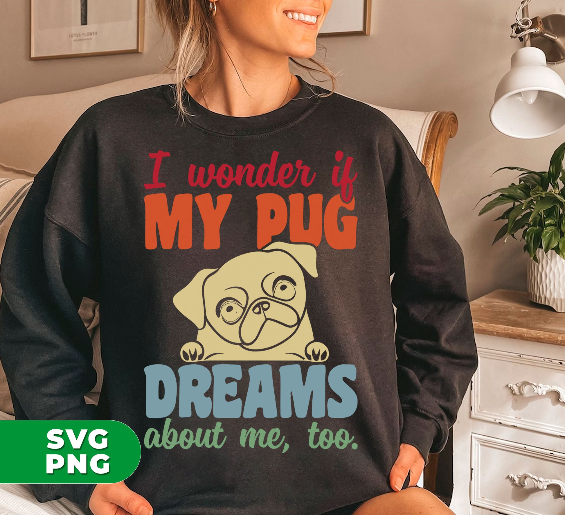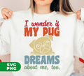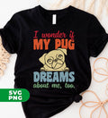 I Wonder If My Pug Dreams About Me, Pug Lover, Retro Pug, Digital Files, Png Sublimation