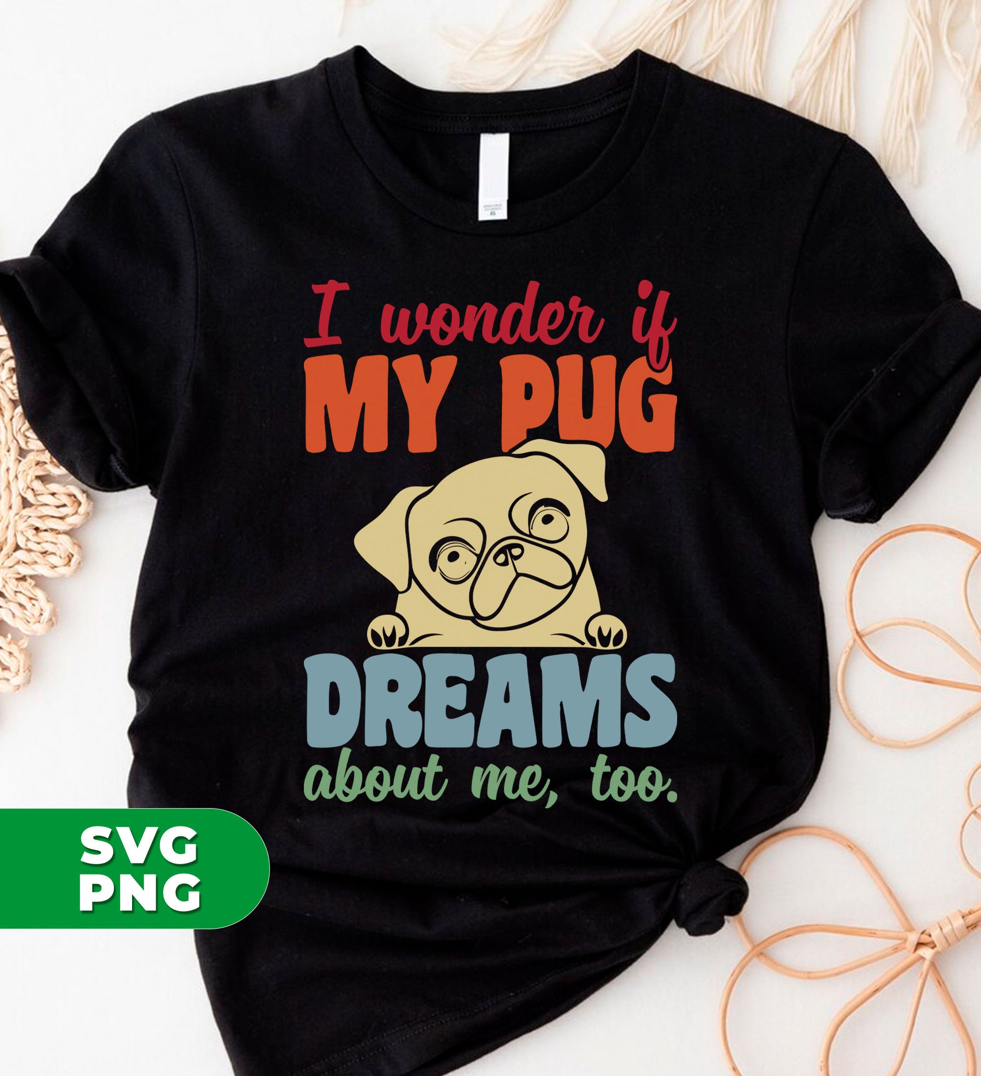 Discover the love between you and your pug with I Wonder If My Pug Dreams About Me. Express your passion for pugs with Retro Pug design. Get digital files for Png sublimation and showcase your pug love.