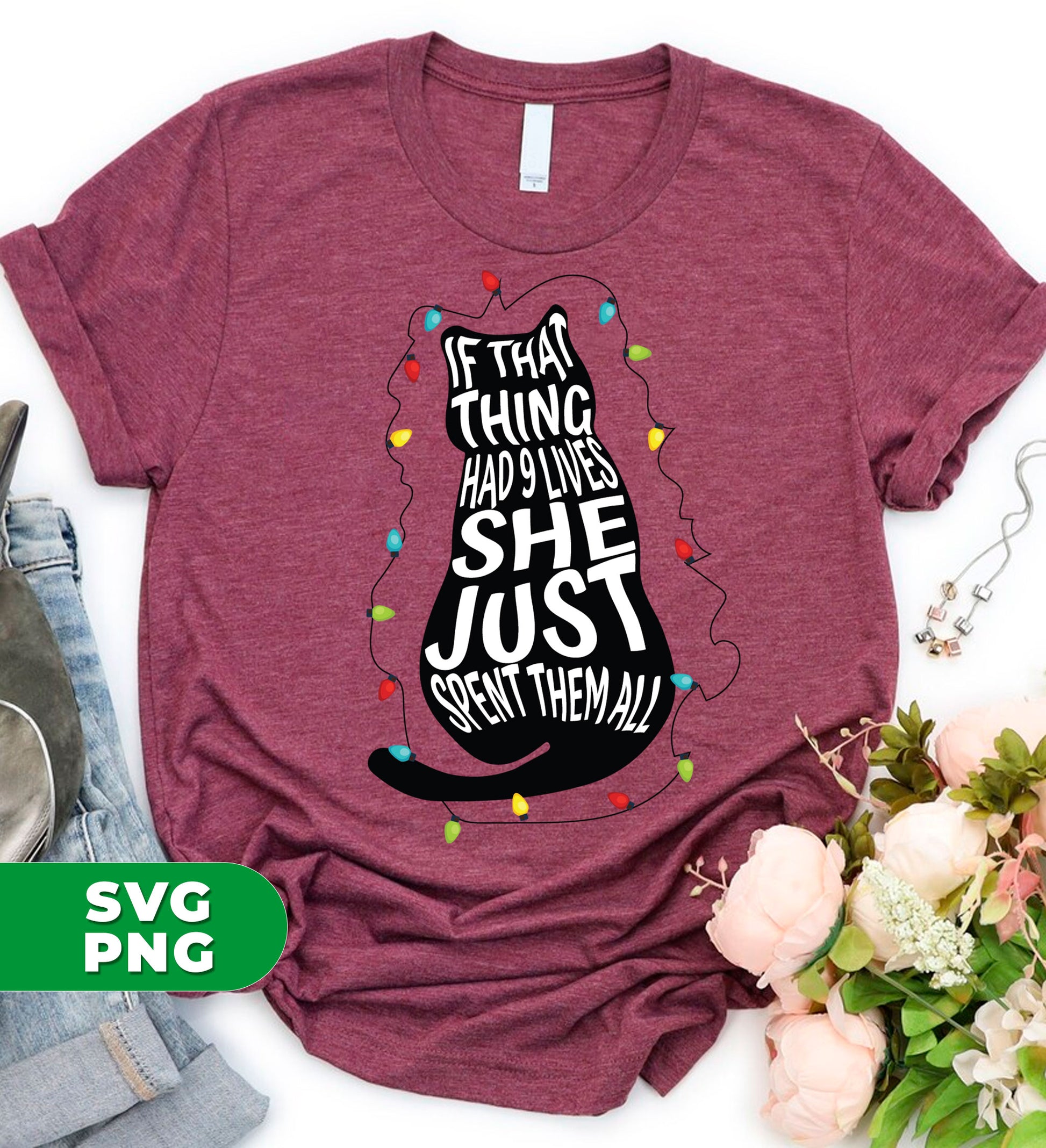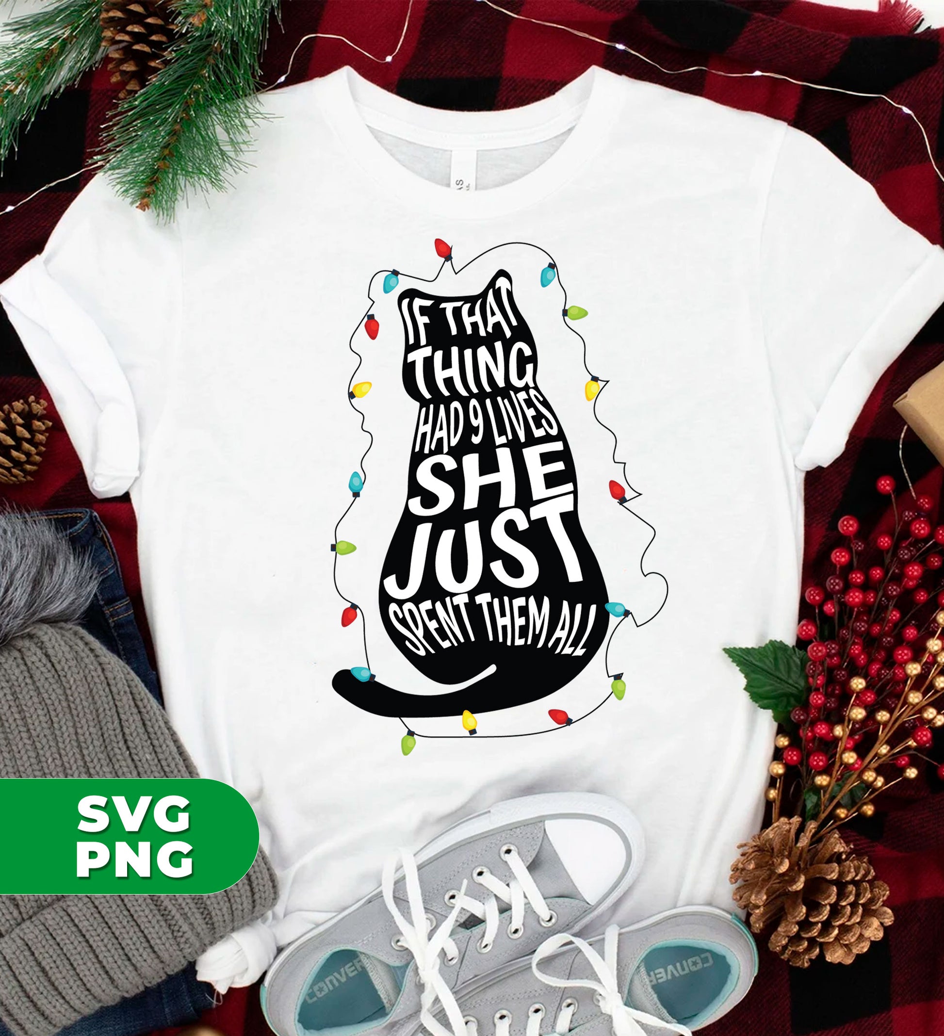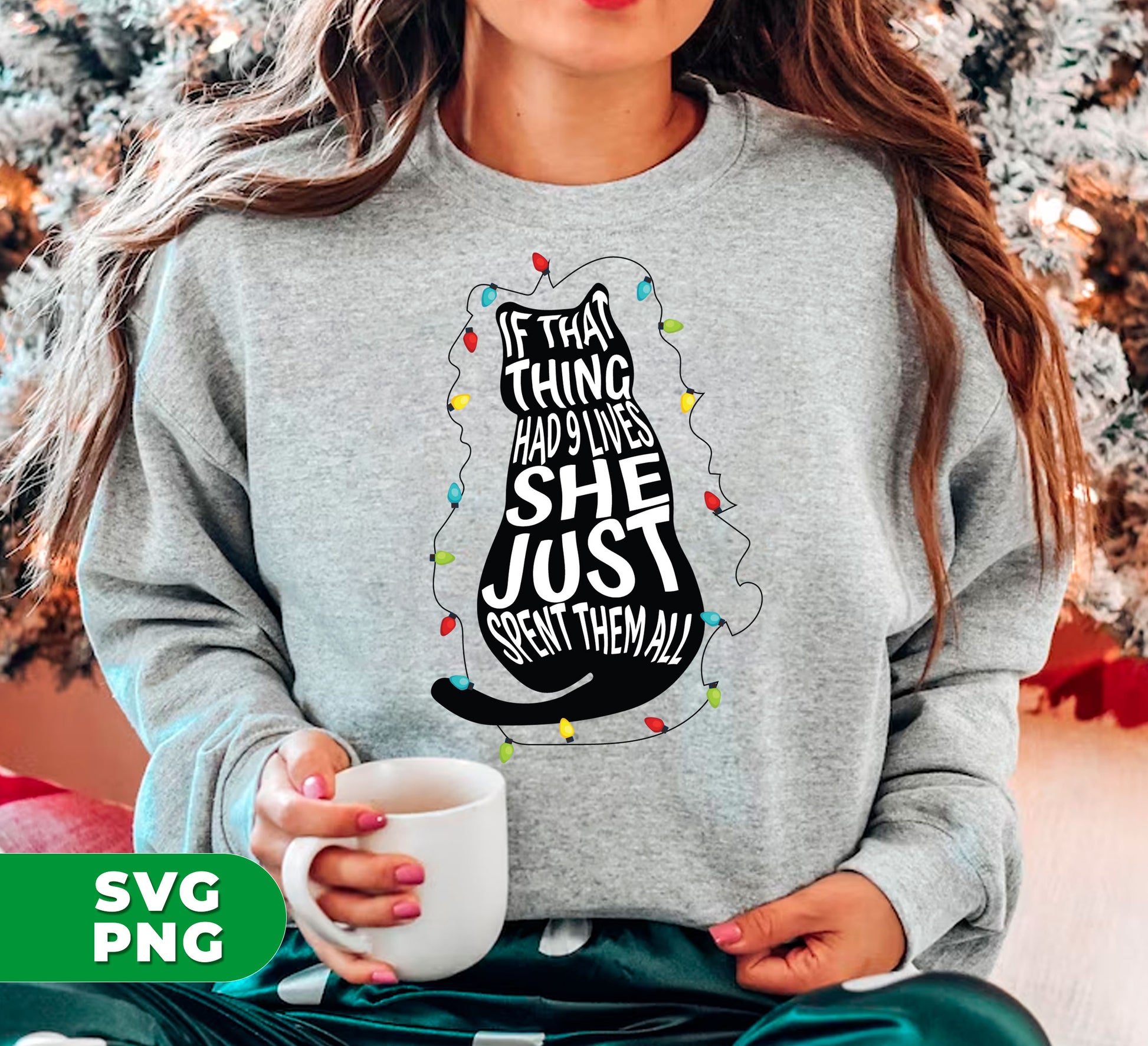If That Thing Had 9 Lives, She Just Spent Them All, Xmas Lights, Digital Files, Png Sublimation