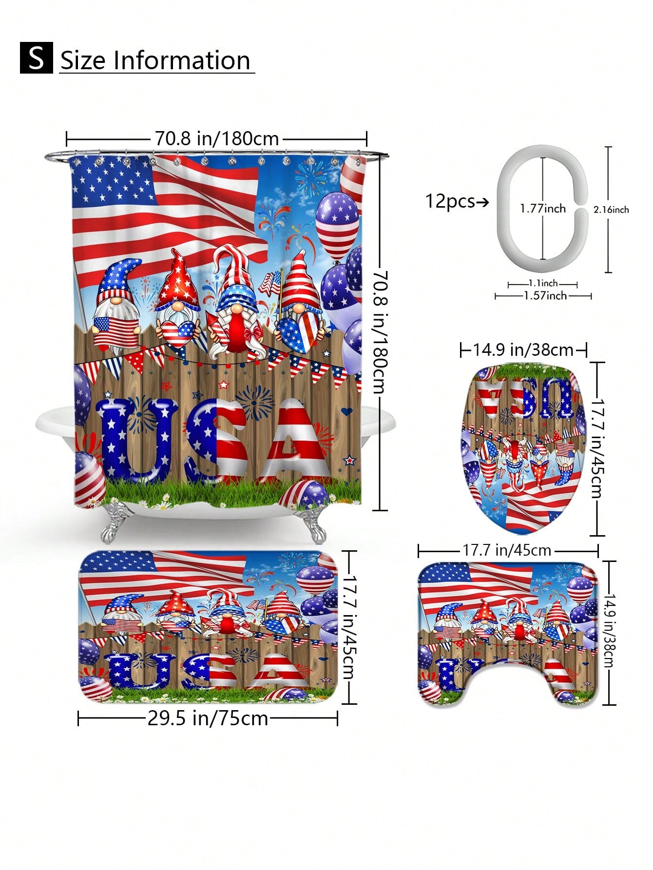 Elevate your bathroom with our Independence Day Cartoon Dwarf Bathroom Decor Set! Featuring a shower curtain and matching accessories, this set adds a touch of character and whimsy to any space. Perfect for celebrating Independence Day or adding a pop of color to your bathroom year-round.