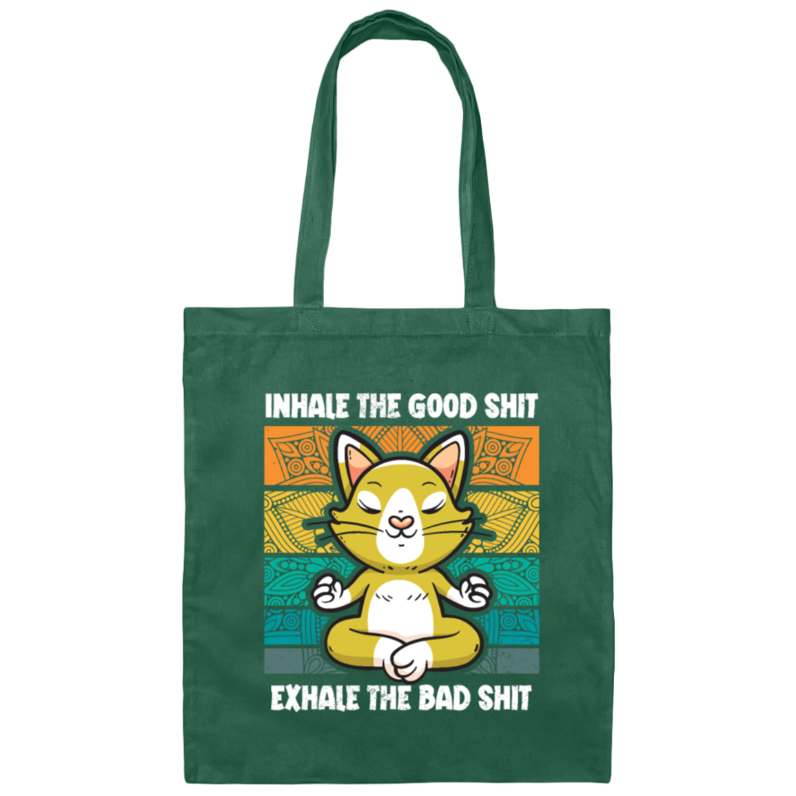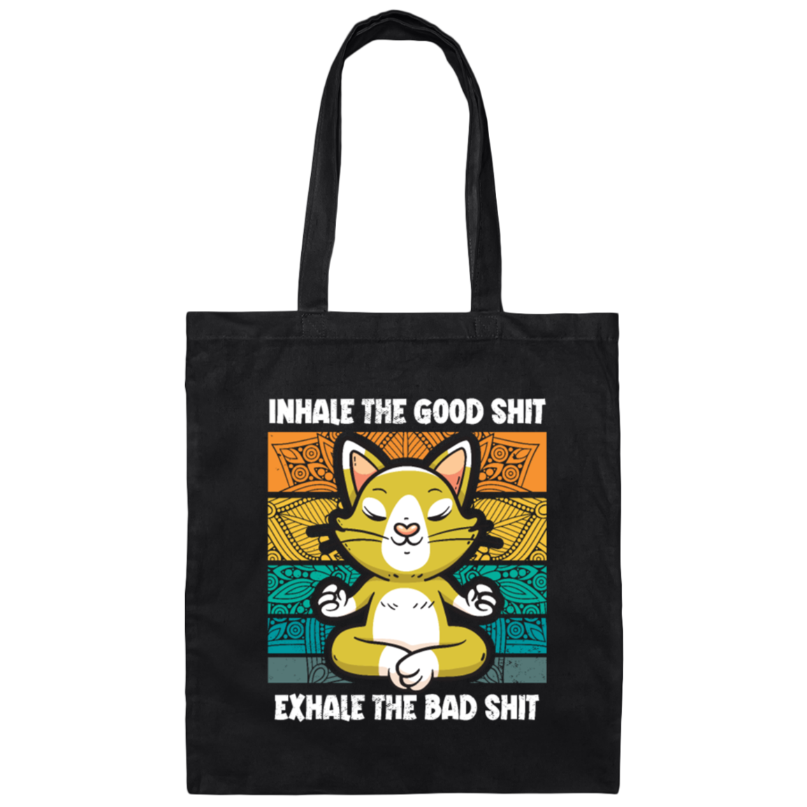 Inhale and Exhale Funny Cat, Yoga Meditation Cats Canvas Tote Bag