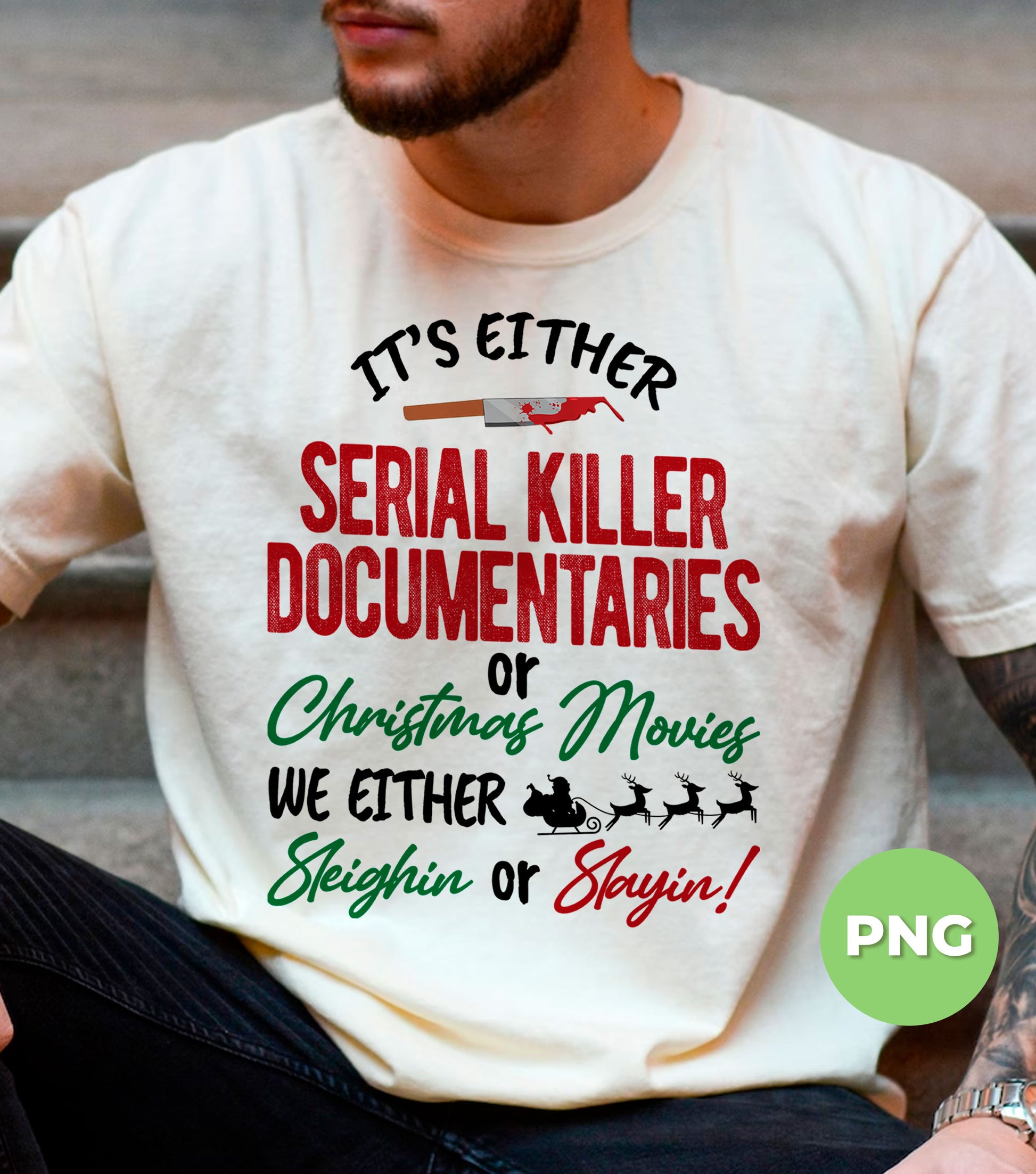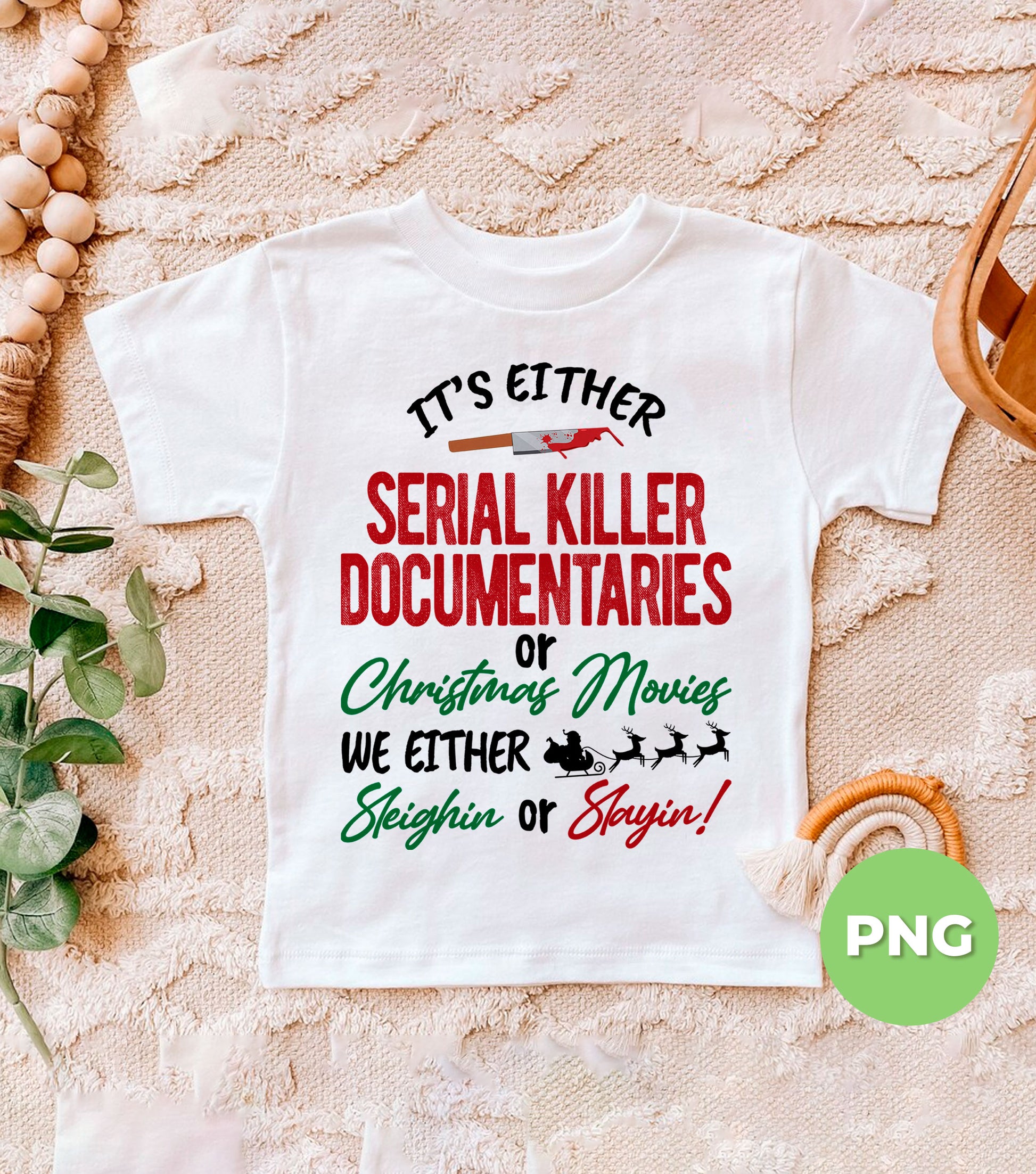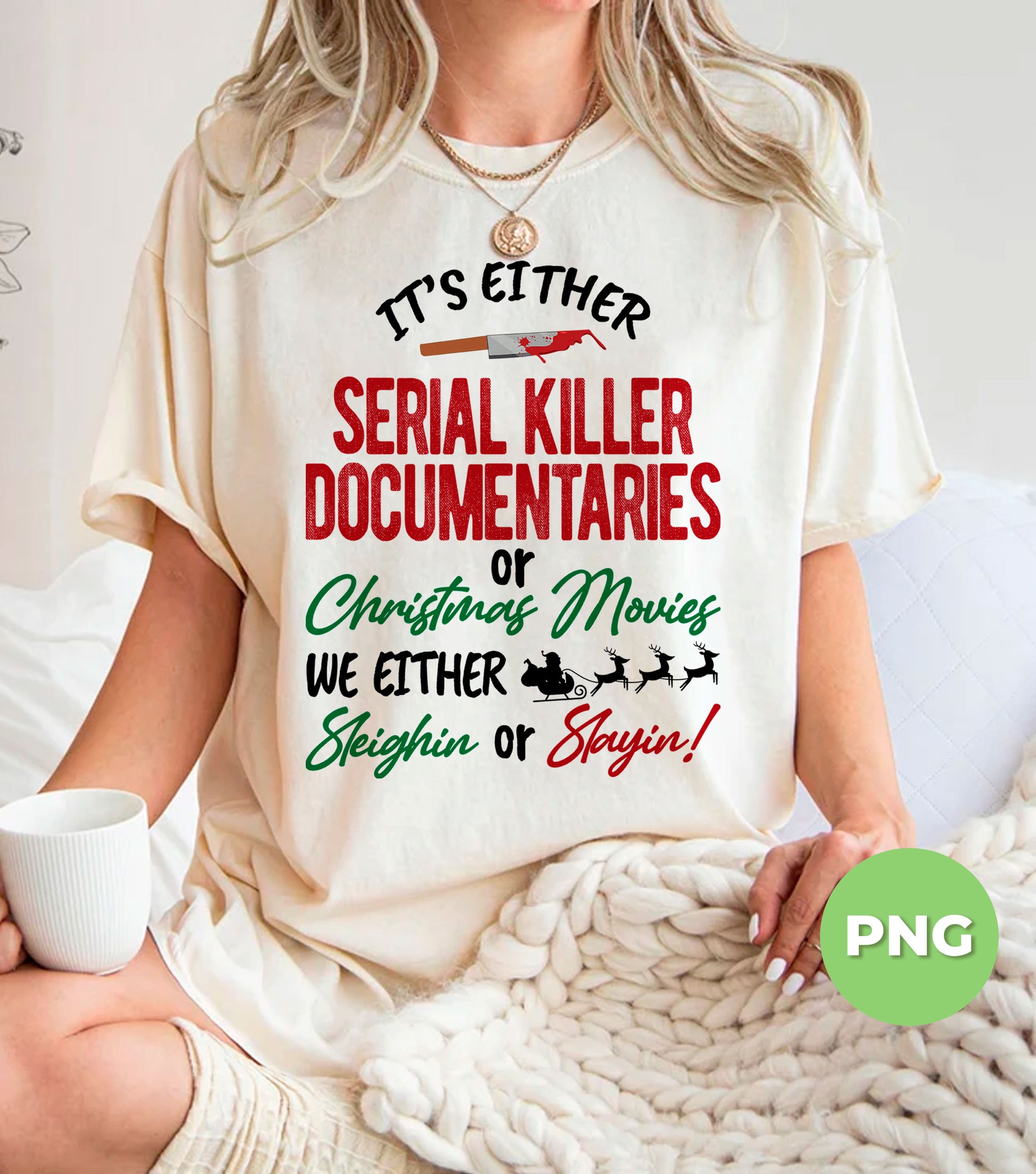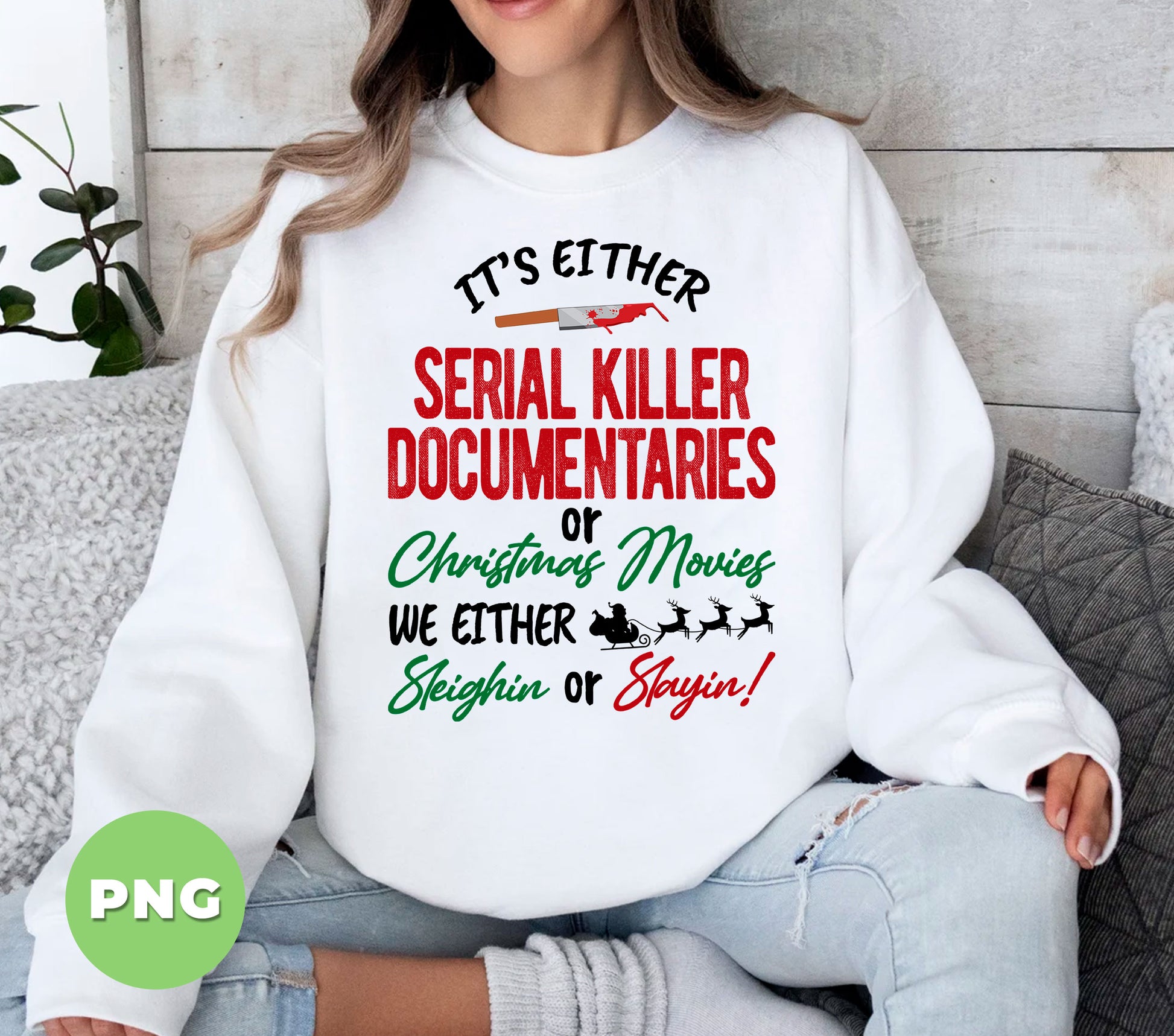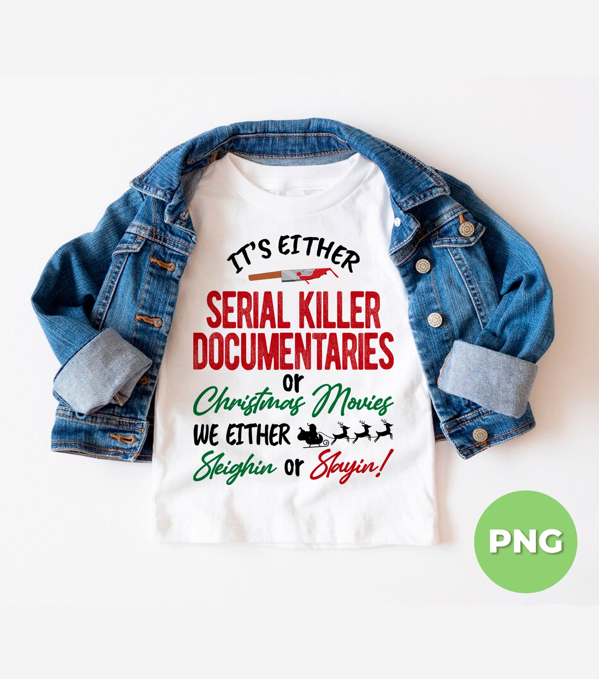 It's Either Serial Killer Documentaries, Or Christmas Movies, We Either Sleighin Or Slayin, Digital Files, Png Sublimation