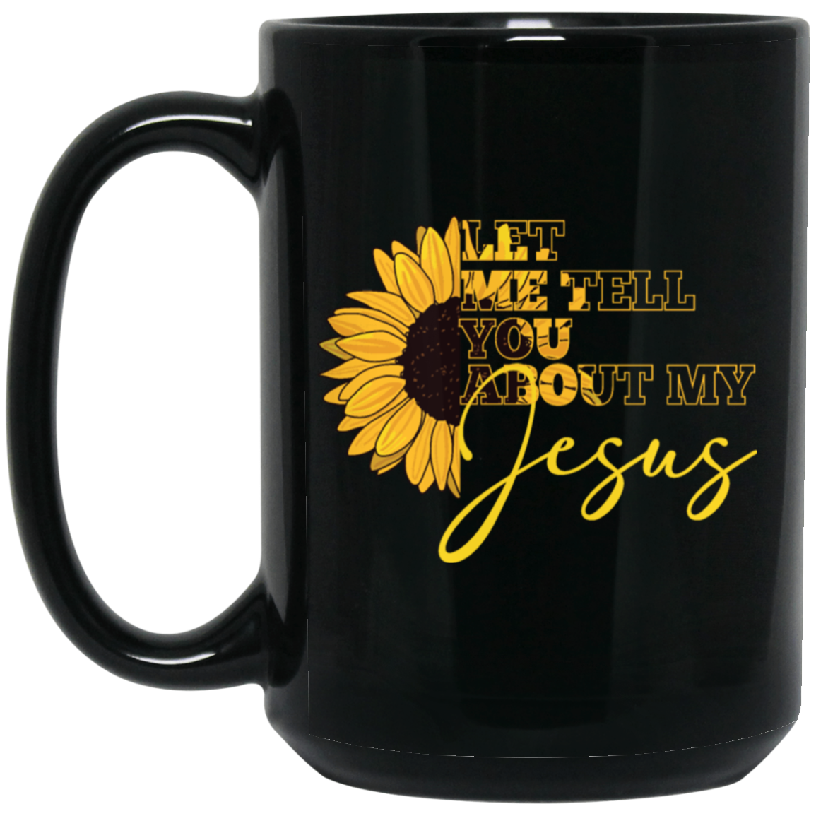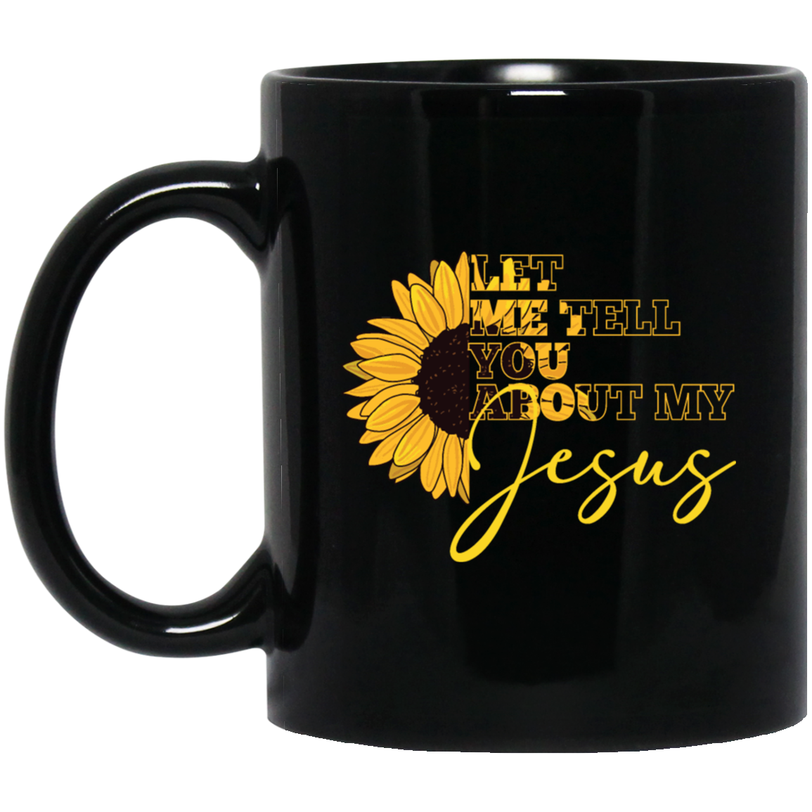 Jesus Believer Gift, Let Me Tell You About My Jesus, Sunflower Jesus Black Mug