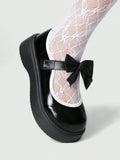 Kawaii Charm: Women's Mary Jane Bowknot Wedge Loafers - Chic Platform Dress Shoes