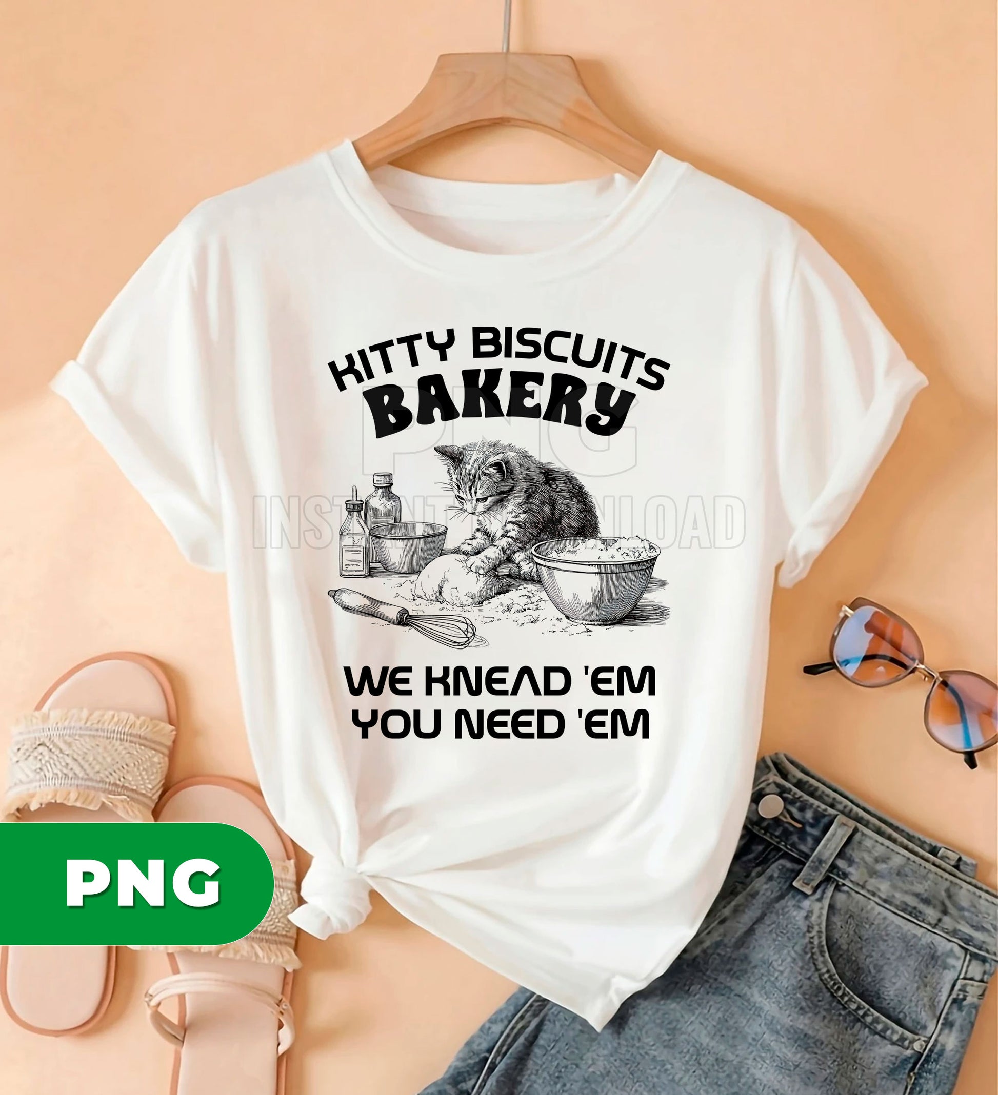 Kitty Biscuits Bakery PNG, Funny Cat Baking Sublimation, We Knead Em You Need Em Quote, Vintage Retro Kitchen Cat Design, Cute Baker Art