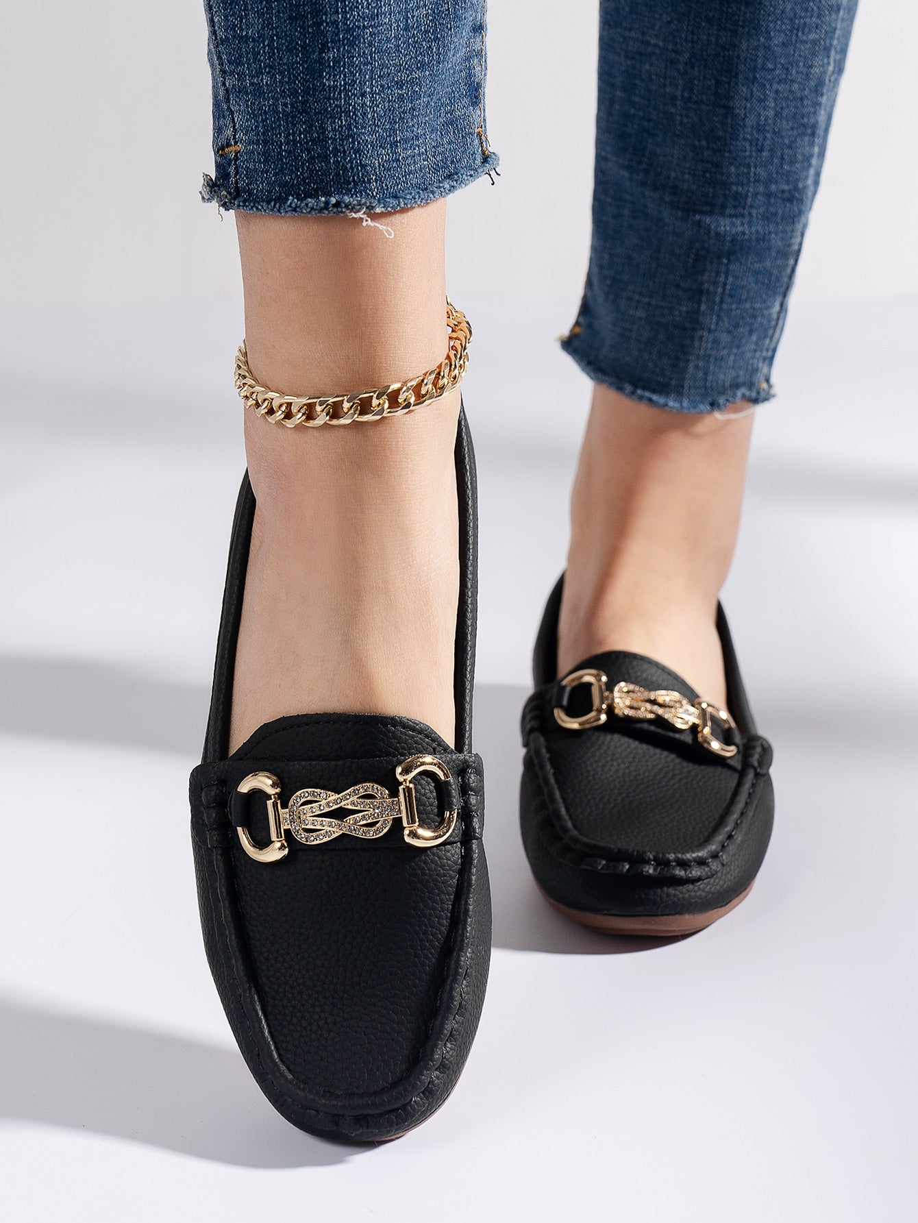 Add a touch of comfort and style to your wardrobe with our Leopard Print Rhinestone Loafer Moccasins. These shoes feature a trendy leopard print design and are adorned with sparkling rhinestones for a touch of glamour. Made with high-quality materials, they provide both comfort and style in one shoe.