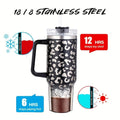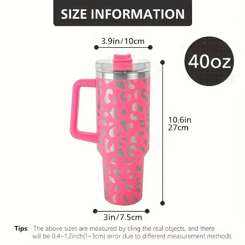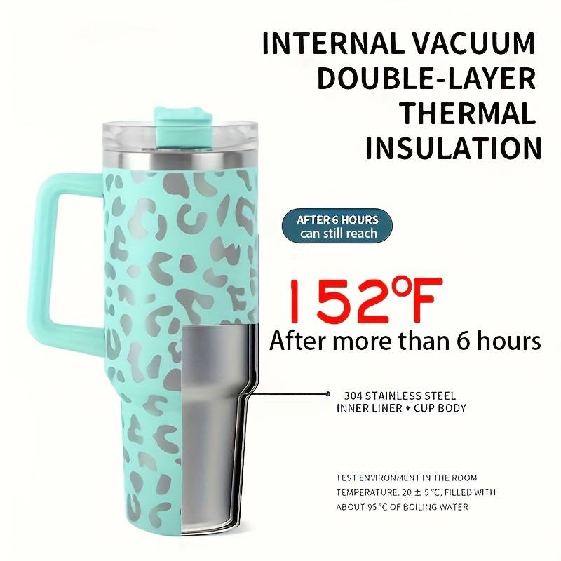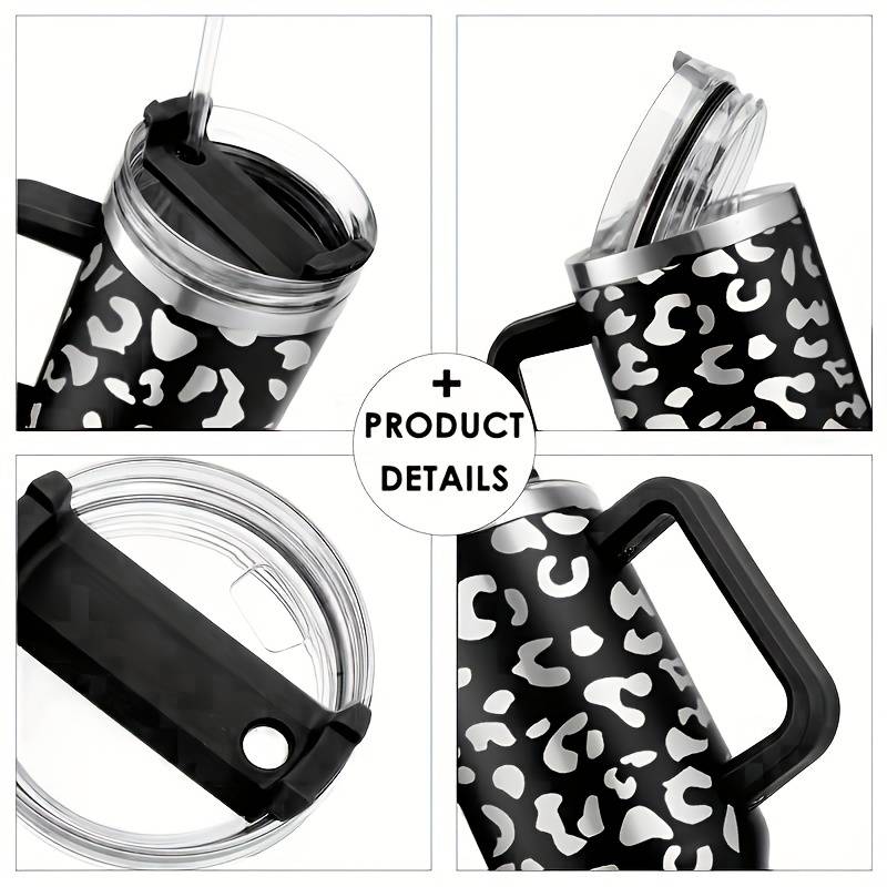 Leopard Tumbler 40oz, Portable Car Tumbler, Leakproof Water Bottle - Perfect for Outdoor Camping & Traveling