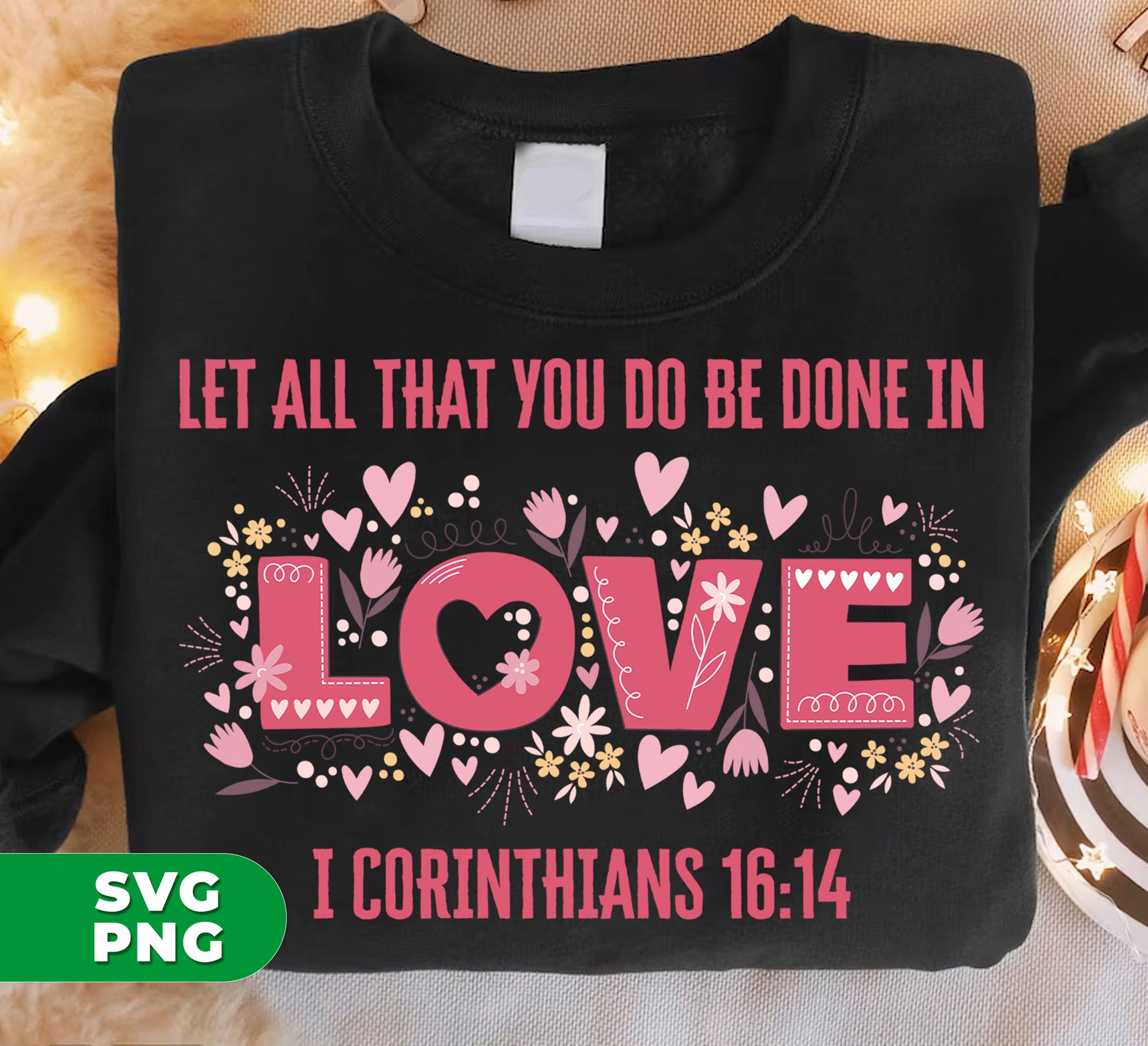Let All That You Do Be Done In Love, I Corinthians 16:14, Digital Files, Png Sublimation
