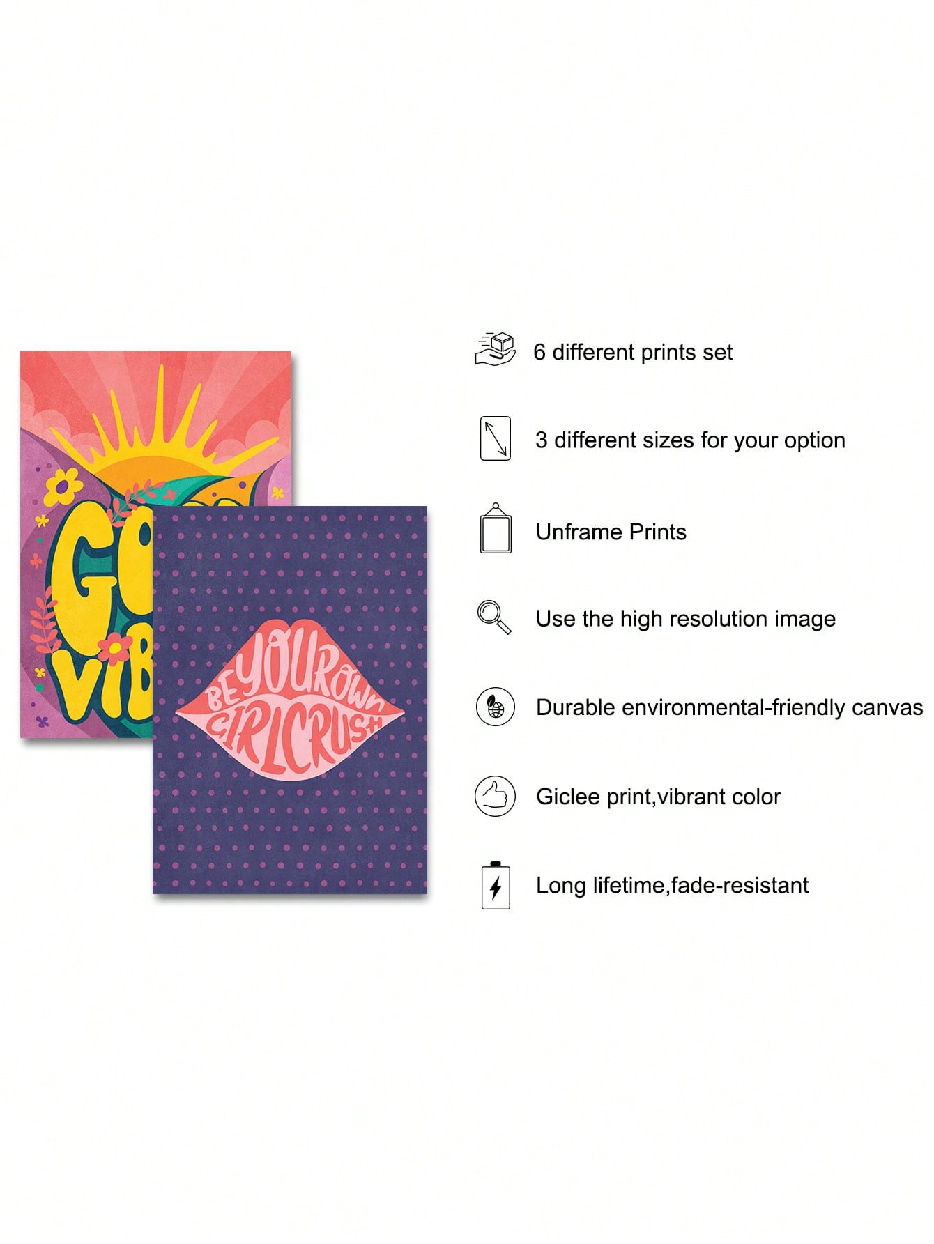 Lip-Smacking Good Vibes: 6pc Trendy Wall Art Set for Fashionable Girl Rooms