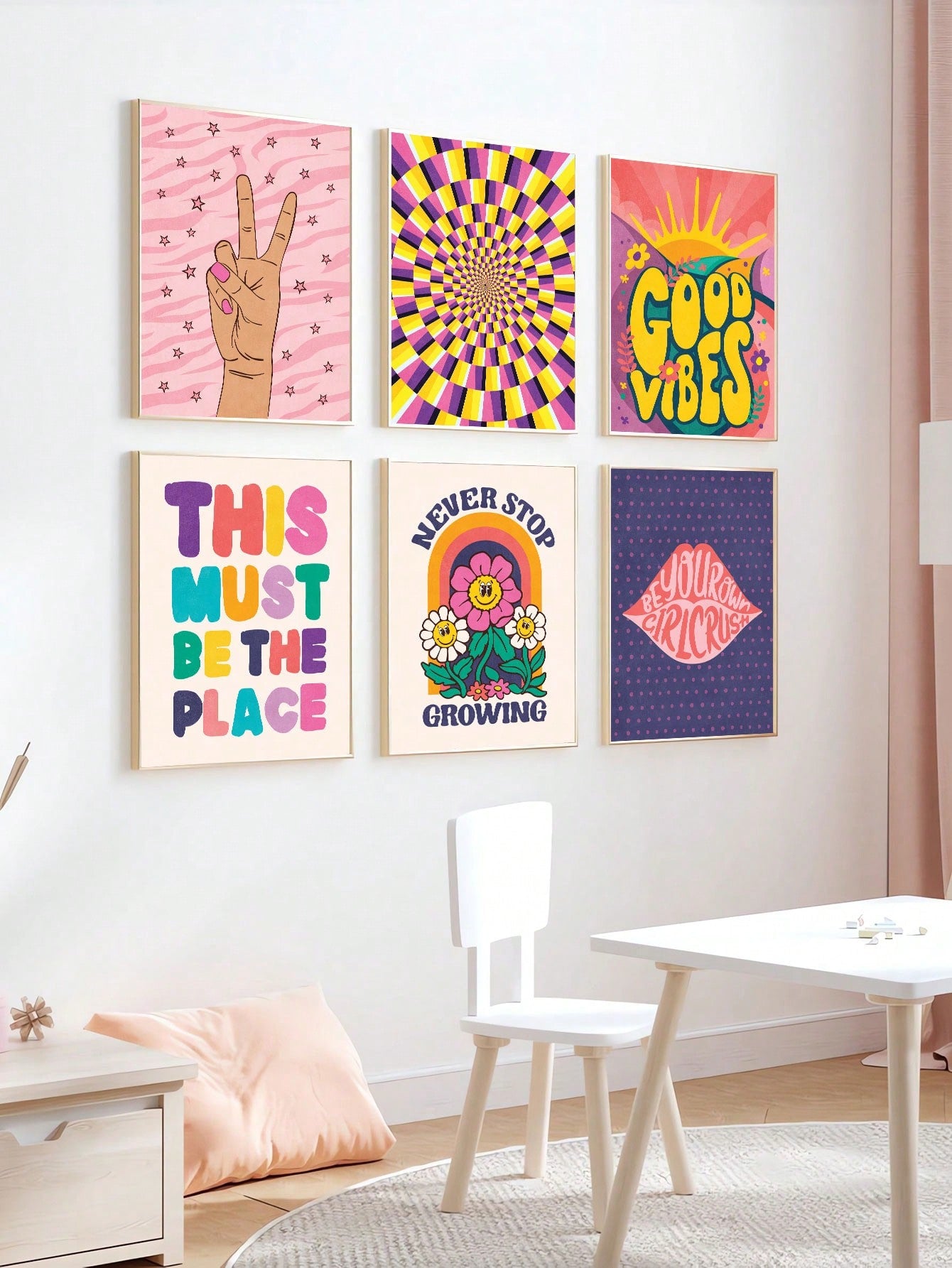 Enhance the stylish atmosphere of any girl's room with our Lip-Smacking Good Vibes: 6pc Trendy Wall Art Set. Each piece exudes trendy energy and adds a playful yet chic touch to any space. Make a bold statement and elevate your decor with our fashion-forward designs.